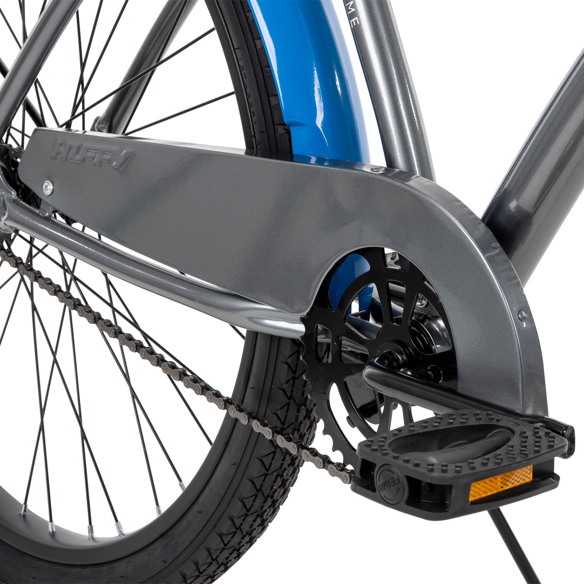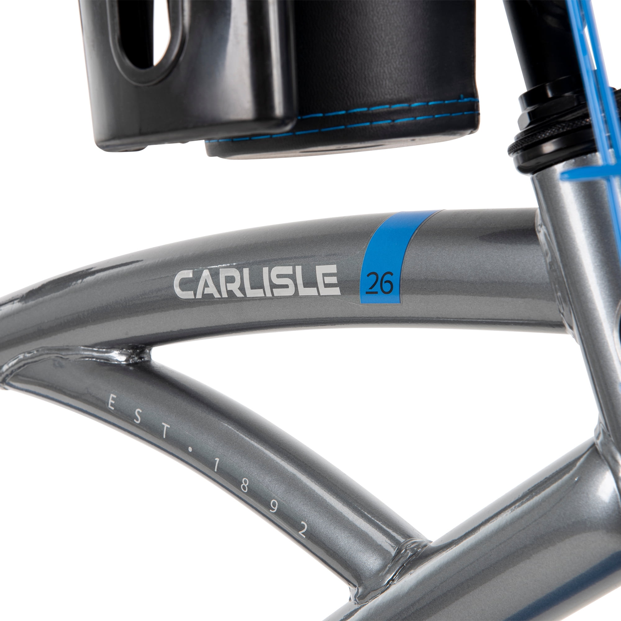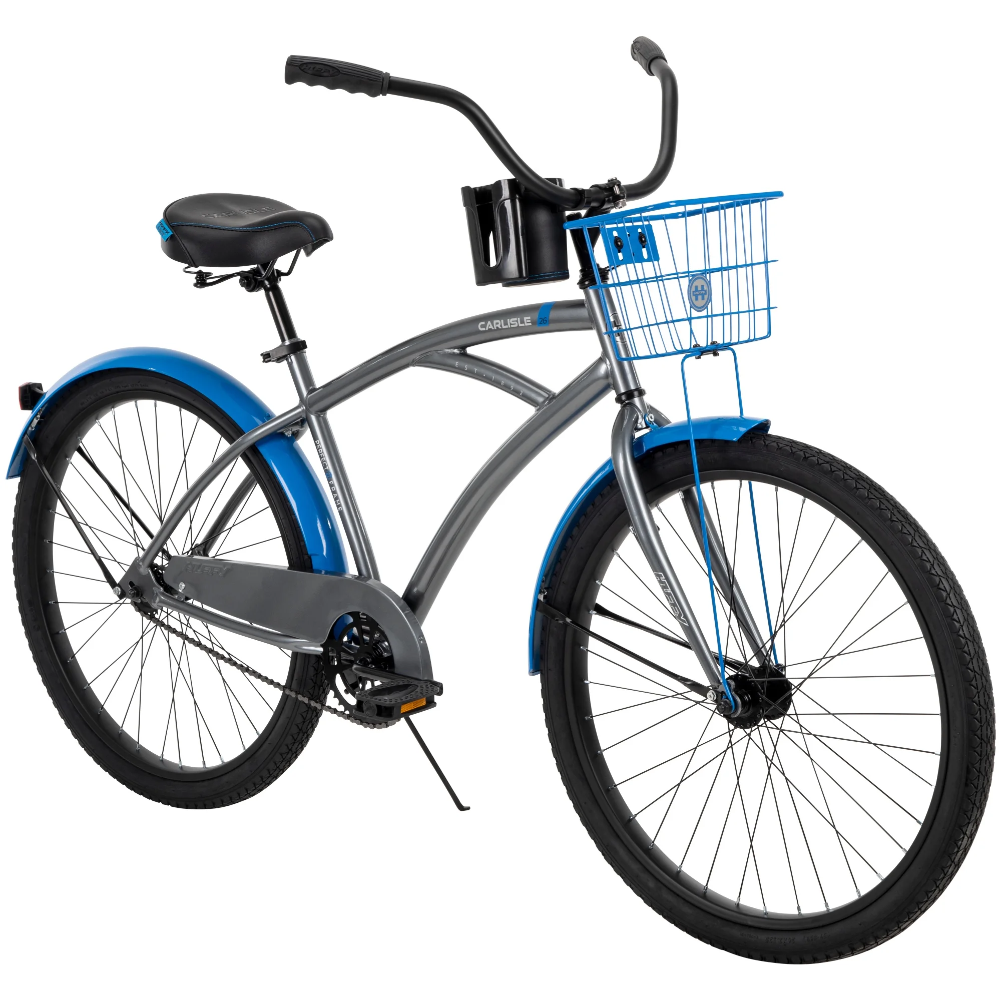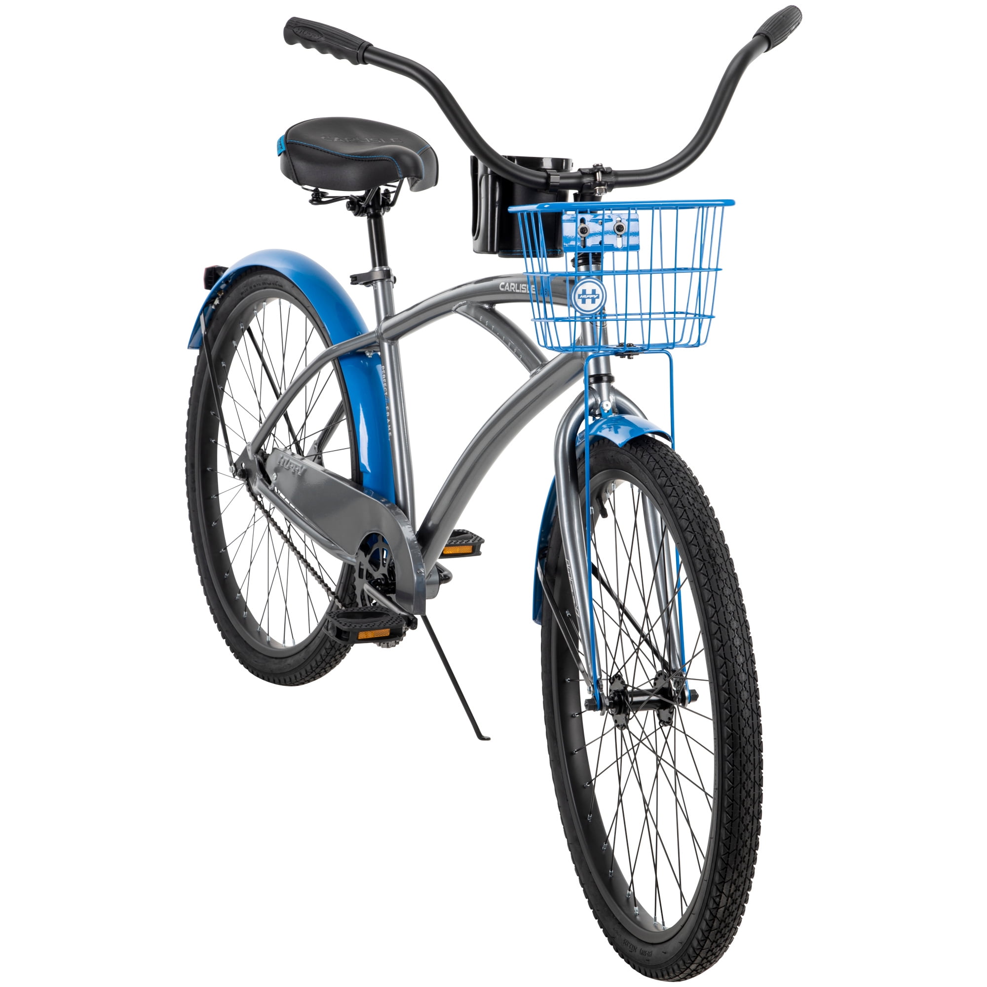 Huffy Carlisle Men’s Cruiser Bike, 26″ Wheels, Basket, Coaster Brake, Gray Huffy combines a sleek design with comfort features in the Carlisle men’s cruiser bike. This men’s bike comes equipped with great specs and a unique look. If you’re looking for a way to get outside for more leisurely exercise or exploring the neighborhood, this is the bike for you. The grey men’s bike with blue accents is designed with Huffy’s Perfect Fit frame, ensuring that every rider is comfortable throughout their adventure – the quick-release seat binder also makes it easy to adjust the saddle to the perfect height. This cruiser is a single-speed bike with an easy-to-use coaster brake, making every ride relaxing and enjoyable. Not to mention, the comfortably padded saddle and dual-density grips and pedals make every ride pleasant. Fun adventures are up ahead with the family or on your own thanks to the Huffy Carlisle Cruiser. From Huffy, We Make Fun!