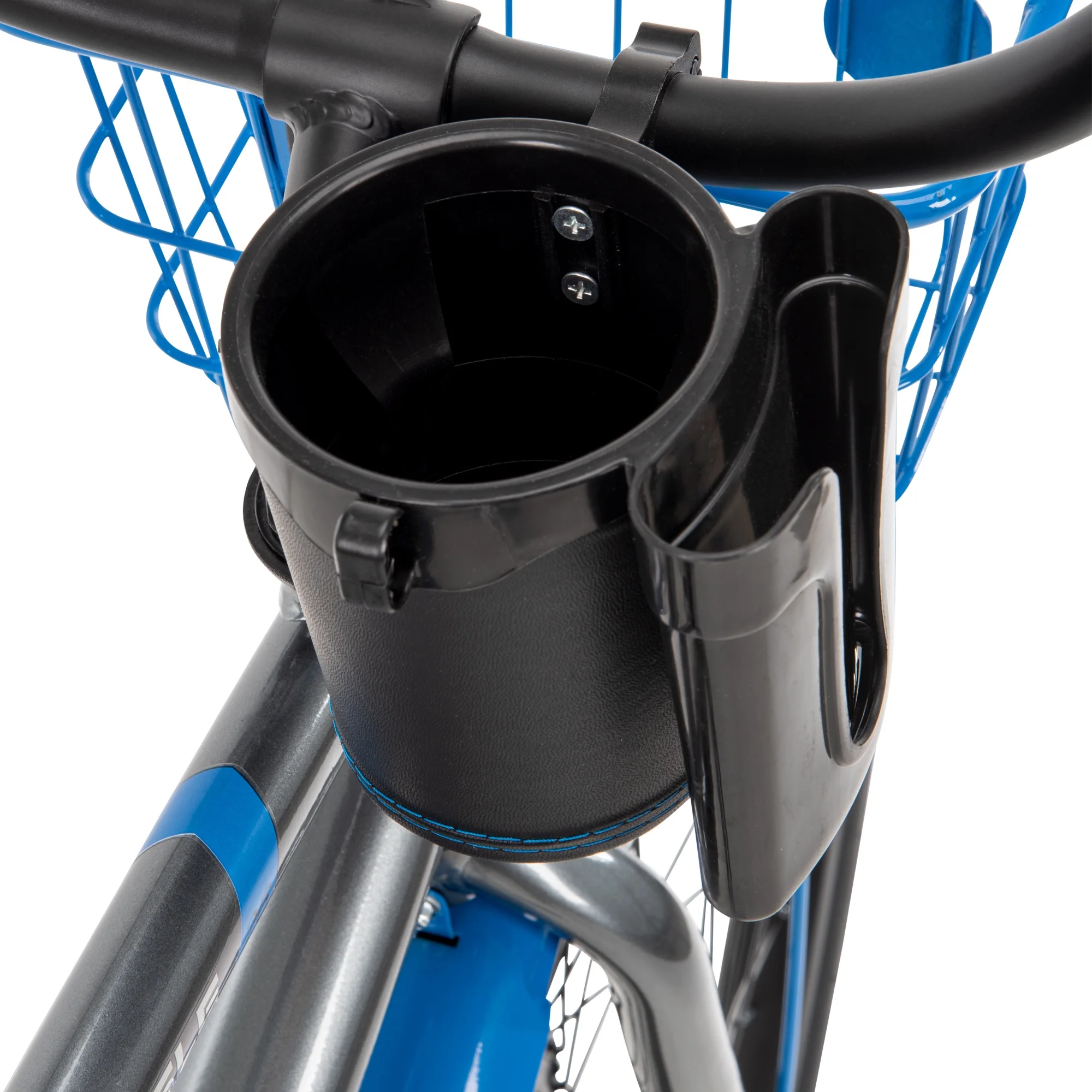 Classic: Gray and blue frame with a sleek, timeless cruiser design. Durable: Sturdy steel frame built for lasting outdoor adventures. Comfortable: Padded saddle and handlebars for an easy, smooth ride. Stylish: Eye-catching design with vintage-inspired cruiser style. Convenient: Front basket for carrying essentials during your ride. Smooth: Easy-to-pedal single-speed bike for relaxed, casual cruising. Grippy: Wide tires offer great traction on paved and gravel paths.