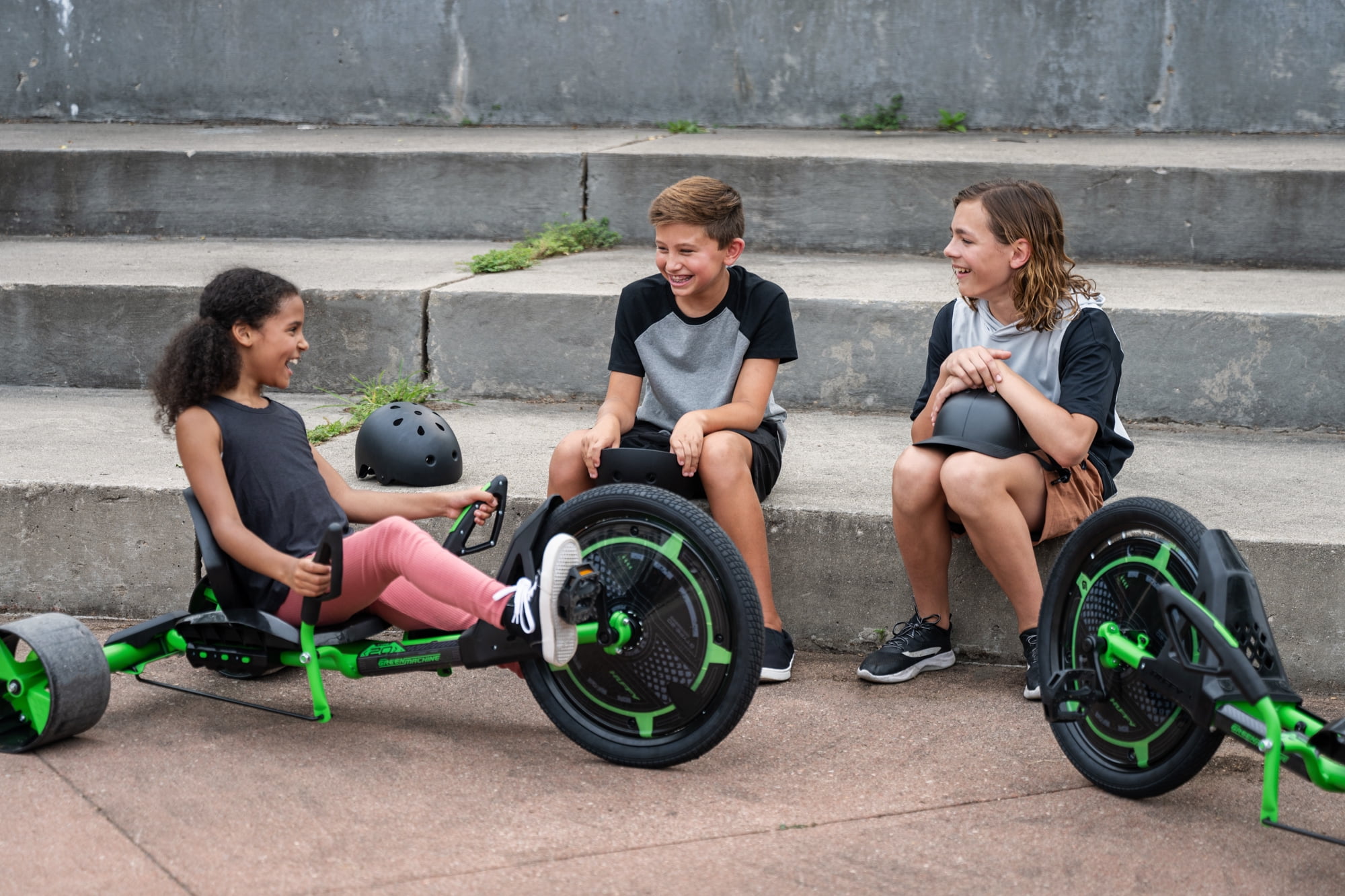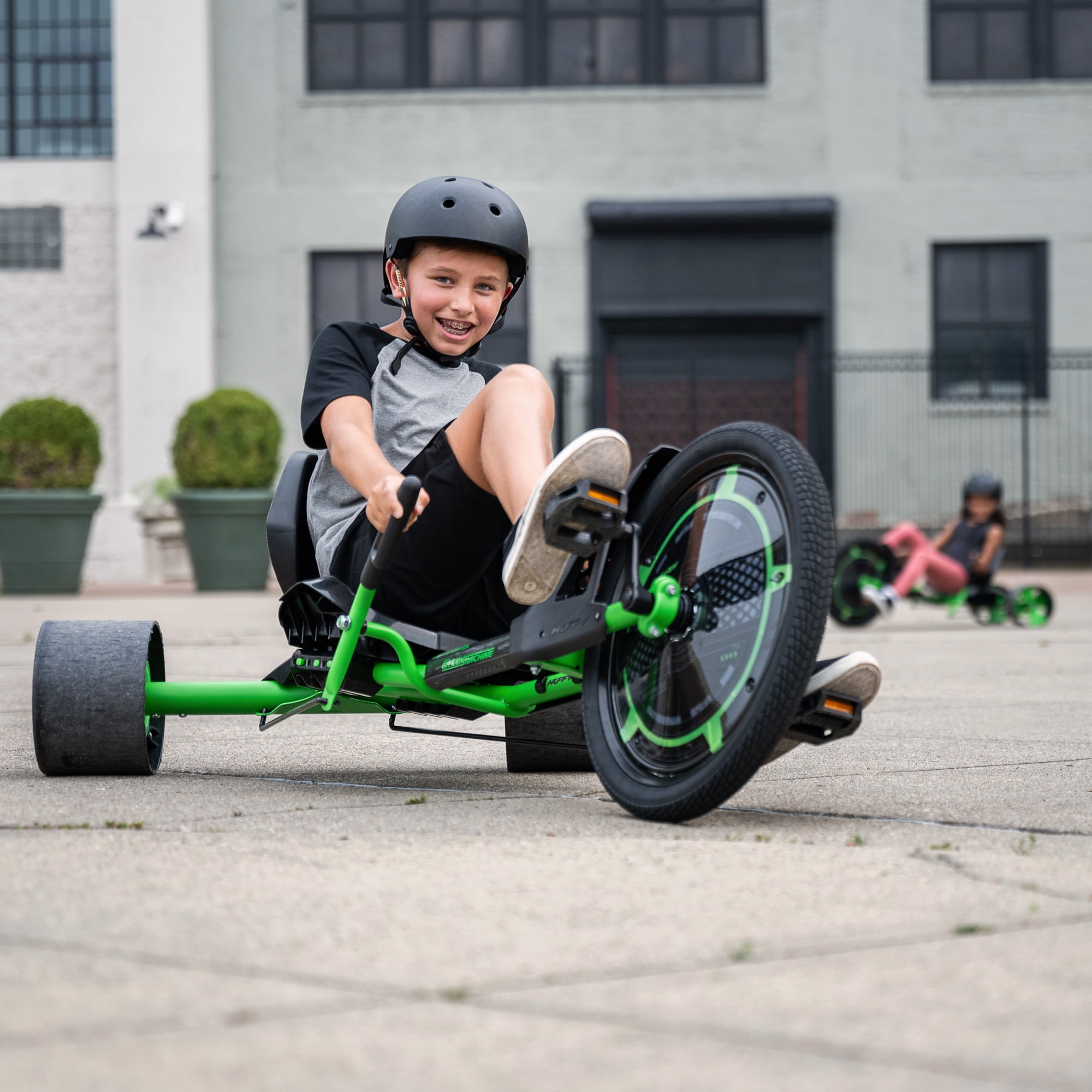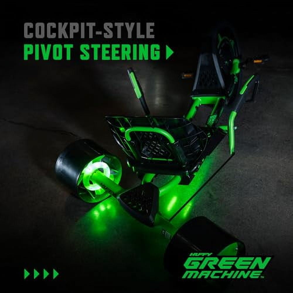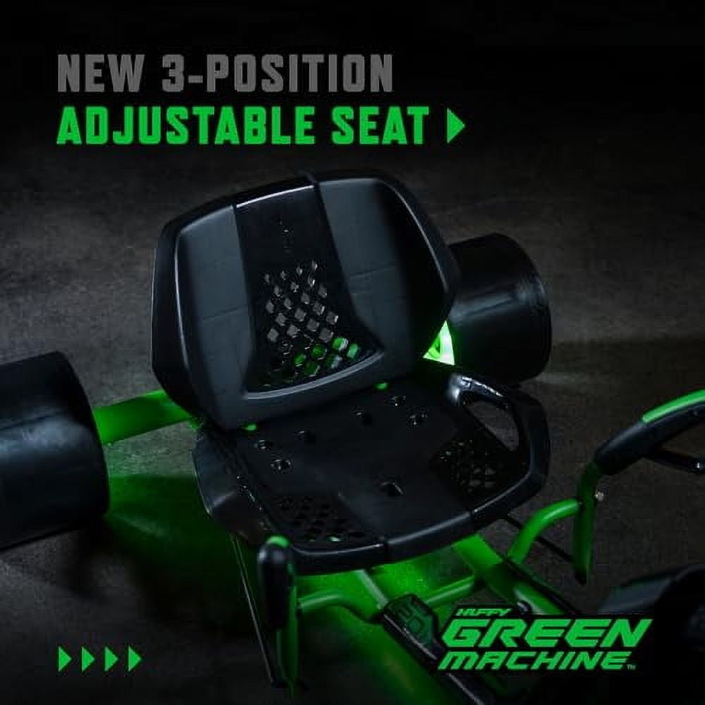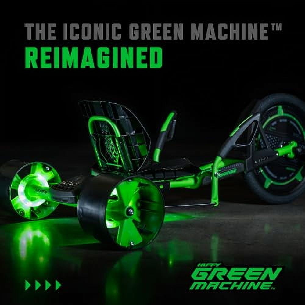 Huffy Green Machine 20-Inch Drift Trike, Kids Ages 8+, LED Lights, Green Attention thrill seekers! Huffy has completely revamped the classic 20-inch Green Machine for kids, delivering an even more exhilarating ride than ever before. The sleek green steel frame now features eye-catching LED lights beneath the seat and in the rear wheels, adding a cool and modern touch. Experience the unmatched excitement of 180-degree drifts, spins, and slides using the intuitive dual steering levers and reliable coaster brake. The redesigned saddle allows you to lean into drifts while maintaining maximum comfort. Ergonomics are a top priority, from the hand grips to the seat, ensuring a comfortable ride. The injection-molded rear wheels offer longer life, better stability, and enhanced sliding power. The new 20-inch Huffy Green Machine is a modern take on the beloved 3-wheeler, ready to thrill a new generation of riders. From Huffy, We Make Fun!