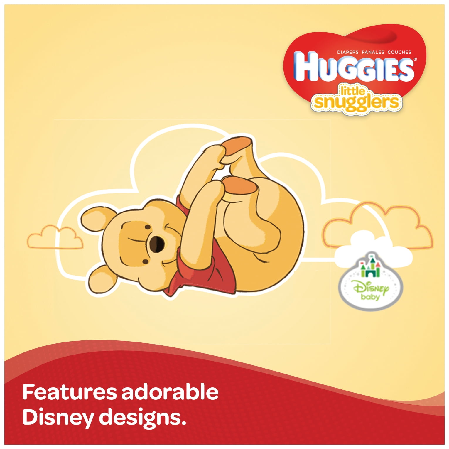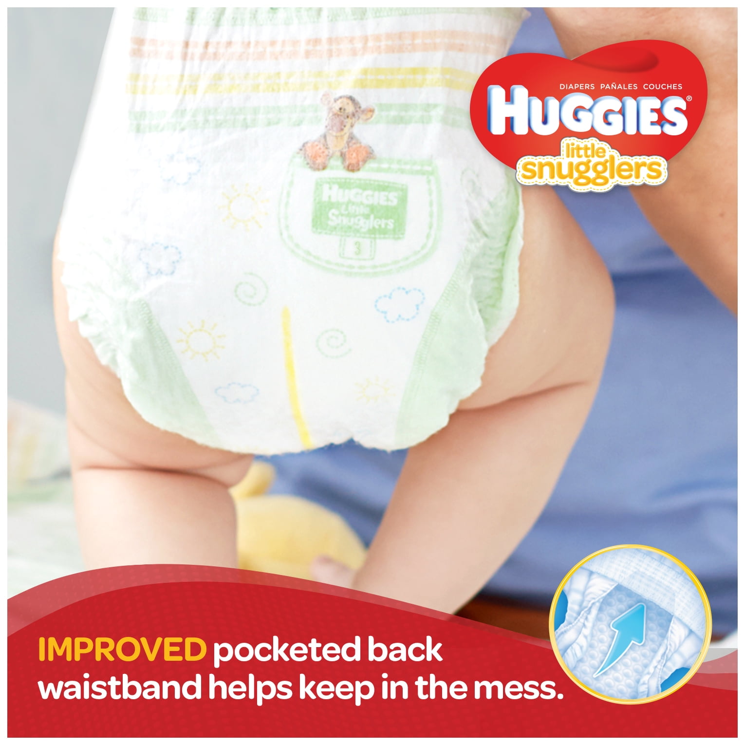 Huggies Little Snugglers diapers are specially designed for gentle skin protection. With features like the pocketed-back waistband and GentleAbsorb liner that contain and draw the mess away, Little Snugglers help keep your babyÕs delicate skin clean and healthy. Little Snugglers diapers also feature premium softness and breathability to help keep them comfortable. Little Snugglers diapers have double grip strips for a comfy fit that lasts, plus a wetness indicator that lets you know when itÕs time for a change. In addition, Little Snugglers disposable diapers are fragrance-free, and feature NEW adorable Disney Baby Winnie the Pooh designs. Start your diaper-changing routine with Huggies Natural Care Wipes for a soft, gentle clean, then finish with Little Snugglers diapers. Join Huggies Rewards to earn points on all your Huggies purchases.