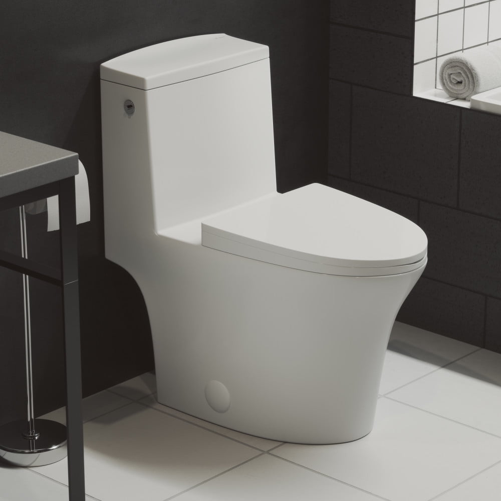 Touchless Flush: Touchless flush is equipped with a motion sensor that detects hand wave to activate the flush to minimize contact for optimal convenience. Rough-In: Standard 12″ Rough-In Standard Elongated Bowl: The elongated bowl provides extra room and comfort. Standard Height: Between 15-17 inches, the standard height toilet is designed with ergonomic considerations, offering optimal comfort to users of all ages and body types. Durable Non-Porous Scratch Resistant Ceramic: Developed from ceramic, that is scratch-resistant and non-porous, providing a durable and reliable option that can withstand routine use. Soft Close and Quick Release Seat: Provides a silent and gentle closing mechanism for added convenience and safety. With just the push of a button, the seat detaches completely for a thorough cleaning. Collection: Part of the Hugo Collection, explore additional products in this collection to complete the room.