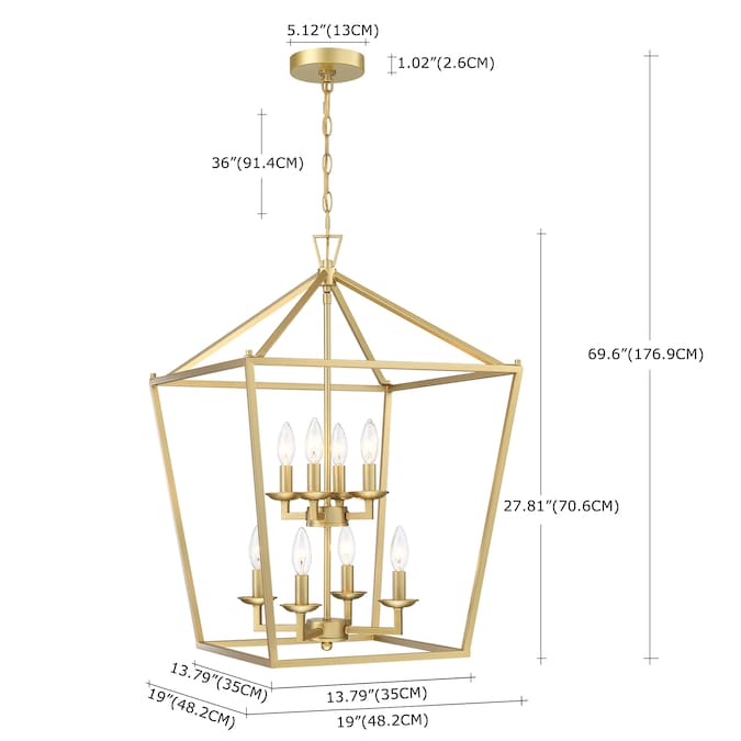 - Charming 8-light lantern pendant with brushed gold finish brings convenience, relaxation and fashion to your life.