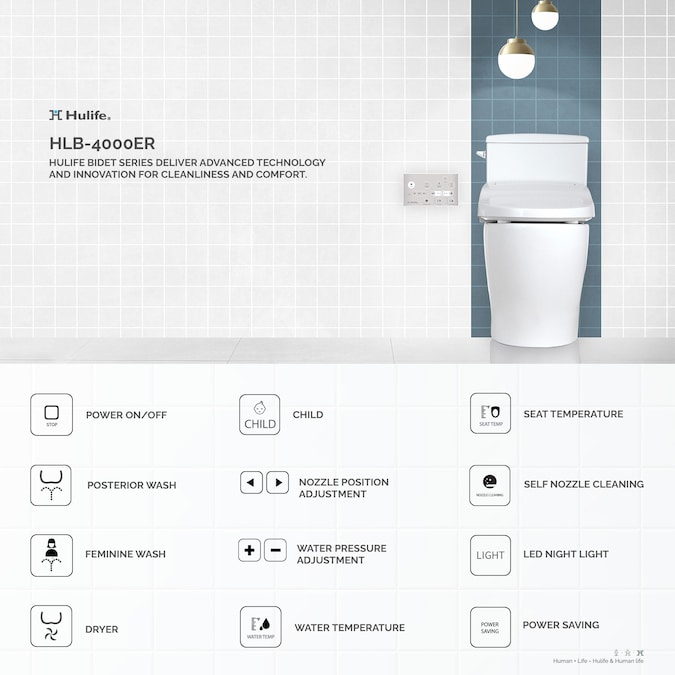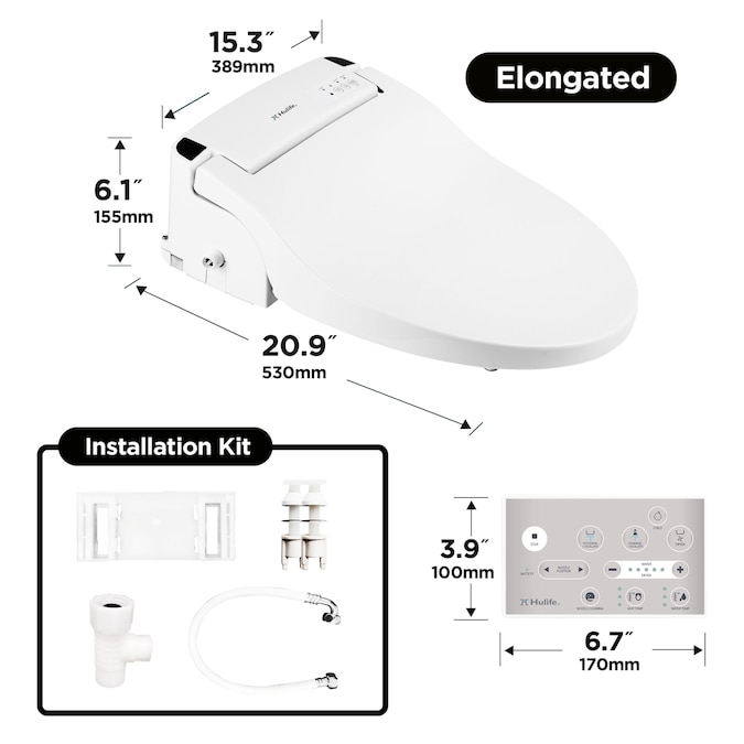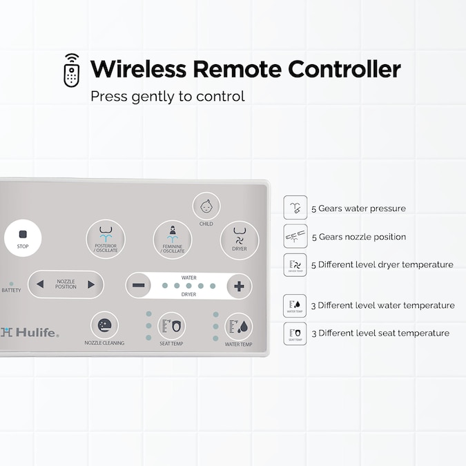 The Hulife Electric Bidet Seat for Elongated Toilet and Some French Curve Toilet is a semi-luxury seat at a low cost. Its sleek design was made with top-quality components and loaded with intelligent, smart features. It is easy to install and allows you to adjust the water temperature, water pressure, stainless steel nozzles position, seat temperature, and air dryer temperature which provides a personalized experience. Simply control your functions with the soft push on the Wireless Remote control. Our 2-in-1 nozzle provides self-cleans before and after each wash. LED Nightlight helps you to use the toilet without toilet light. The lid and seat are both soft closing.