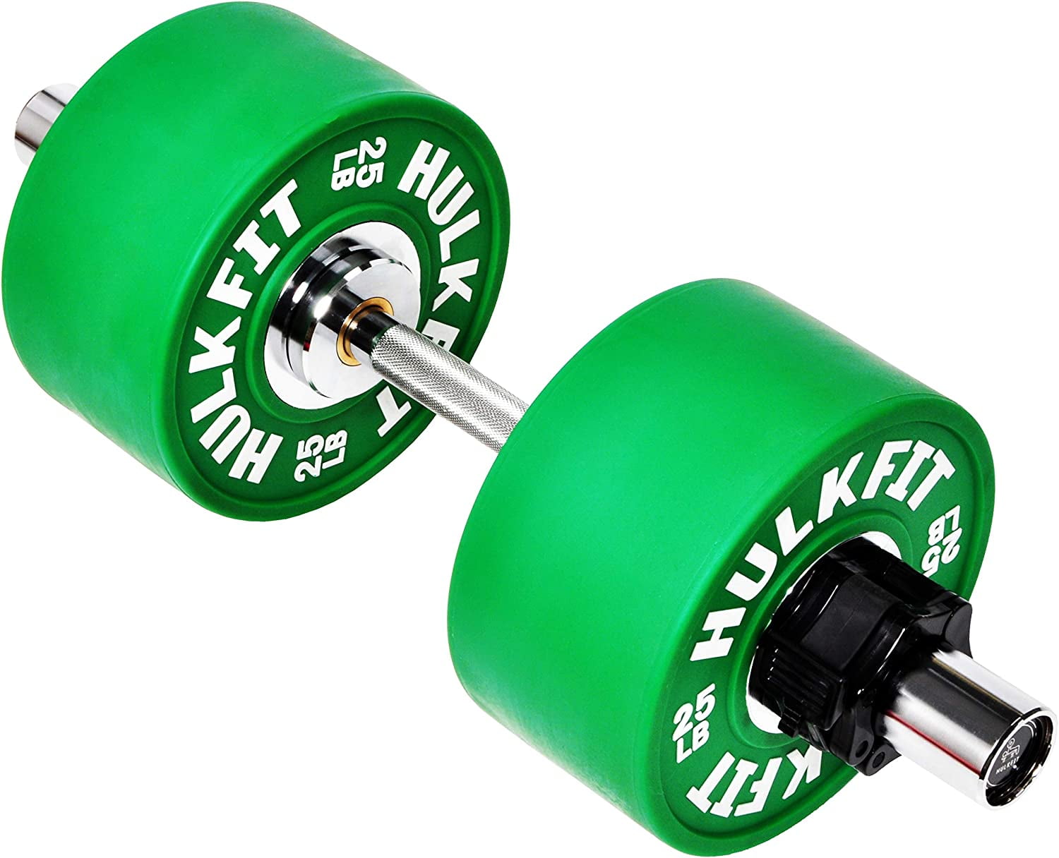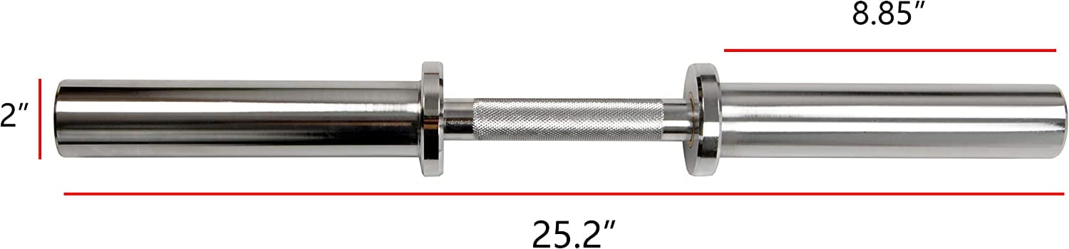 2-inch diameter bars at the color of your choice: Black, Chrome. Weight: 13 pounds Bars are black zinc plated (NOT painted) or chrome-plated with solid steel construction for repeated use and long-lasting. Diamond knurled hand grips and rotating sleeves for your convenience and safety. 25-inch long total 1. 97″ bar end diameter to ensure bars fit Hulk Fit dumbbell bumpers or other standard plates with holes 2″ or less Bar ONLY. Sold as Single. Plates are not included