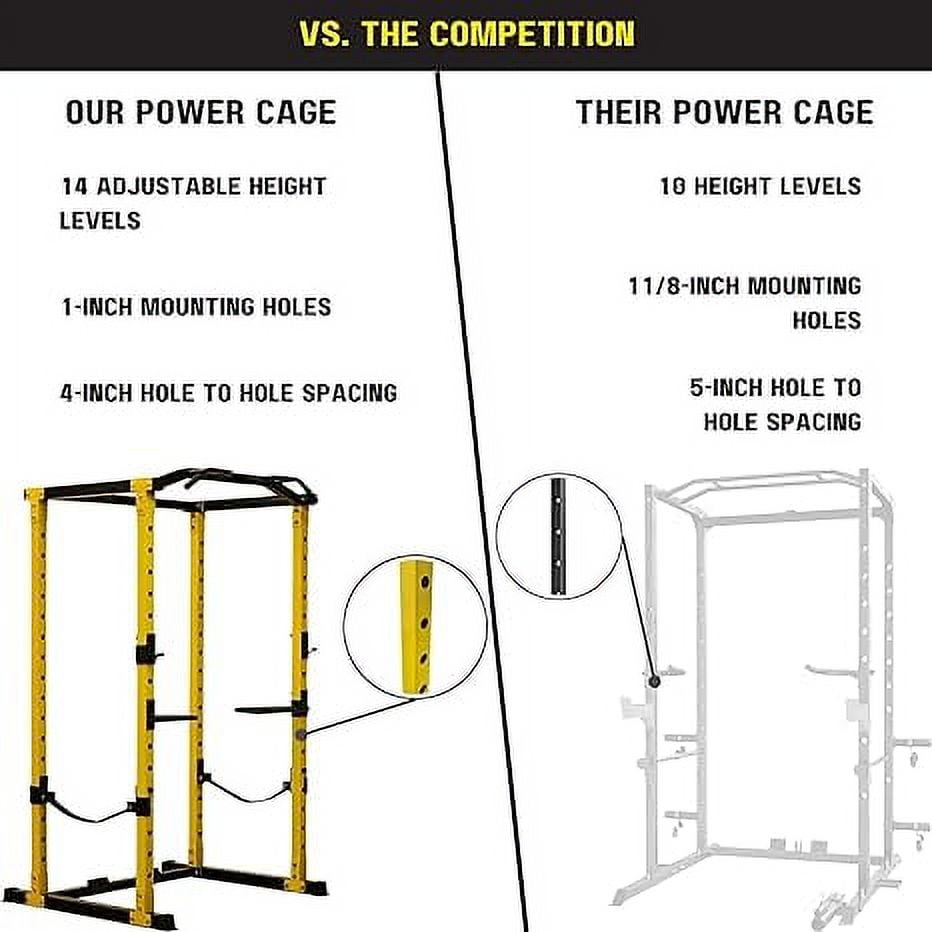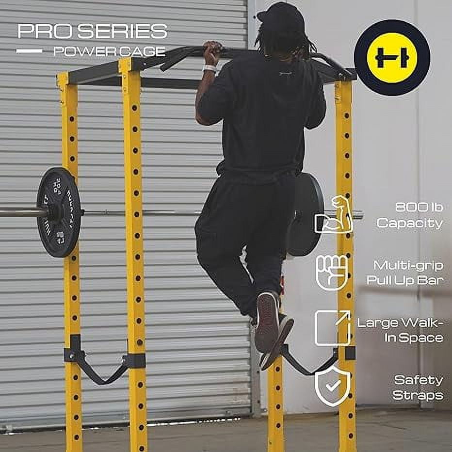 HulkFit Pro Series Multi-Functional Adjustable Home Gym Exercise Equipment Power Cage with J-Hooks, Safety Bars or Safety Straps, Yellow