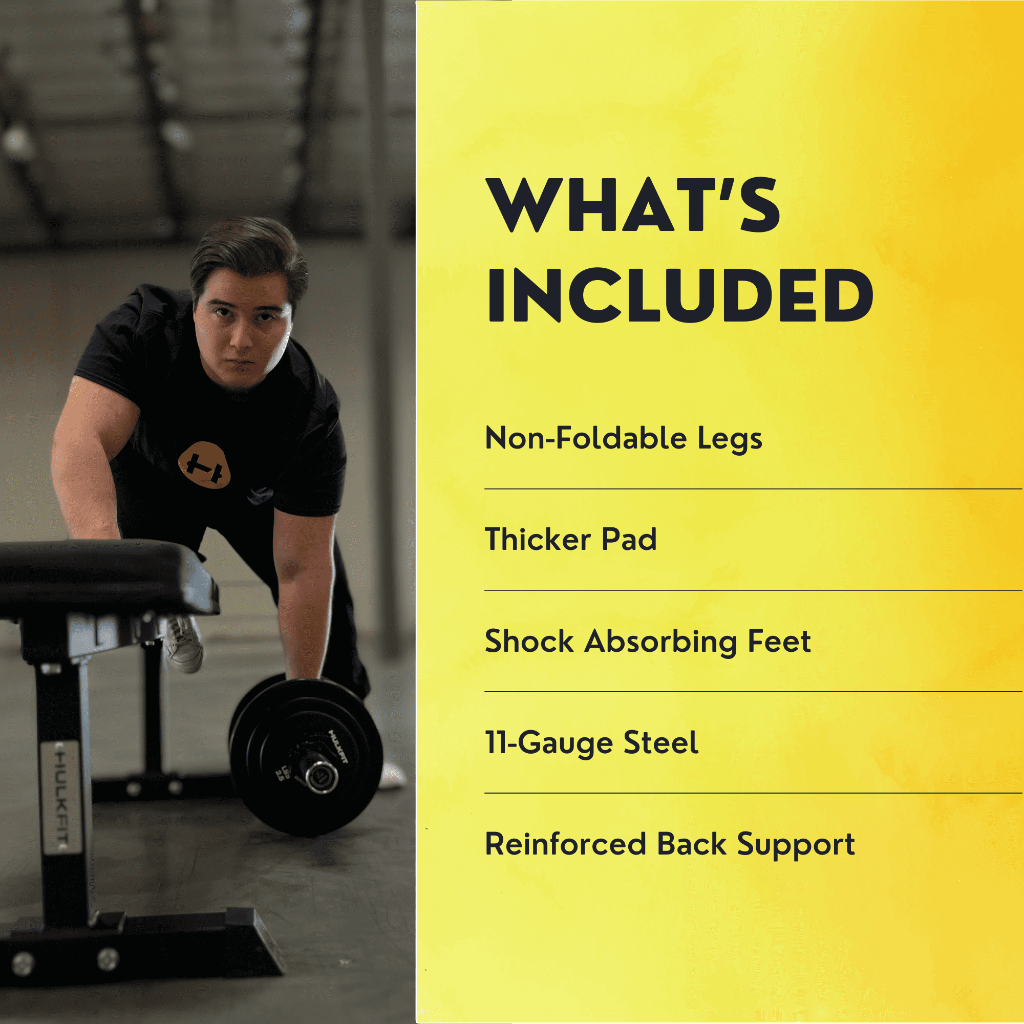 HulkfitT Pro Series Flat Bench with 2.5” High Density Foam perfect for Weightlifting and Functional Training