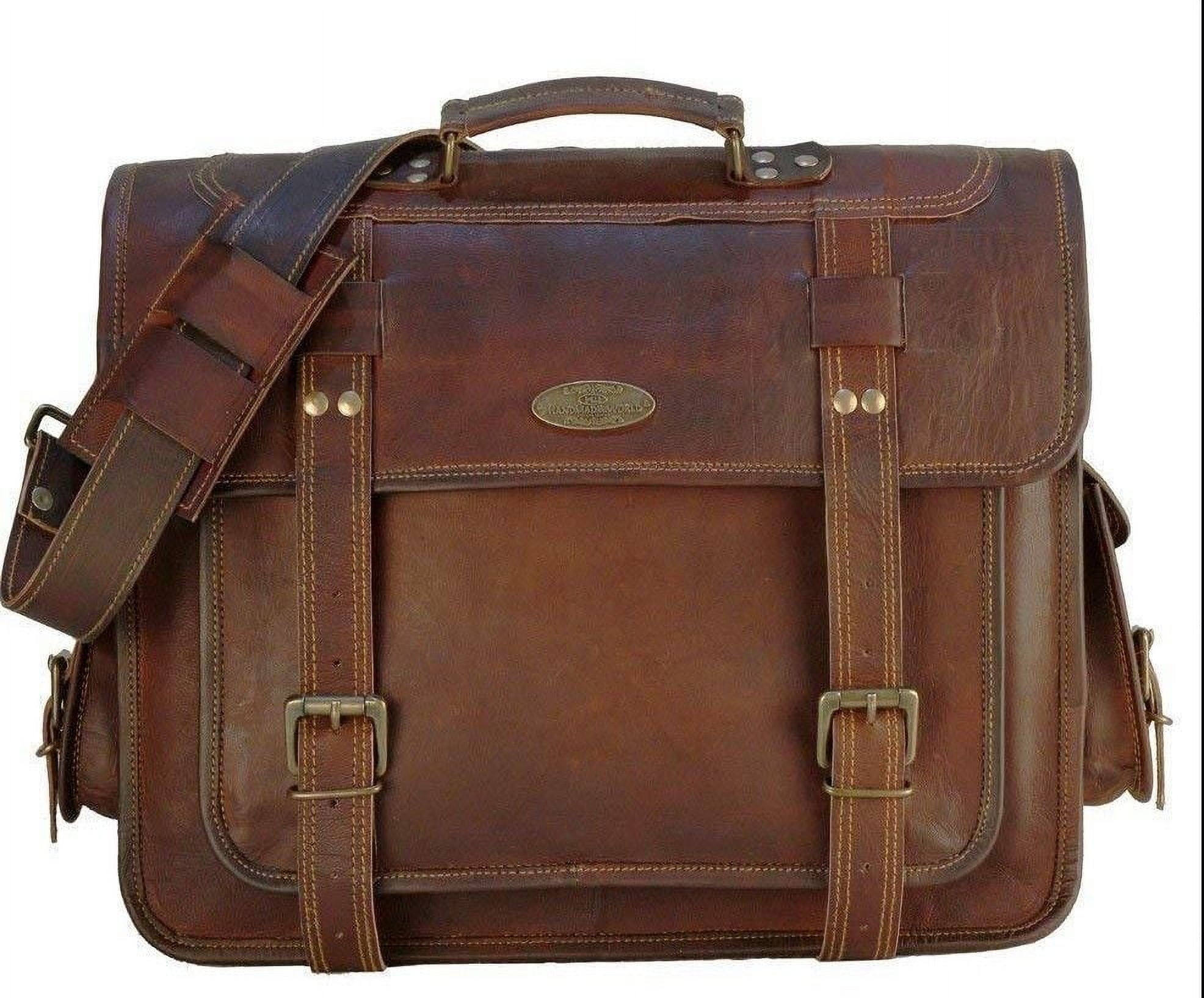 100% Genuine Leather ✔ GENUINE LEATHER: This is a Genuine leather bag for men and women and is made with hands. Leather can last for years without getting damaged and also over time it will give you a vintage look and it will become softer, by the time you start loving this leather briefcase for men and women. ✔ELEGANT DESIGN EASY ACCESS: Now this is one design that can never go out of style. Its design is loved by both women using it as a brown leather laptop bag for women or briefcases for men. In addition, this leather as characteristic ages wonderfully with use which makes the bags look vintage and unique. We have Concealed Push locks under the Main strap which makes it easy and fast to open and lock. ✔ STORAGE: This large messenger bag comes with Size 18″ width x 13″ height x 5″ depth Dedicated 2 padded sleeves 1 at the internal front and 1 at the internal back (Fits 2 laptops up to 17 inches), Main compartment does have enough space for other files/folders even you can carry overnight clothes with 3 zippered compartments 1 internal 1 outside front and 1 backside of the bag to keep things Handy. Also has one big pocket in front of a full-grain bag for cell phone keys or other essentials. This is a Laptop Bag that can fit up to a laptop of screen size 18″ ✔REMOVABLE & ADJUSTABLE STRAP: These leather briefcases for men come with a detachable strap and can be adjusted at the most suitable length. The handle on top makes it an even more comfortable laptop briefcase to carry. ✔ PERFECT GIFT: With a multipurpose use and a classy distressed look that never goes out of style, This leather satchel bag for men is a great leather gift for men ideas for Father’s Day, men’s Birthdays, Valentine’s Day, Christmas, Graduation, Back To College Or Any Occasion Which Calls For A Gift. Great gift for professionals, artists, students, and all sorts of officials. The bag can be used as a crossbody leather satchel for men and women, a man’s laptop case book side bag.