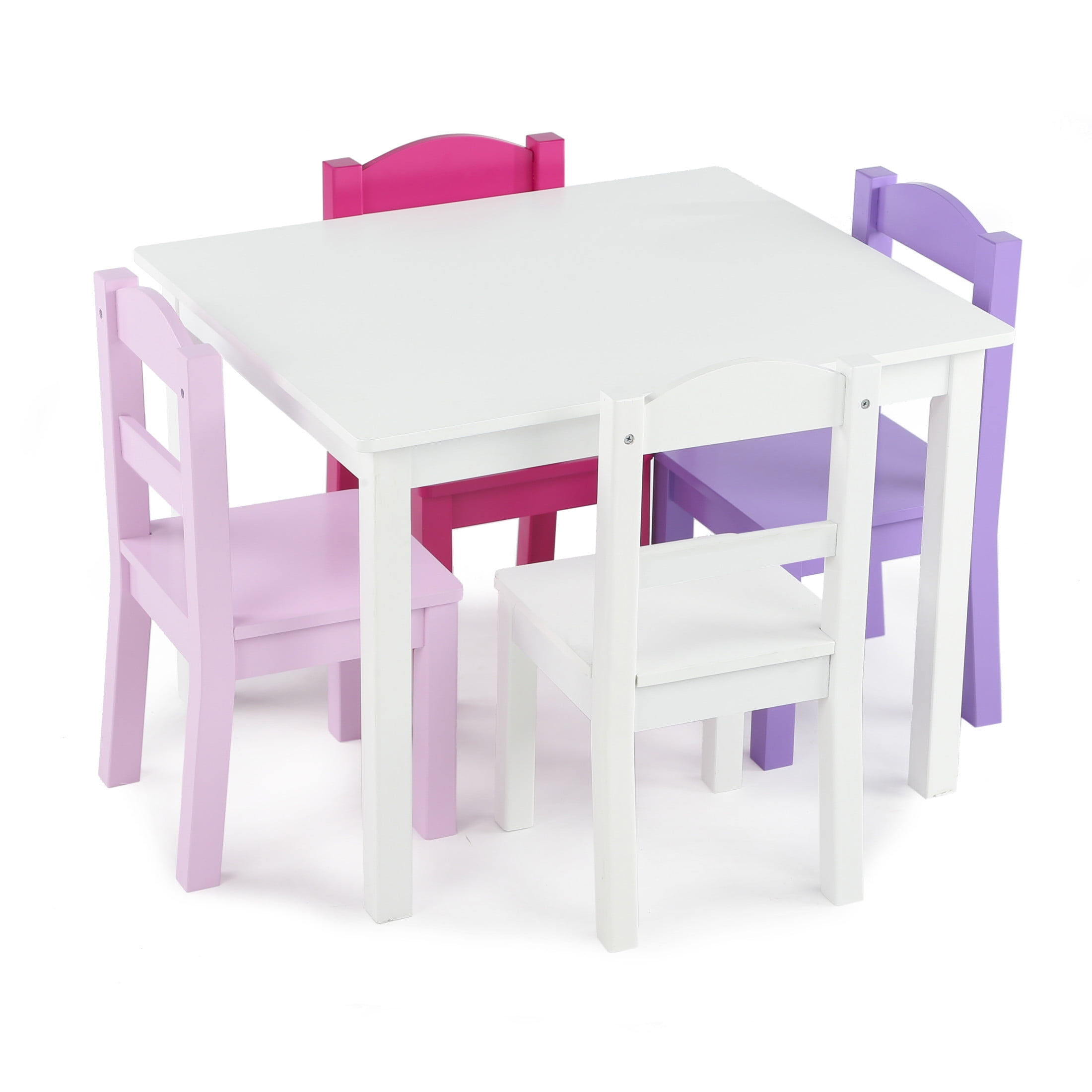Humble Crew Friends Toddler Wood Table and 4 Chairs Set, White/Pink/Purple