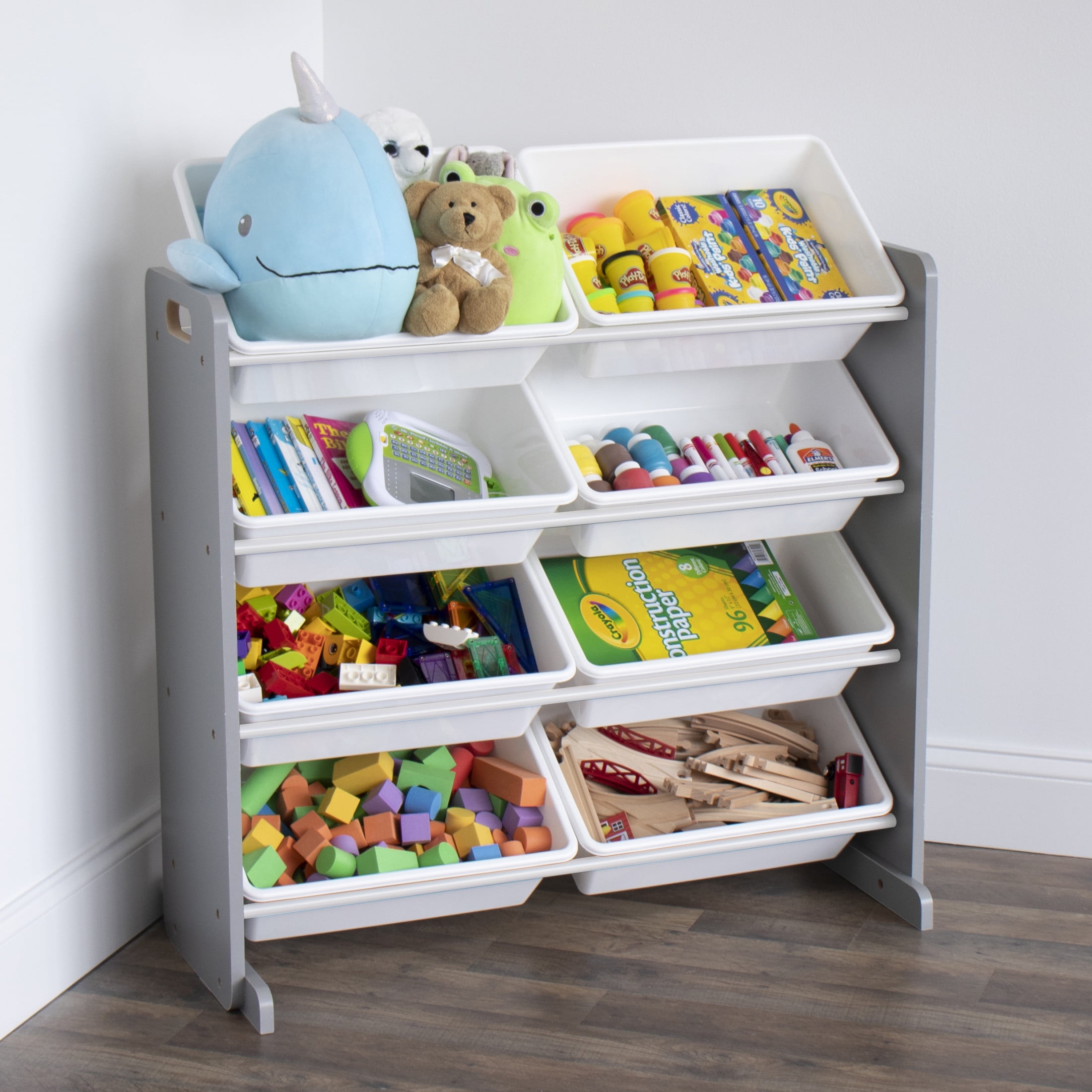 Humble Crew Inspire Toy Storage Organizer with 8 Large Plastic Storage Bins, Grey/White