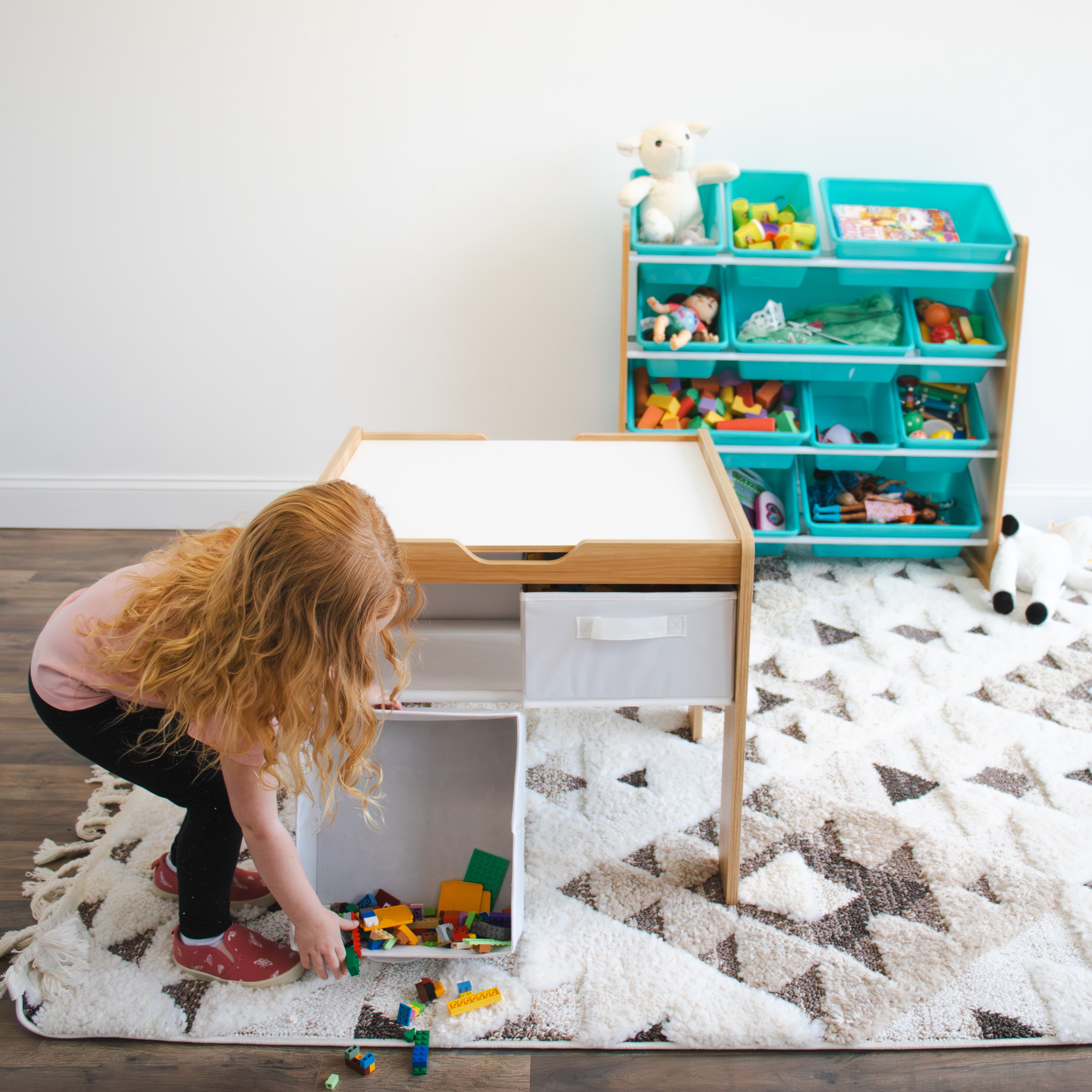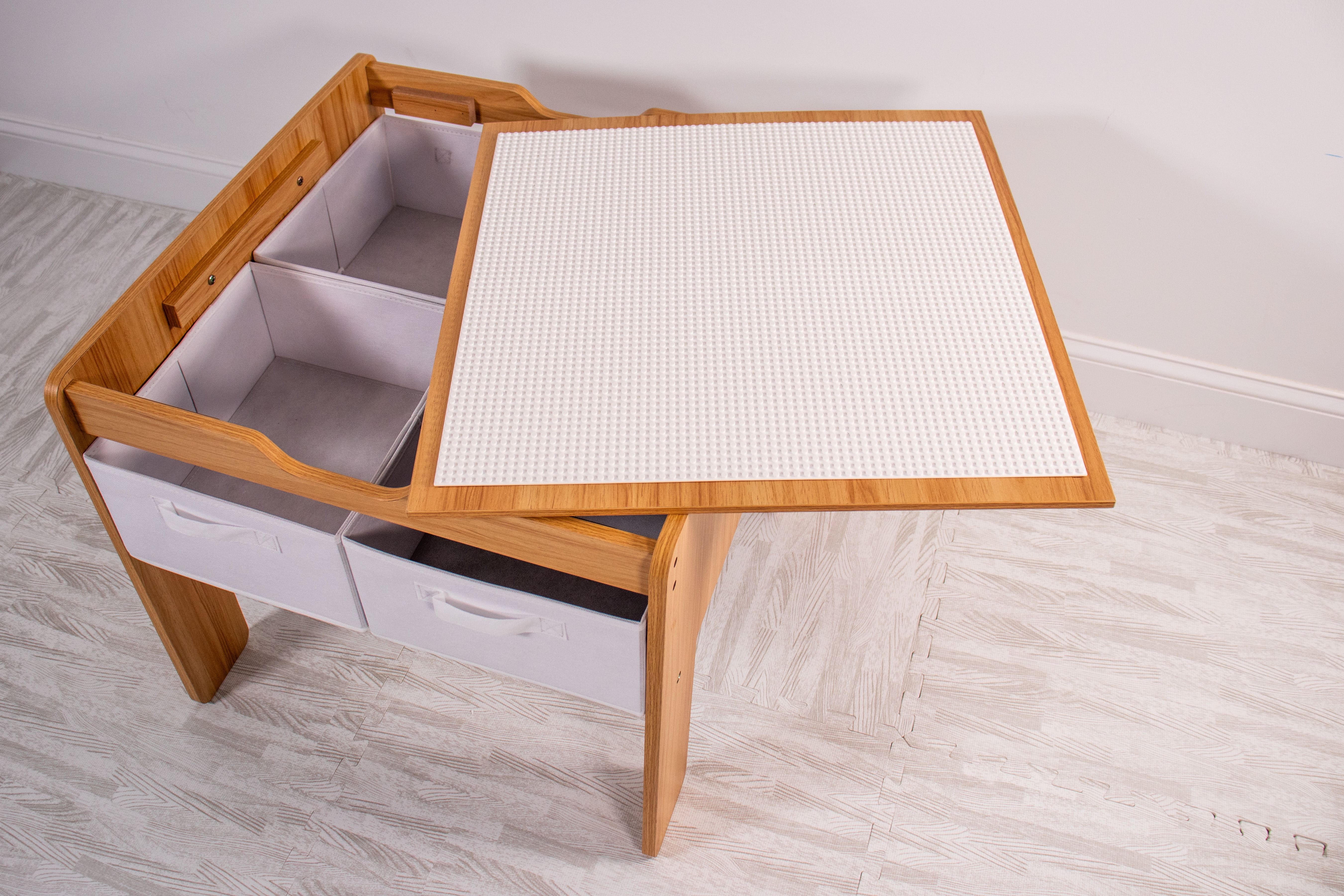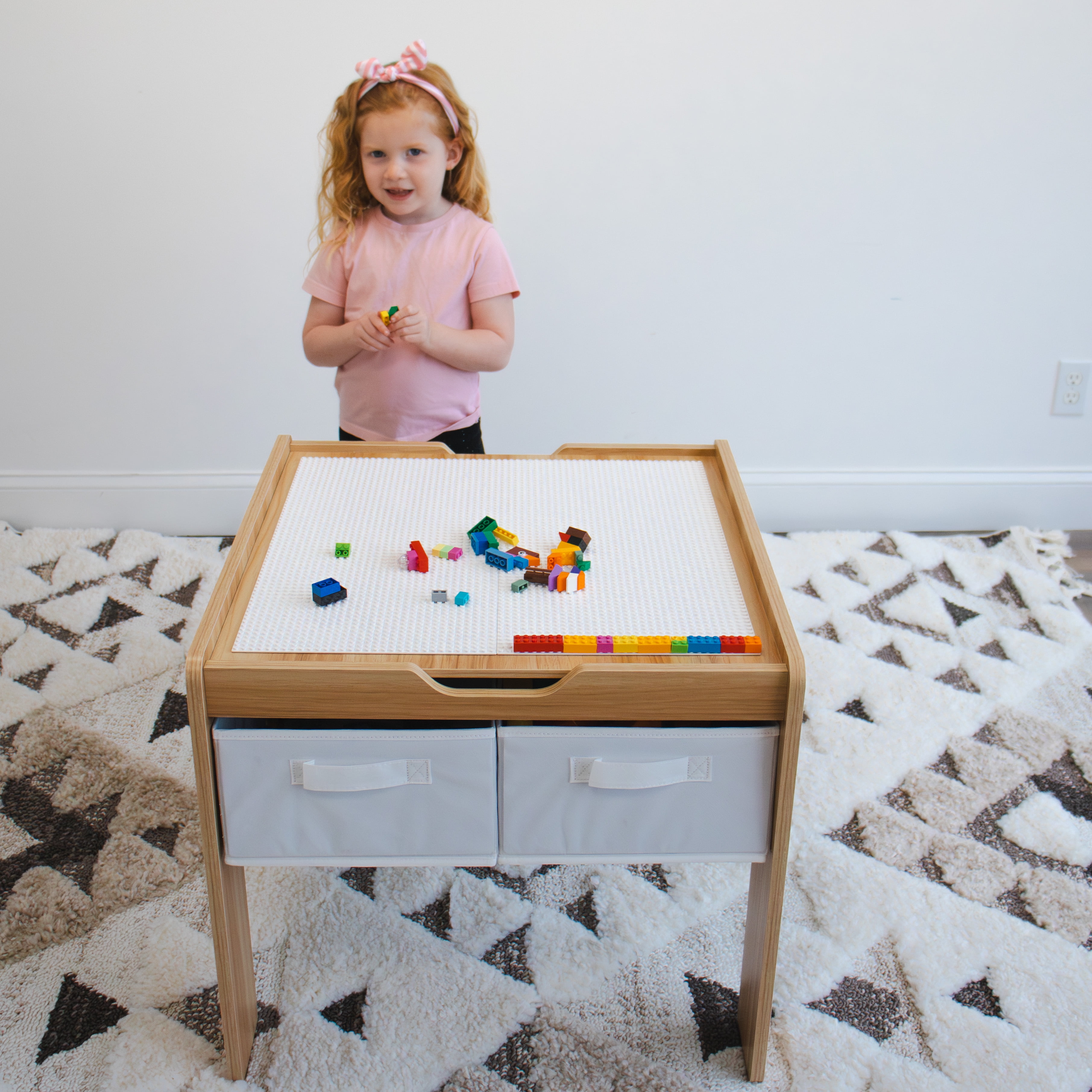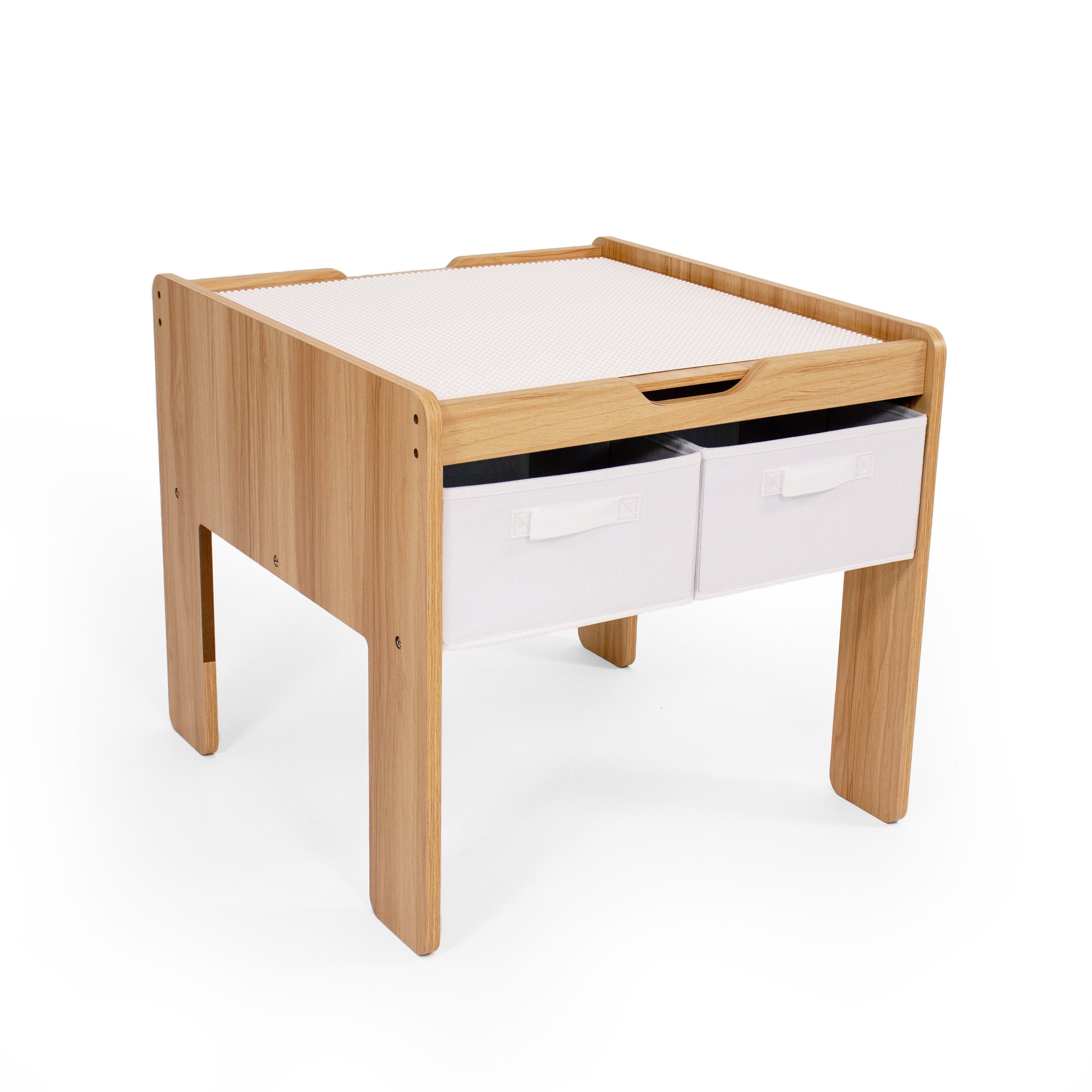 Humble Crew Kids Building Block-Compatible Table with 4 Bins, White/Natural Wood