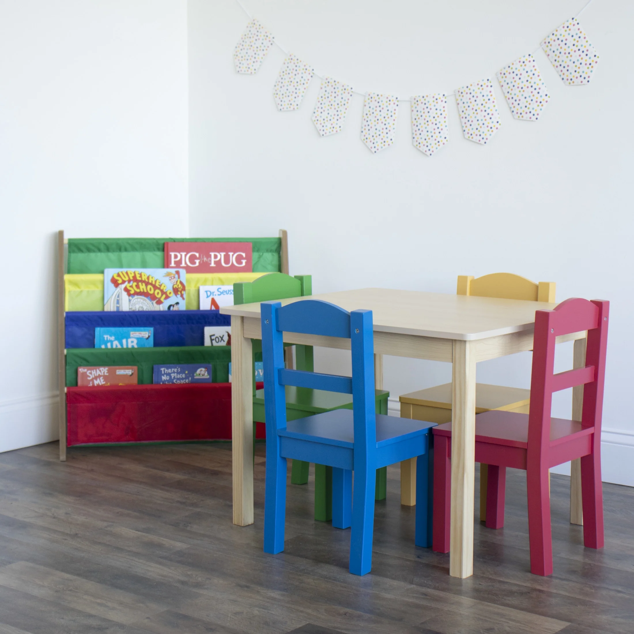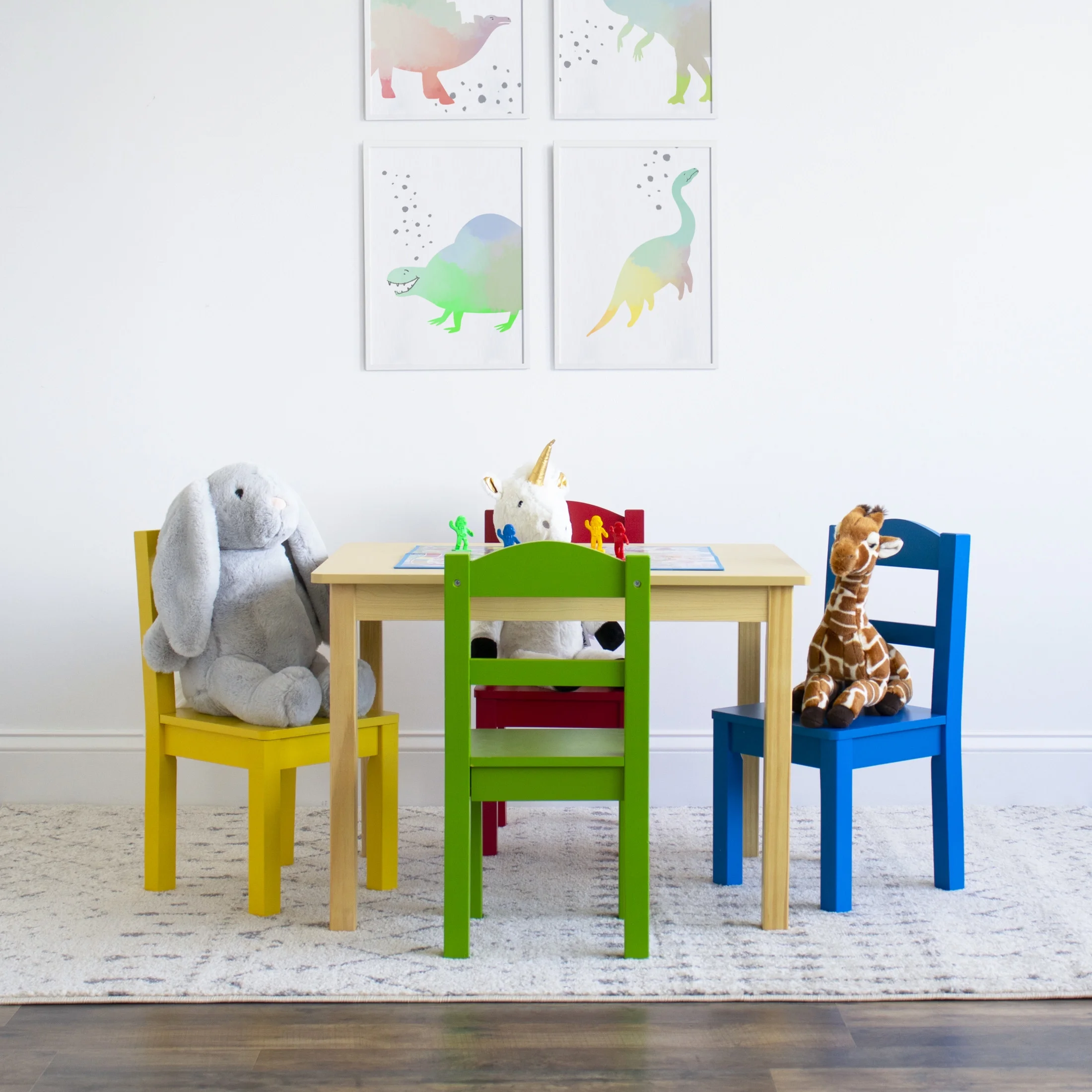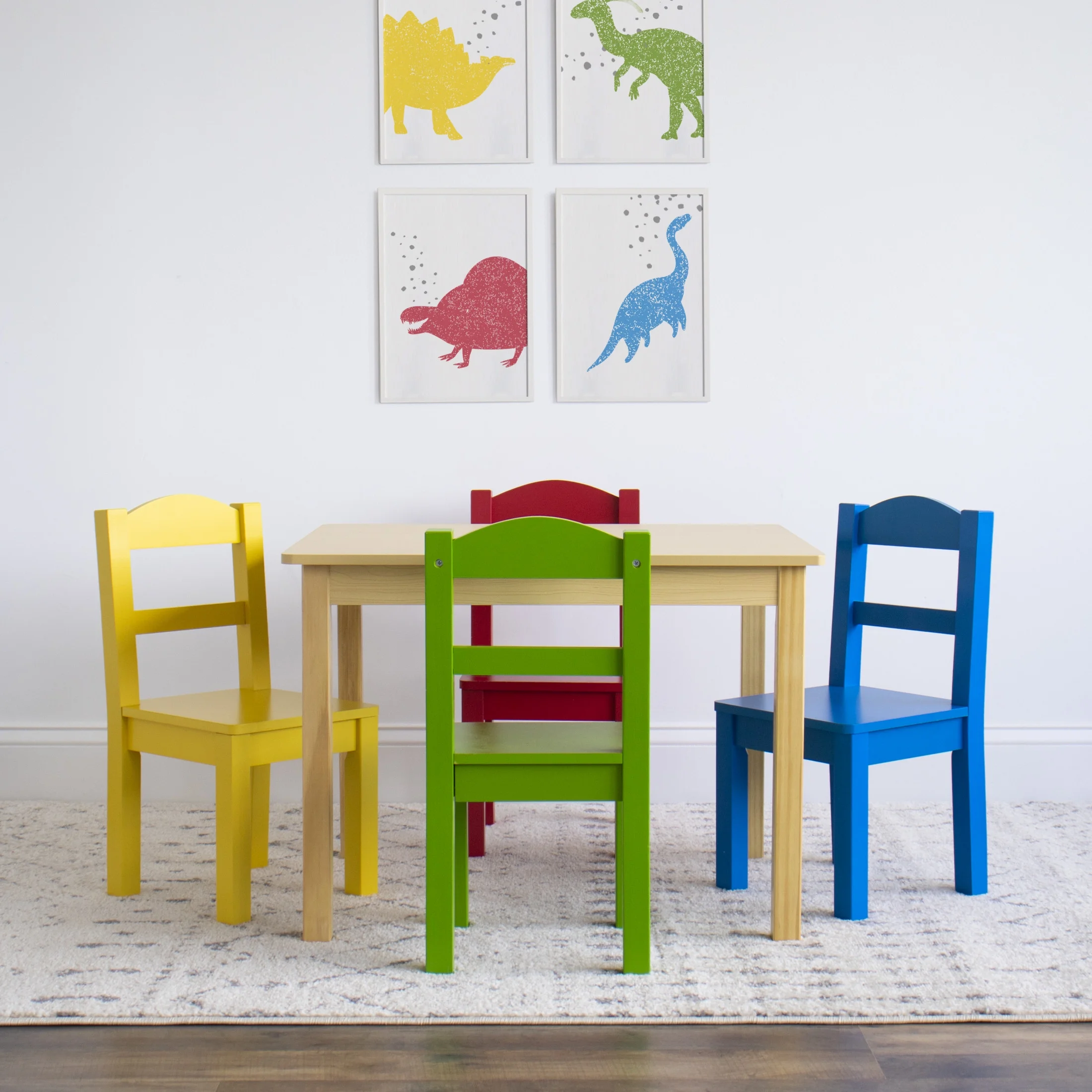 Humble Crew Primary Toddler Wood Table and 4 Chairs Set, Natural/Primary