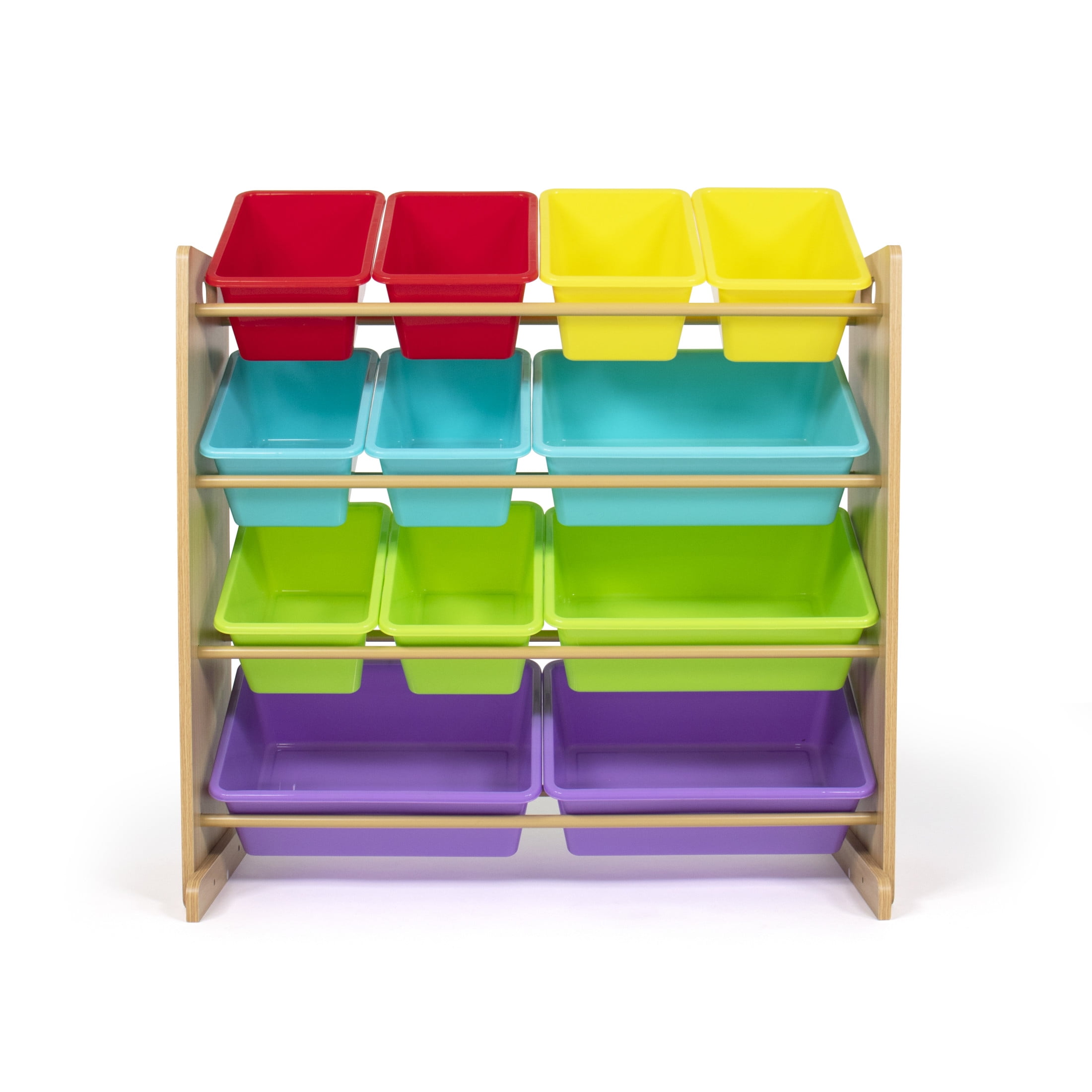 Humble Crew Rainbow Toy Storage Organizer with 12 Plastic Storage Bins, Natural/Rainbow
