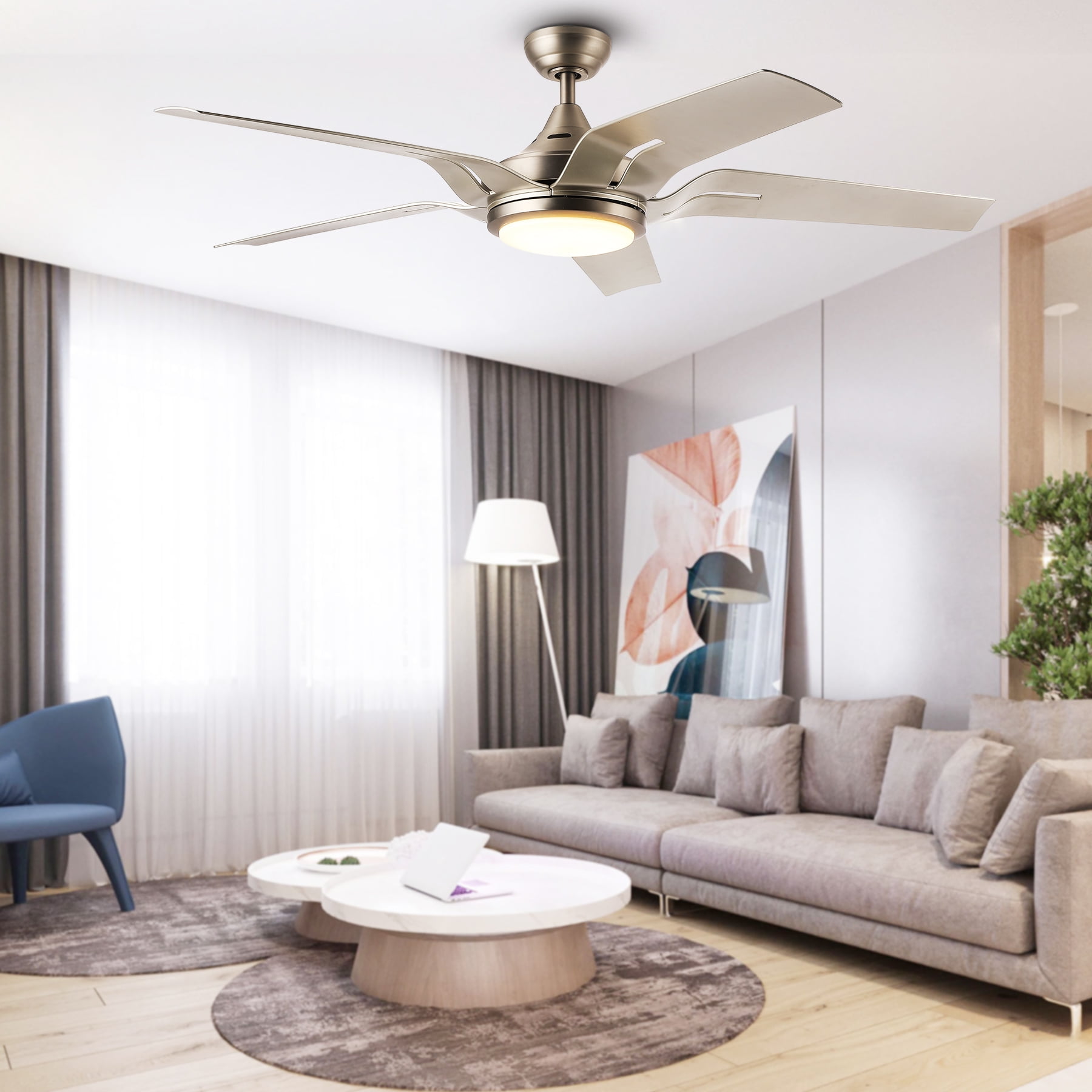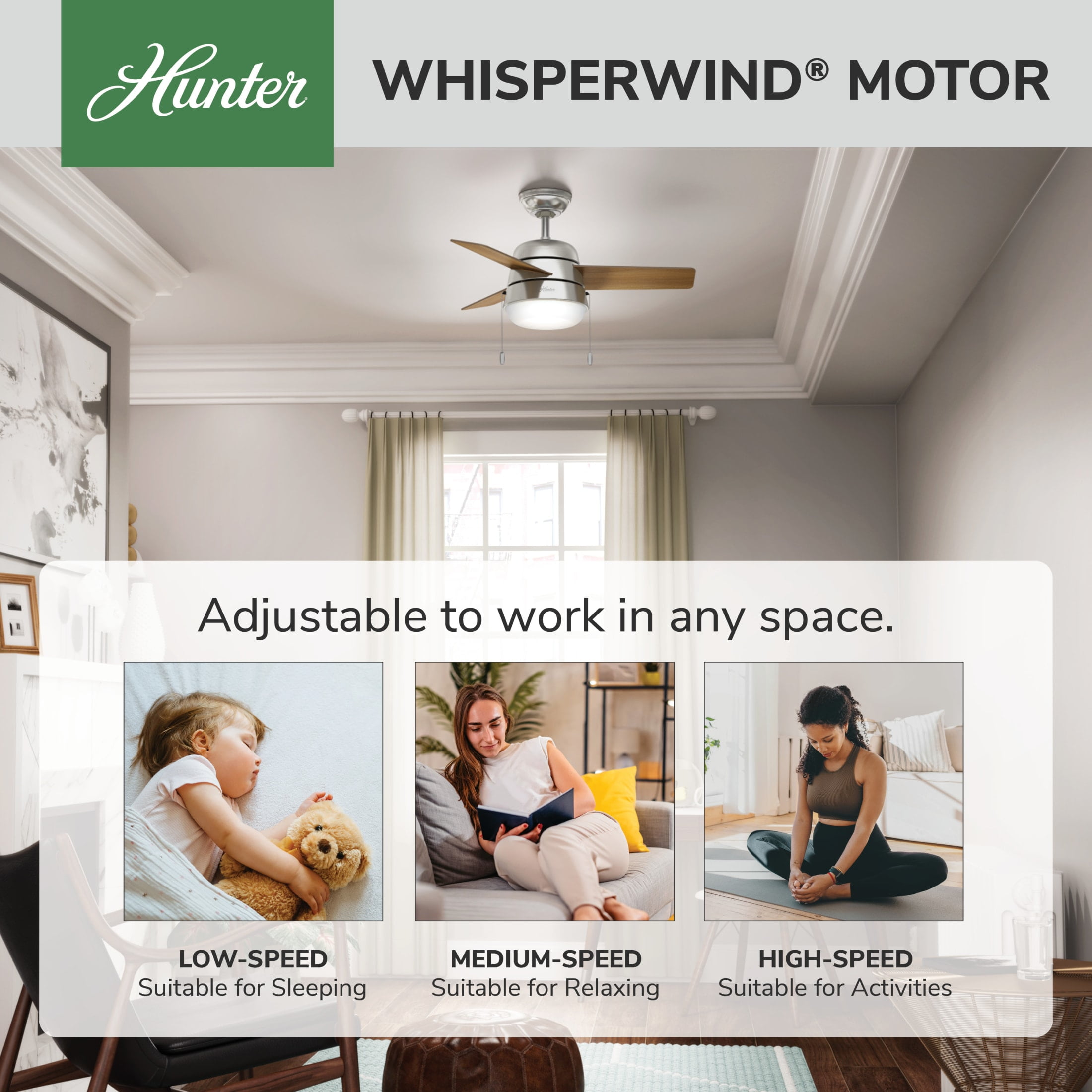 Hunter – Aker Indoor Ceiling Fan With Light, 36-inch, Brushed Nickel, Modern-style, 3-speed WhisperWind Motor, 59303, for Living Rooms, Bedrooms