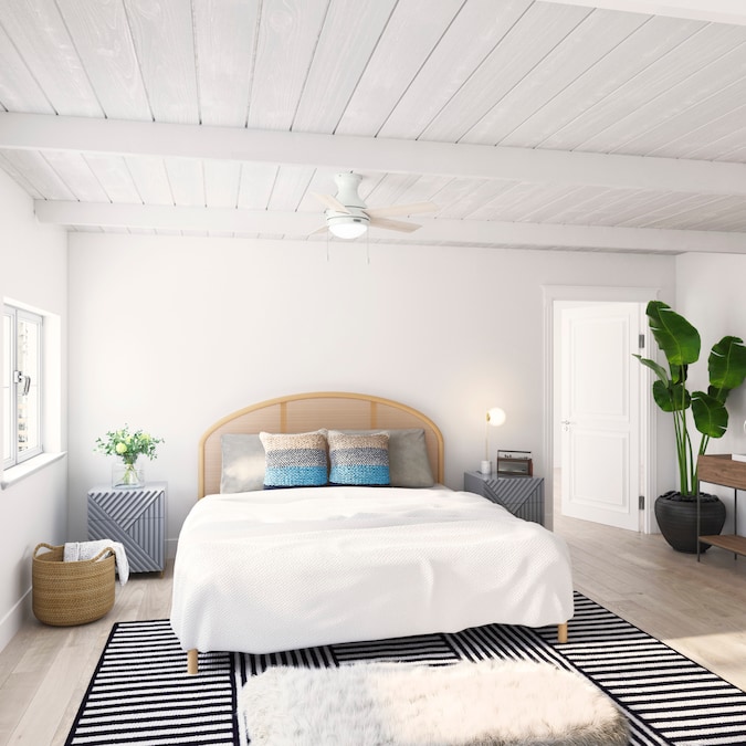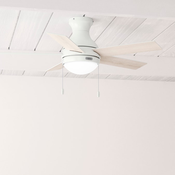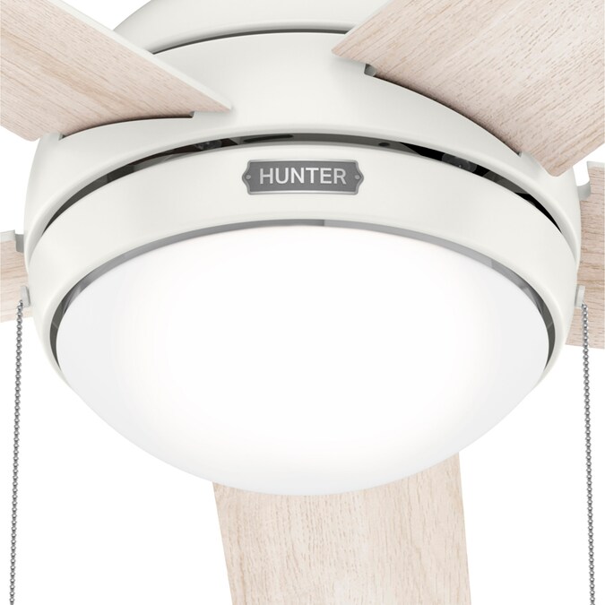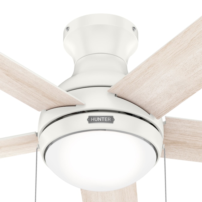 Hunter Aren SureSpeed 44-in Fresh White with Bleached Alder Blades LED Indoor Flush Mount Ceiling Fan with Light (5-Blade)