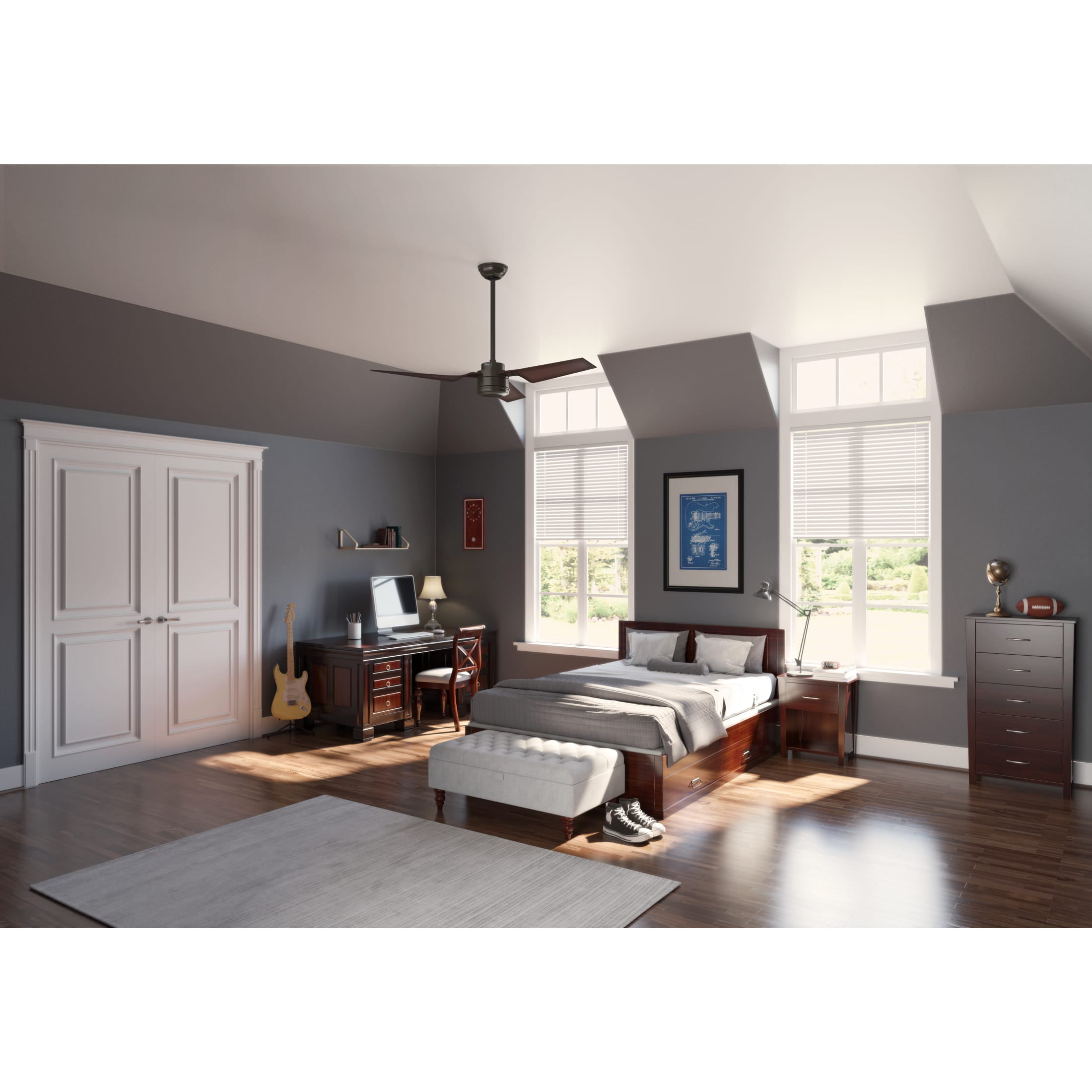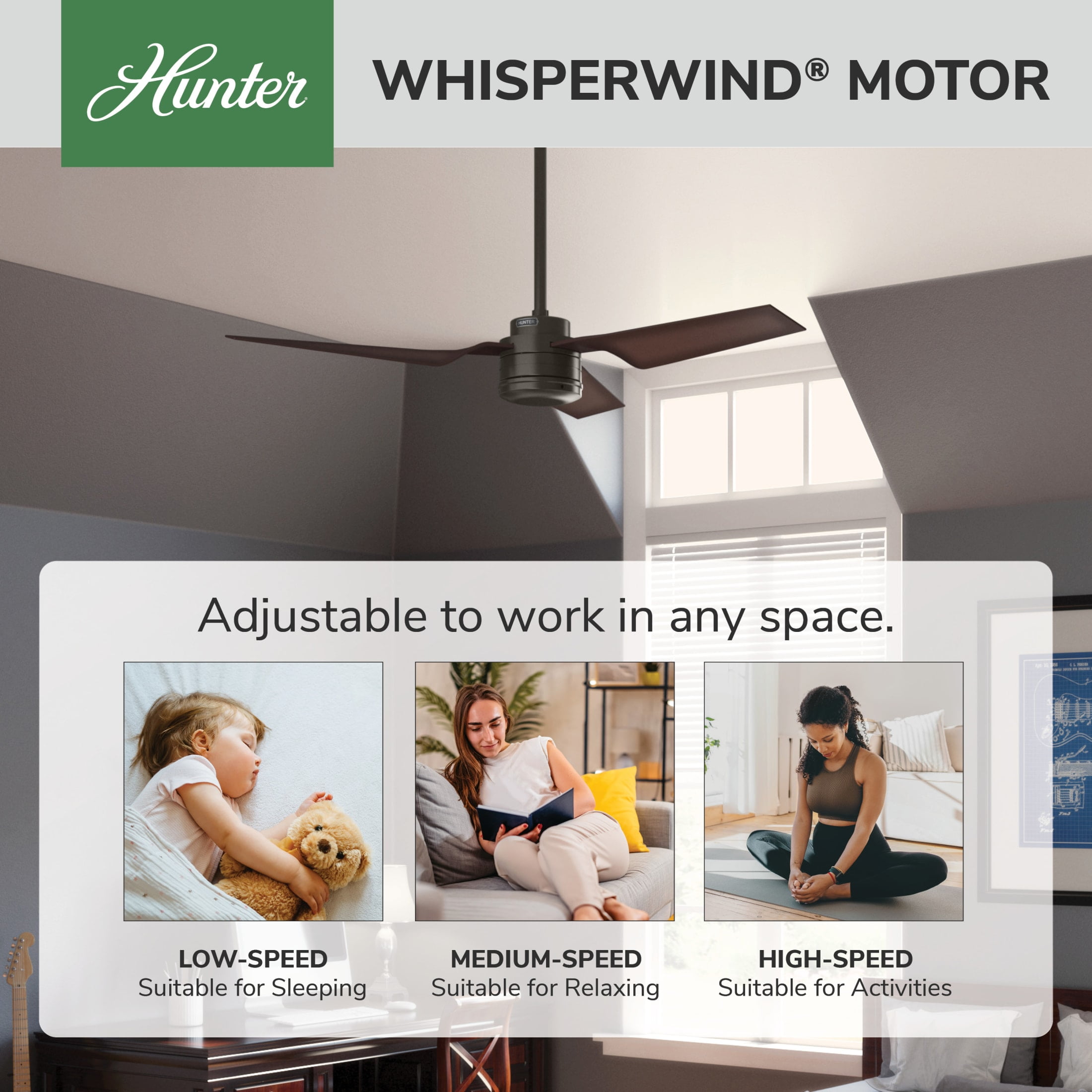 THE CABO FRIO: A medium-sized, modern ceiling fan perfect for your garage, covered patio / porch, living room / great room, fitness room, bonus room / game room, laundry room CLEARLY BRIGHTER: TrueLight™ products are designed for modern bulbs that provide illumination and efficiency so you get the perfect brightness, every time PREMIUM CONTROL: Wall control included for easy adjustments right from the wall of your choice AIRFLOW: Strong airflow up to 5256 cubic feet per minute (CFM) on high speed DAMP RATED: This fan is ETL rated for indoor or outdoor use in spaces exposed to moisture and humidity such as porches, patios, sunrooms, and bathrooms but not direct exposure to water LONGEVITY: Hunter performs twice the agency recommended testing to ensure their ceiling fans – from the finishes to the fan motor your Hunter will stand the test of time WARRANTY: Limited Lifetime Motor Warranty is backed by the only company with over 135 years in the fan business FLIP THE BLADE: This fan features 3 reversible Coffee Beech and Coffee Beech blades to help match your room’s design DOWNROD: Includes a single 3-inch downrod to ensure proper distance from the ceiling and optimize air movement WINTER AND SUMMER: Reversible motor allows you to change the direction of your fan from downdraft mode during the summer which helps cool the room to updraft mode during the winter to help circulate trapped warm air near the ceiling BLADE PITCH: Varies-degree blade pitch optimized to ensure ideal air movement and peak performance