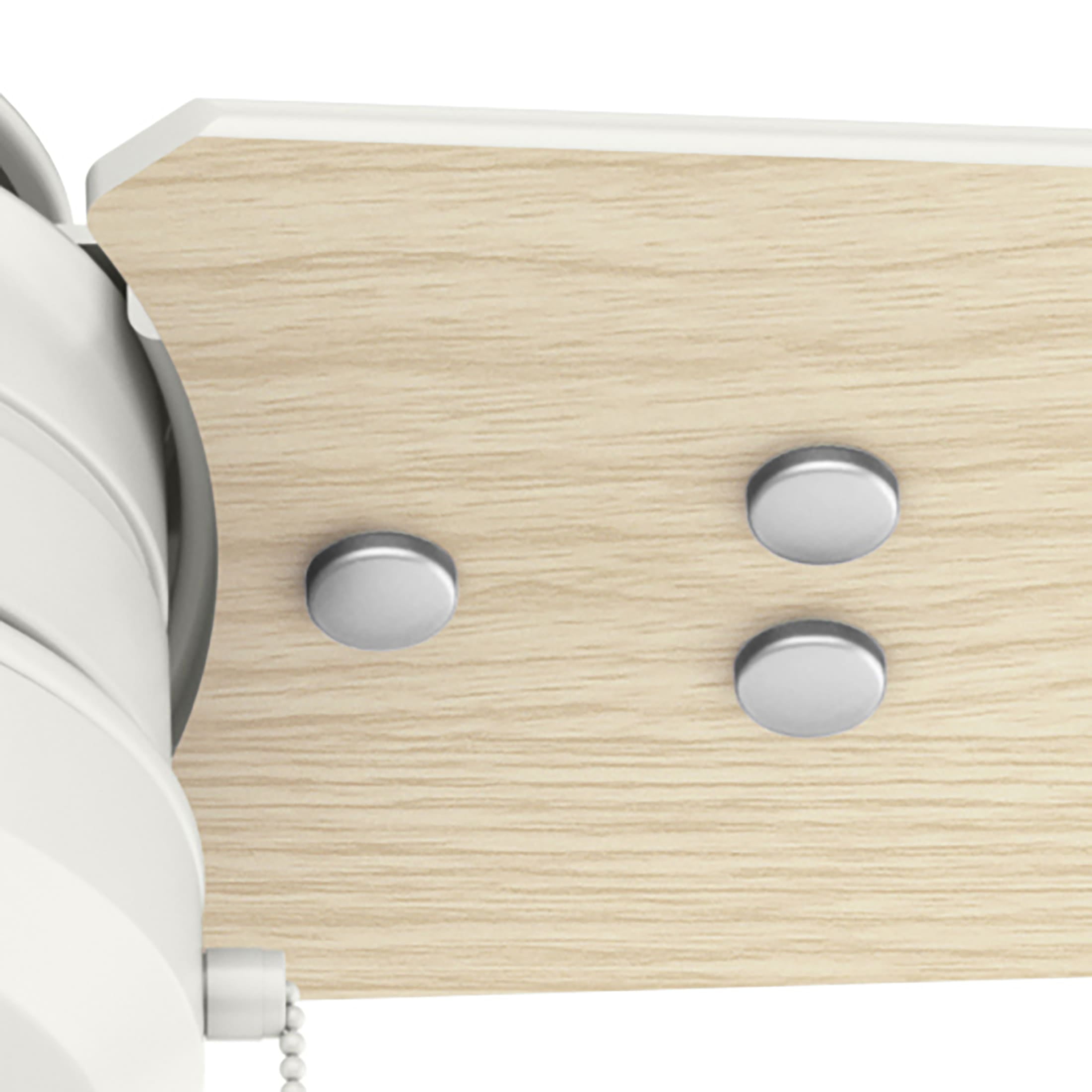 THE CASSIUS: A smaller-sized, casual ceiling fan perfect for your bathroom, covered patio / porch, fitness room, foyer / entry way, garage, guest bathroom, laundry room, master bathroom, mudroom / utility room DIGITAL MANUAL: Installation made easy with Hunter’s 3D InterActive Guide—just scan the QR code for quick setup CLEARLY BRIGHTER: TrueLight™ products are designed for modern bulbs that provide illumination and efficiency so you get the perfect brightness, every time PULL CHAINS: Includes pull chains for quick and easy on/off and speed adjustments PULL CHAINS: Includes pull chains for quick and easy on/off and speed adjustments AIRFLOW: Strong airflow up to 3096 cubic feet per minute (CFM) on high speed DAMP RATED: This fan is ETL rated for indoor or outdoor use in spaces exposed to moisture and humidity such as porches, patios, sunrooms, and bathrooms but not direct exposure to water LONGEVITY: Hunter performs twice the agency recommended testing to ensure their ceiling fans – from the finishes to the fan motor your Hunter will stand the test of time WARRANTY: Limited Lifetime Motor Warranty is backed by the only company with over 135 years in the fan business FLIP THE BLADE: This fan features 3 reversible Light Stripe and Fresh White blades to help match your room’s design DOWNROD: Includes a single 3-inch downrod to ensure proper distance from the ceiling and optimize air movement WINTER AND SUMMER: Reversible motor allows you to change the direction of your fan from downdraft mode during the summer which helps cool the room to updraft mode during the winter to help circulate trapped warm air near the ceiling BLADE PITCH: 13-degree blade pitch optimized to ensure ideal air movement and peak performance