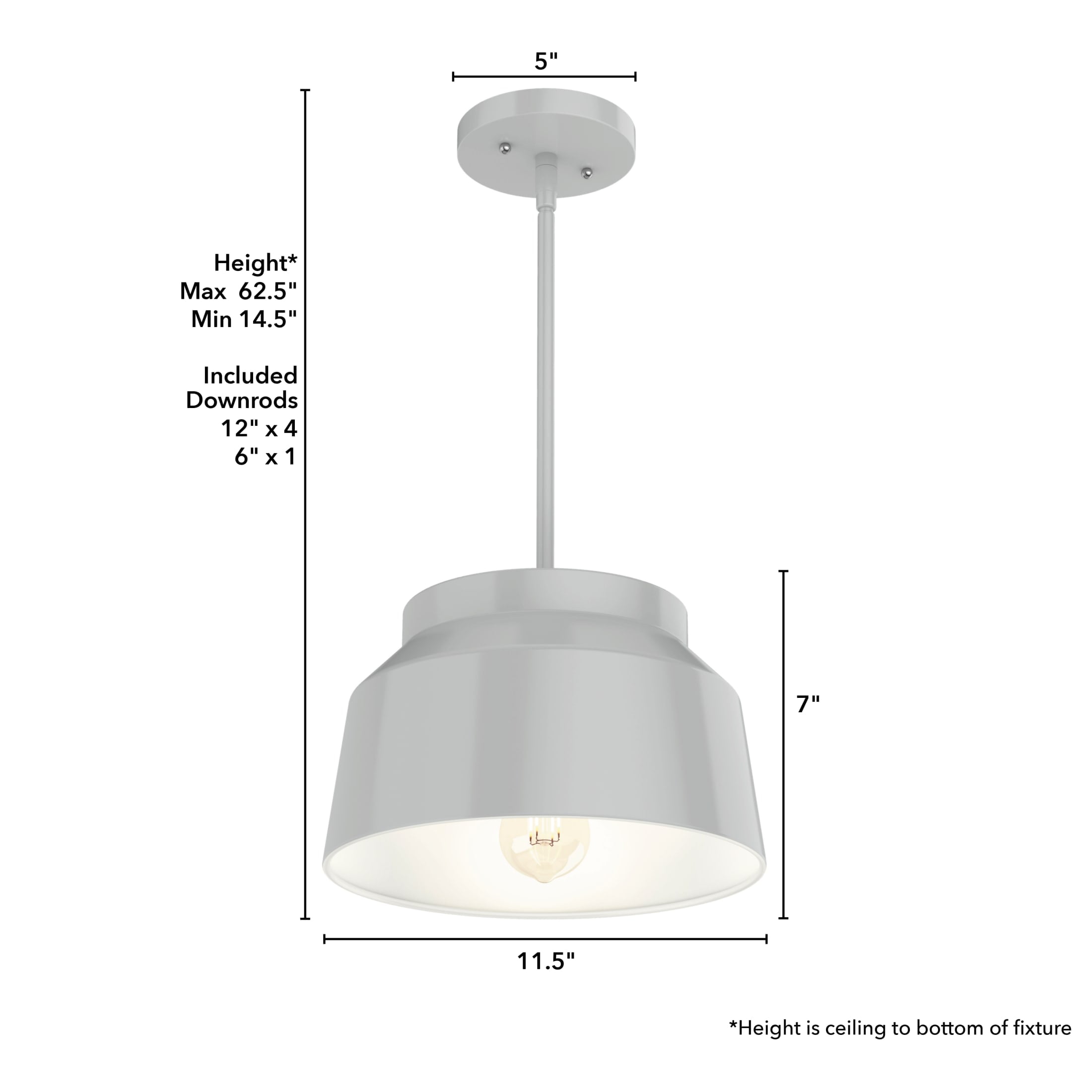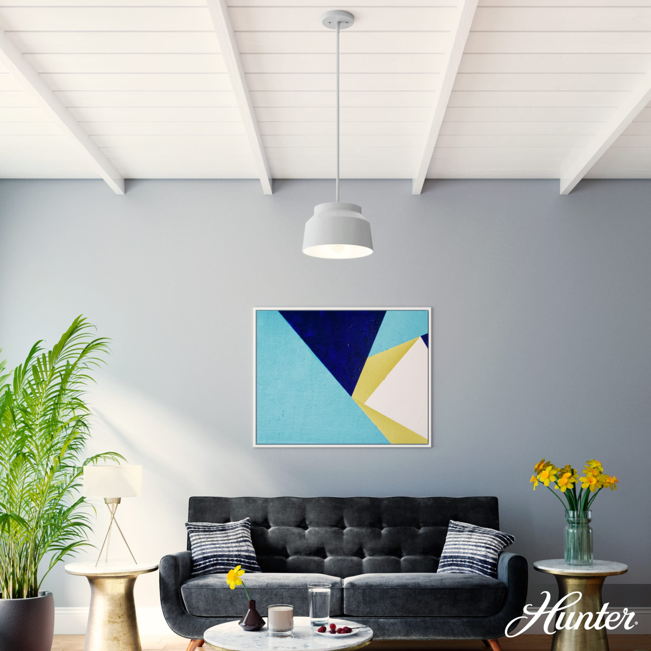 PREMIUM DESIGN: a medium-sized, modern design with attractive dove grey finish perfect for illuminating kitchens, living rooms, foyers, nooks, and dining areas HIGH-QUALITY: made of formed steel or aluminum ensuring durability and a long-lasting lifespan, clean with a soft, dry cloth; no harsh chemicals or abrasive cleaning materials PERFECT FOR DIY: minimal assembly required, little electrical experience required, and clearly marked hardware and instructions FIXTURE SIZE: 11.5-inch width, 11.5-inch length, 7-inch height REQUIRED BULB: uses one E26-base light bulb, ST64 Edison bulb recommended, 60 Watts or LED equivalent, bulb not included DRY RATED: this fixture is dry rated and is not suitable for humid environments such as bathrooms CONTROL THE AMBIANCE: the fixture can be fully dimmable when used with dimmable bulbs and compatible dimmer switch (sold separately) FLEXIBLE HANGING: one 6-inch and four 12-inch downrods allow hanging length adjustments from 14.5 inches to 62.5 inches, wiring can be cut to match; compatible with sloped ceilings SAFETY: an ETL Safety Listing ensures the safety and longevity of Hunter lighting products under normal wear and tear with everyday use WARRANTY: one-year limited warranty backed by the only company with over 139 years in the industry gives you peace of mind