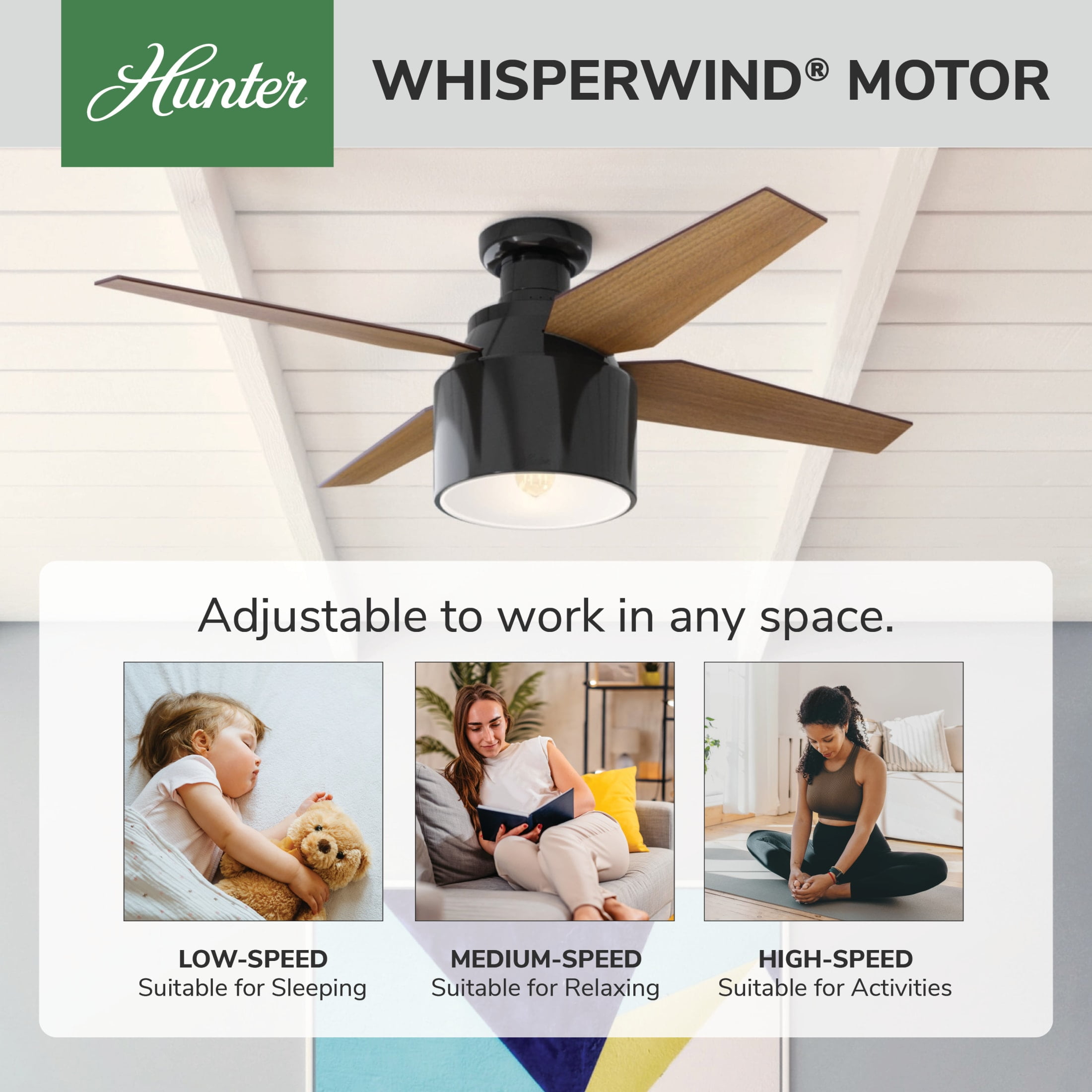 Hunter – Cranbrook Indoor Low Profile Ceiling Fan With Light, Remote, 52-inch, Gloss Black, Modern-style, 3-speed WhisperWind Motor, 59259, for Living Rooms, Bedrooms