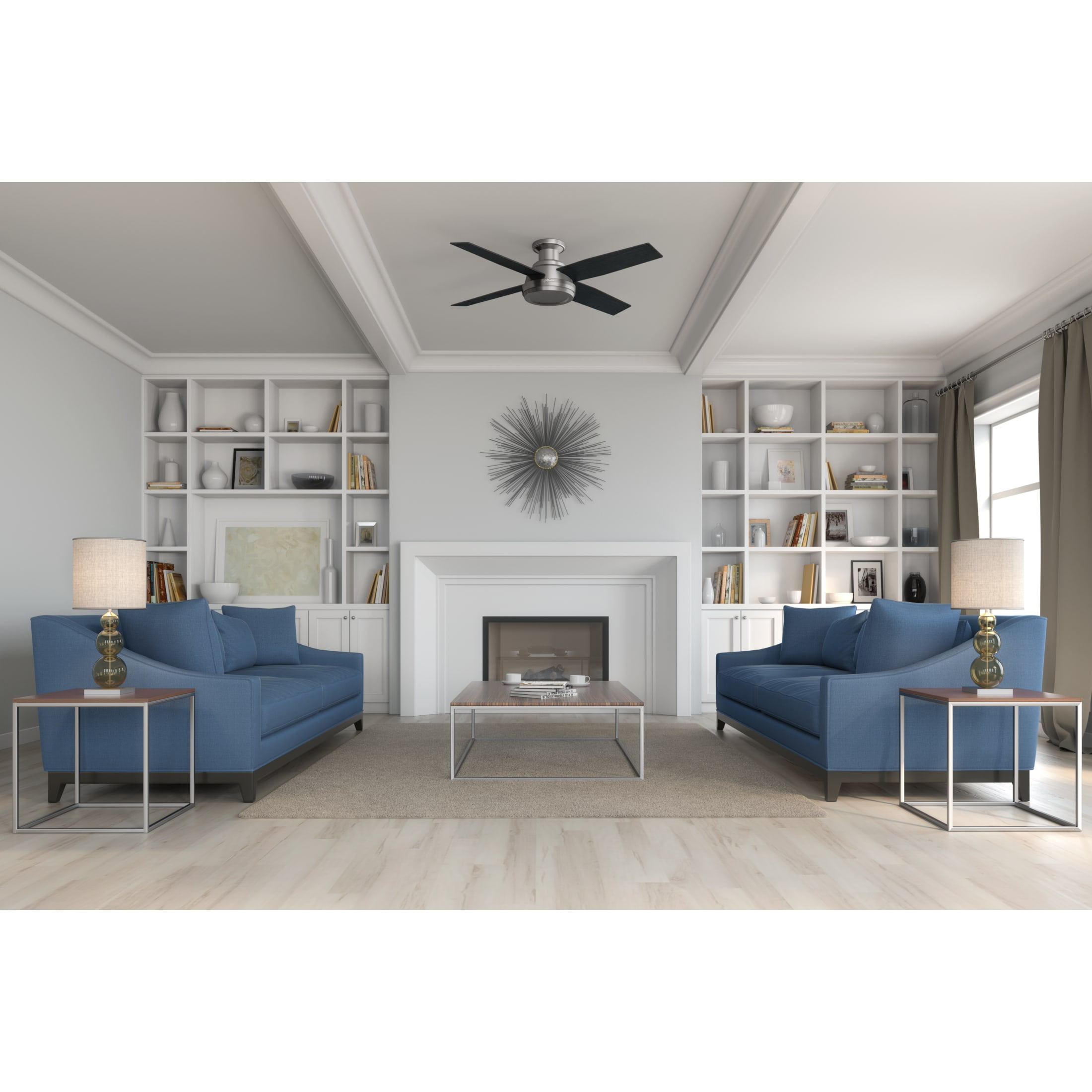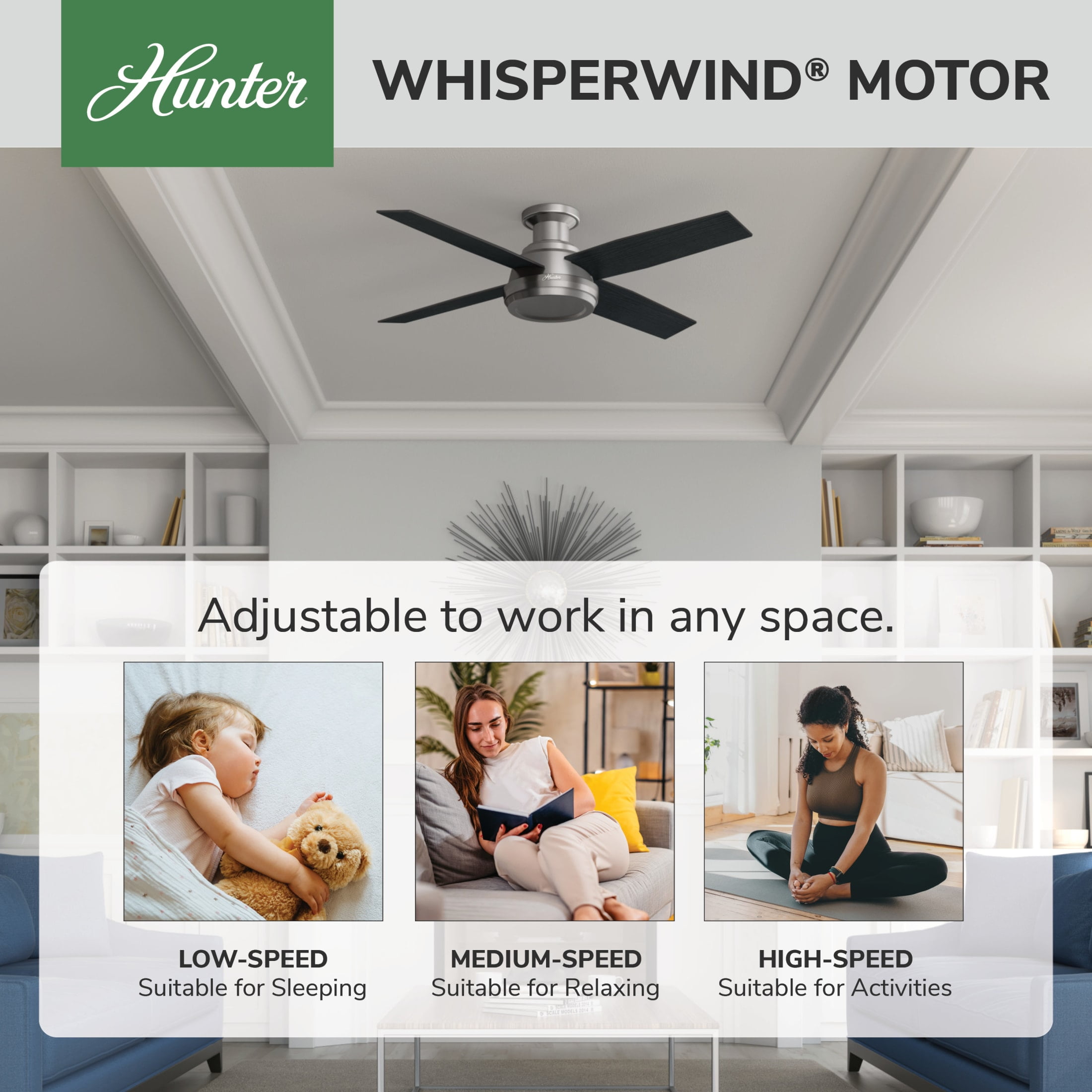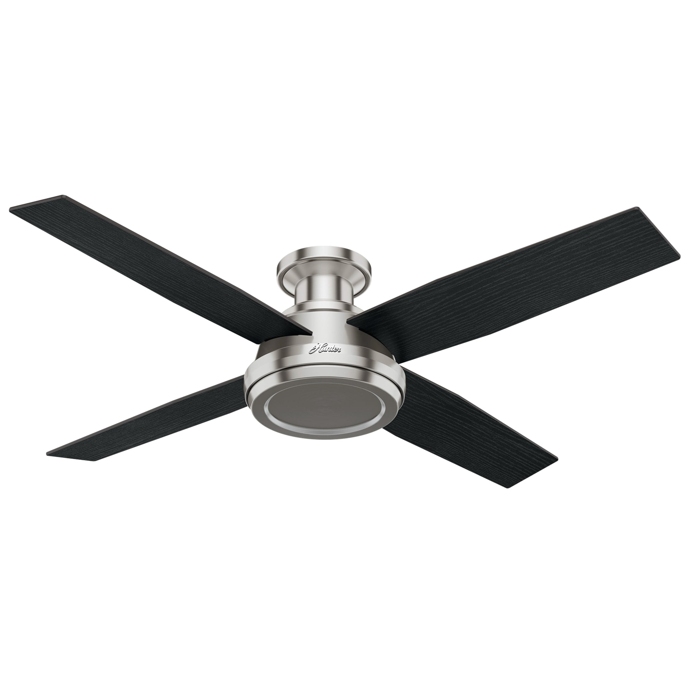 Hunter – Dempsey Indoor Low Profile Ceiling Fan, Remote, 52-inch, Brushed Nickel, Modern-style, 3-speed WhisperWind Motor, 59247, for Living Rooms, Bedrooms