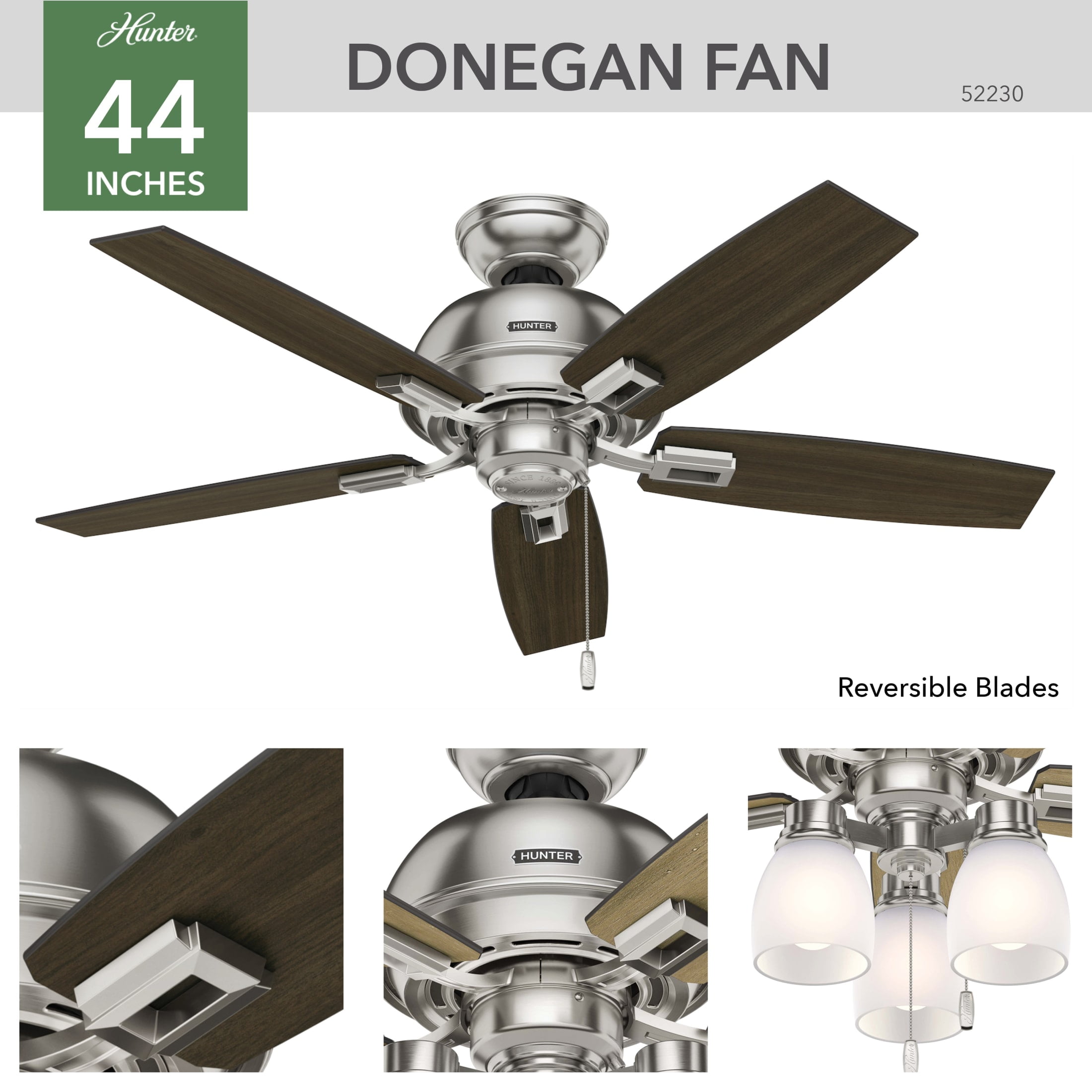 Hunter – Donegan Indoor Ceiling Fan With Light, 44-inch, Brushed Nickel, Rustic-style, 3-speed WhisperWind Motor, 52230, for living rooms, bedrooms, home offices, kitchens