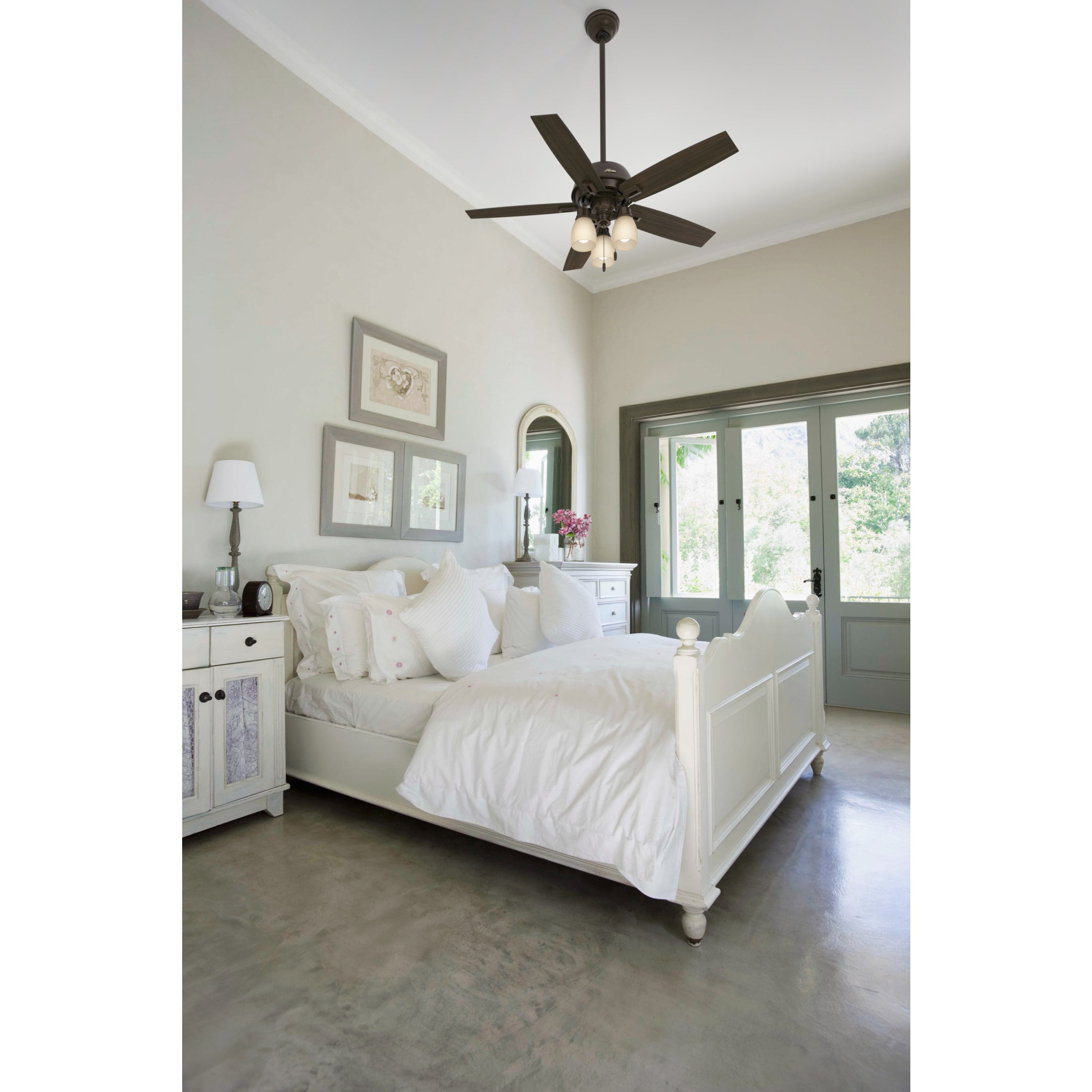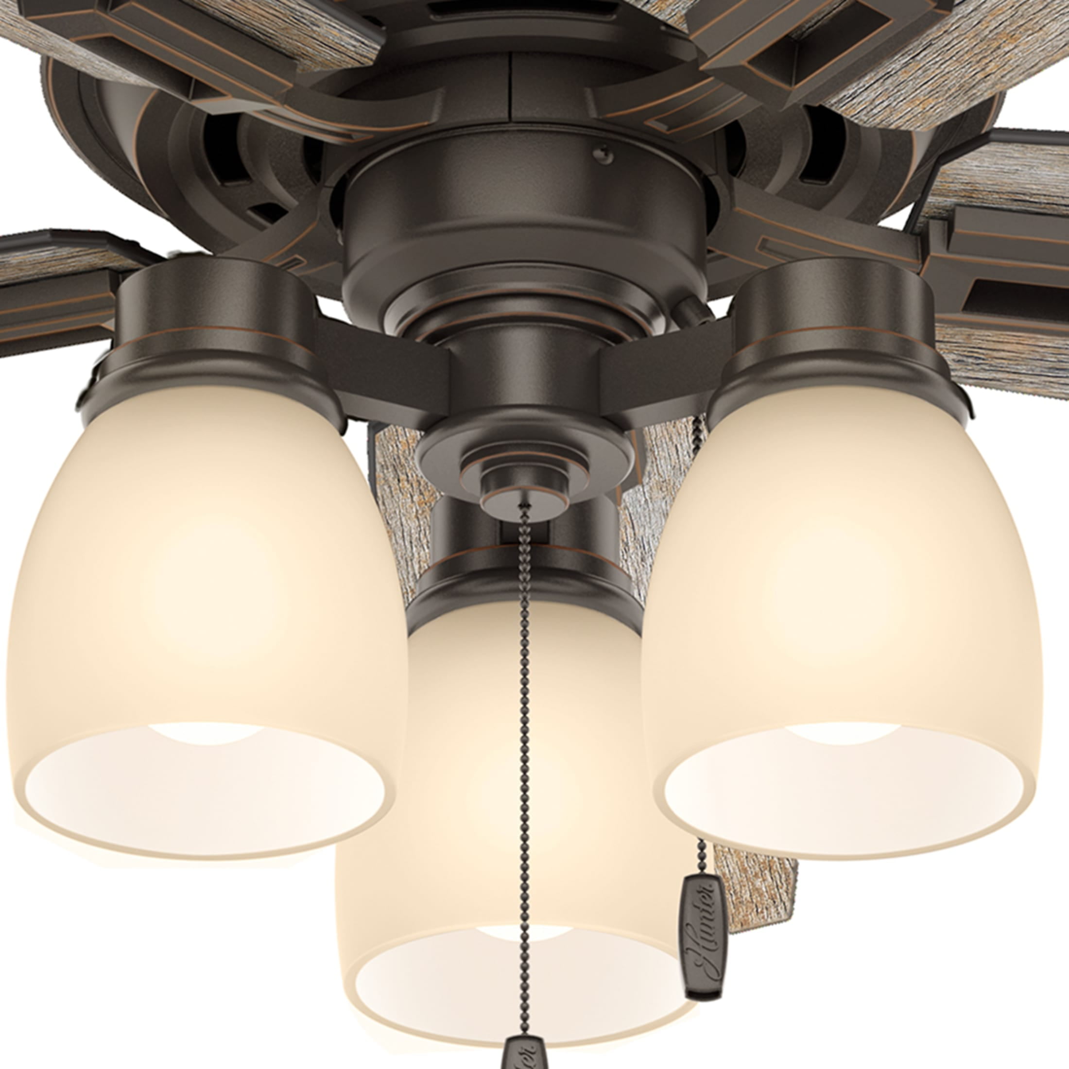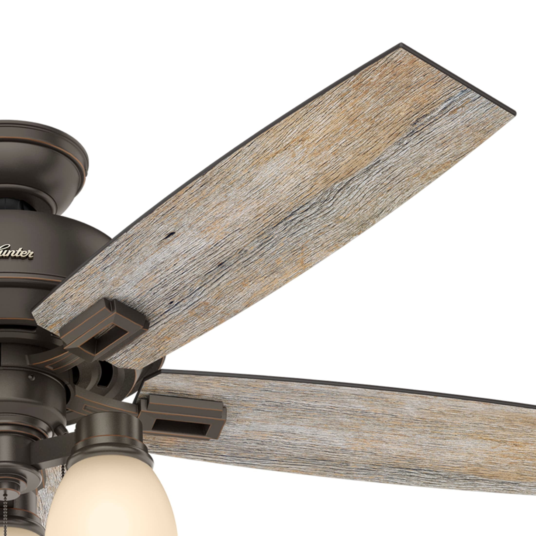 The Donegan boasts a sophisticated design with casual appeal. As part of the Hunter® Designer Series, this fan showcases high-end finishes and rustic features making it a perfect accent in any room with a farmhouse home decor style. The powerful motor and 52-inch blades will keep the air moving in your bedroom and living room, and the high-efficiency, dimmable LED bulbs in the three-light fixture are fully adjustable for the perfect amount of light. The Donegan collection has a large variety of finishes, sizes, lighting options, and more so you can carry a consistent design theme throughout every room in your home.