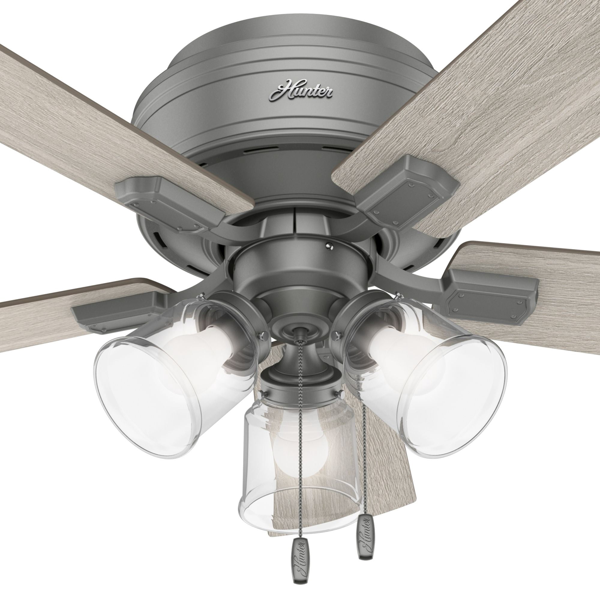 Hunter Fan 42″ Crest field Matte Silver Low Profile Ceiling Fan with LED Light and Pull Chain