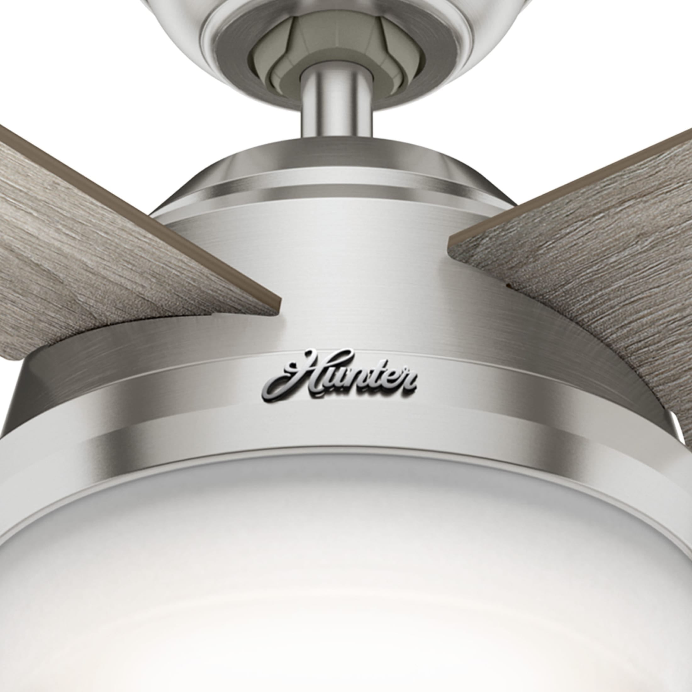 Hunter 52 inch Indoor Ceiling Fan with LED Light and Remote Control – Modern Ceiling Fan, Standard Mount, 4 Light Gray Oak Blades, For Bedroom, Living Room, or Kitchen – Dempsey 50284, Brushed Nickel