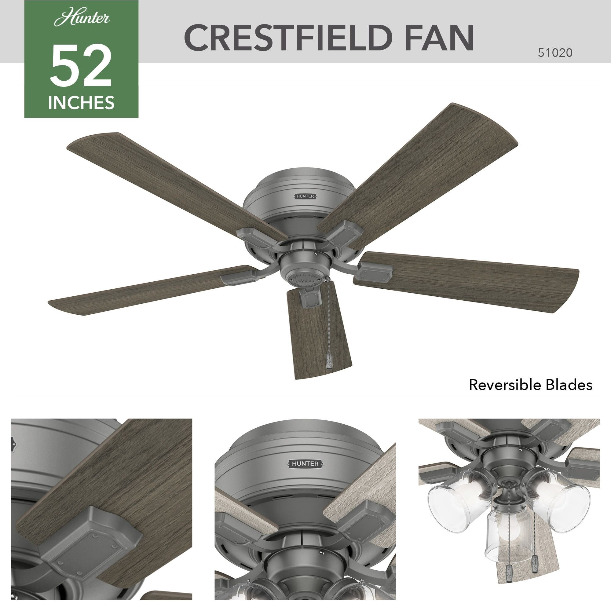 Manufacturer: Hunter Fans Family: Crestfield Mpn: 51020 Color: Matte Silver