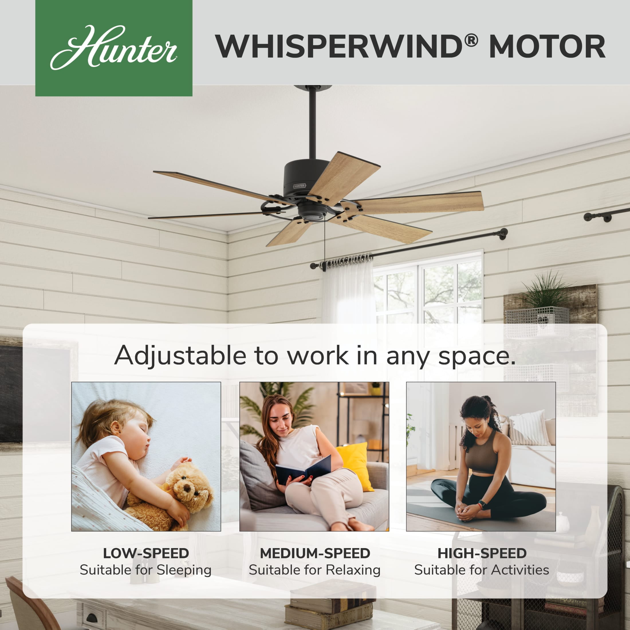 Hunter – Gilrock Indoor Ceiling Fan, 52-inch, Matte Black, Farmhouse-style, 3-speed WhisperWind Motor, 51817, for Living Rooms, Bedrooms