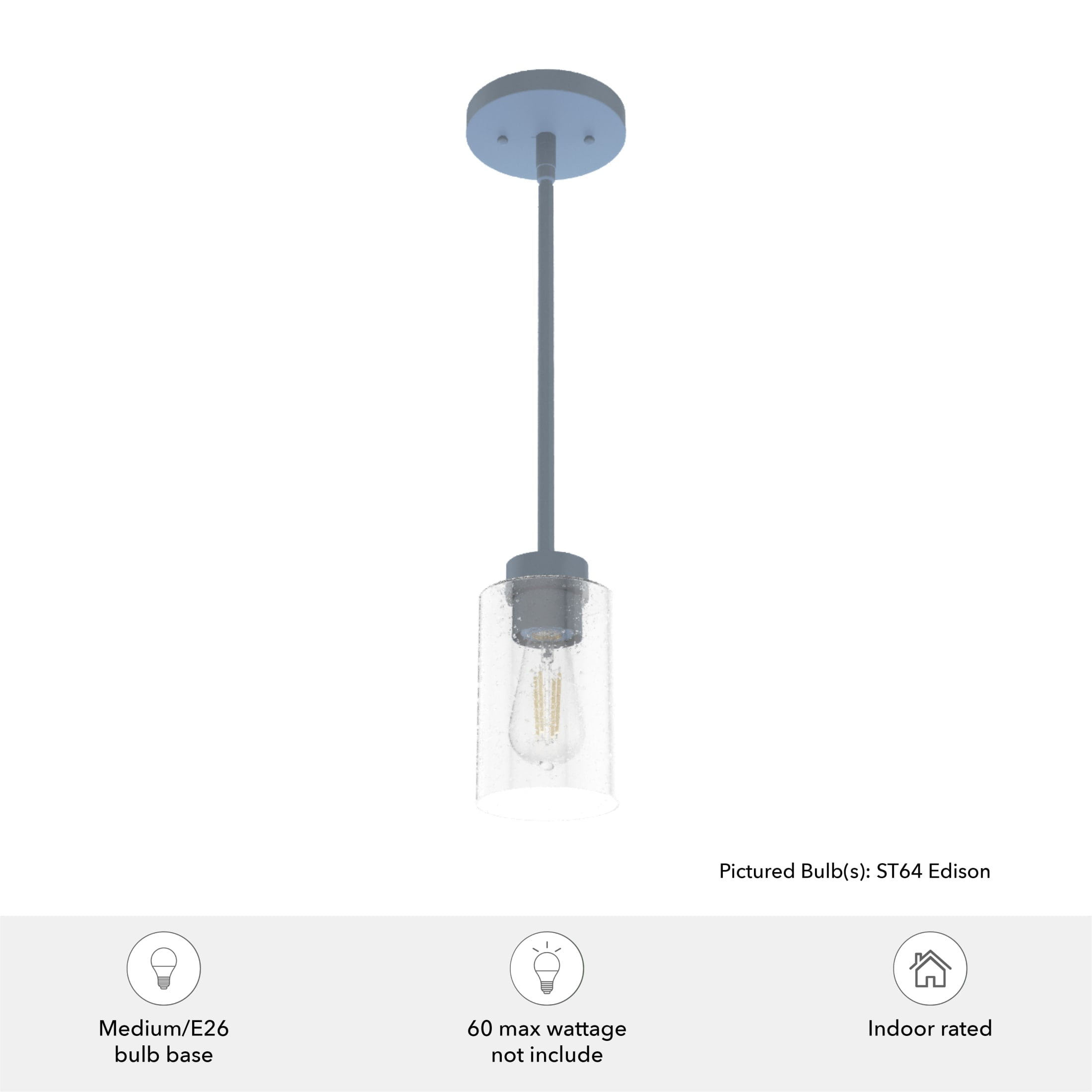 PREMIUM DESIGN: a mini-sized, casual design with attractive indigo blue finish and premium seeded glass shading perfect for illuminating kitchens, living rooms, foyers, nooks, and dining areas HIGH-QUALITY: made of formed steel or aluminum ensuring durability and a long-lasting lifespan, clean with a soft, dry cloth; no harsh chemicals or abrasive cleaning materials PERFECT FOR DIY: minimal assembly required, little electrical experience required, and clearly marked hardware and instructions FIXTURE SIZE: 4-inch width, 4-inch length, 7.5-inch height REQUIRED BULB: uses one E26-base light bulb, ST64 Edison bulb recommended, 60 Watts or LED equivalent, bulb not included DRY RATED: this fixture is dry rated and is not suitable for humid environments such as bathrooms CONTROL THE AMBIANCE: the fixture can be fully dimmable when used with dimmable bulbs and compatible dimmer switch (sold separately) FLEXIBLE HANGING: one 6-inch and four 12-inch downrods allow hanging length adjustments from 15 inches to 63 inches, wiring can be cut to match; compatible with sloped ceilings SAFETY: an ETL Safety Listing ensures the safety and longevity of Hunter lighting products under normal wear and tear with everyday use WARRANTY: one-year limited warranty backed by the only company with over 139 years in the industry gives you peace of mind