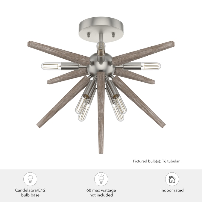 - REQUIRED BULBS: uses eight E12-base light bulbs, T6 Tubular recommended, each at 60-Watts maximum or the LED equivalent (bulbs not included)