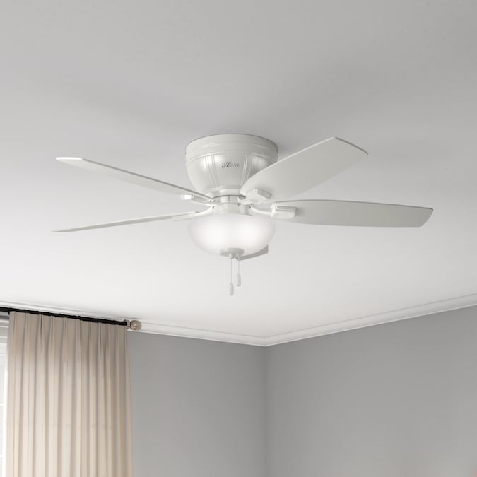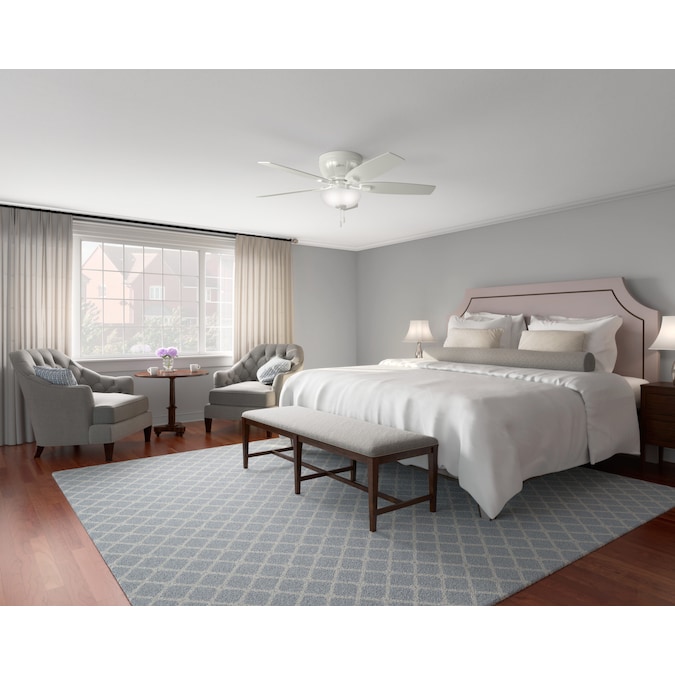 The Kenbridge ceiling fan features a unique, more compact design that takes up less space in your rustic-style room. With an option to install with or without lights, the Kenbridge low-profile fan includes high-efficiency, dimmable LED bulbs so you can get the perfect ambiance in any large room with low ceilings in your home. This rustic ceiling fan features reversible blades powered by a three-speed WhisperWind® motor to deliver ultra-powerful air movement with whisper-quiet performance.