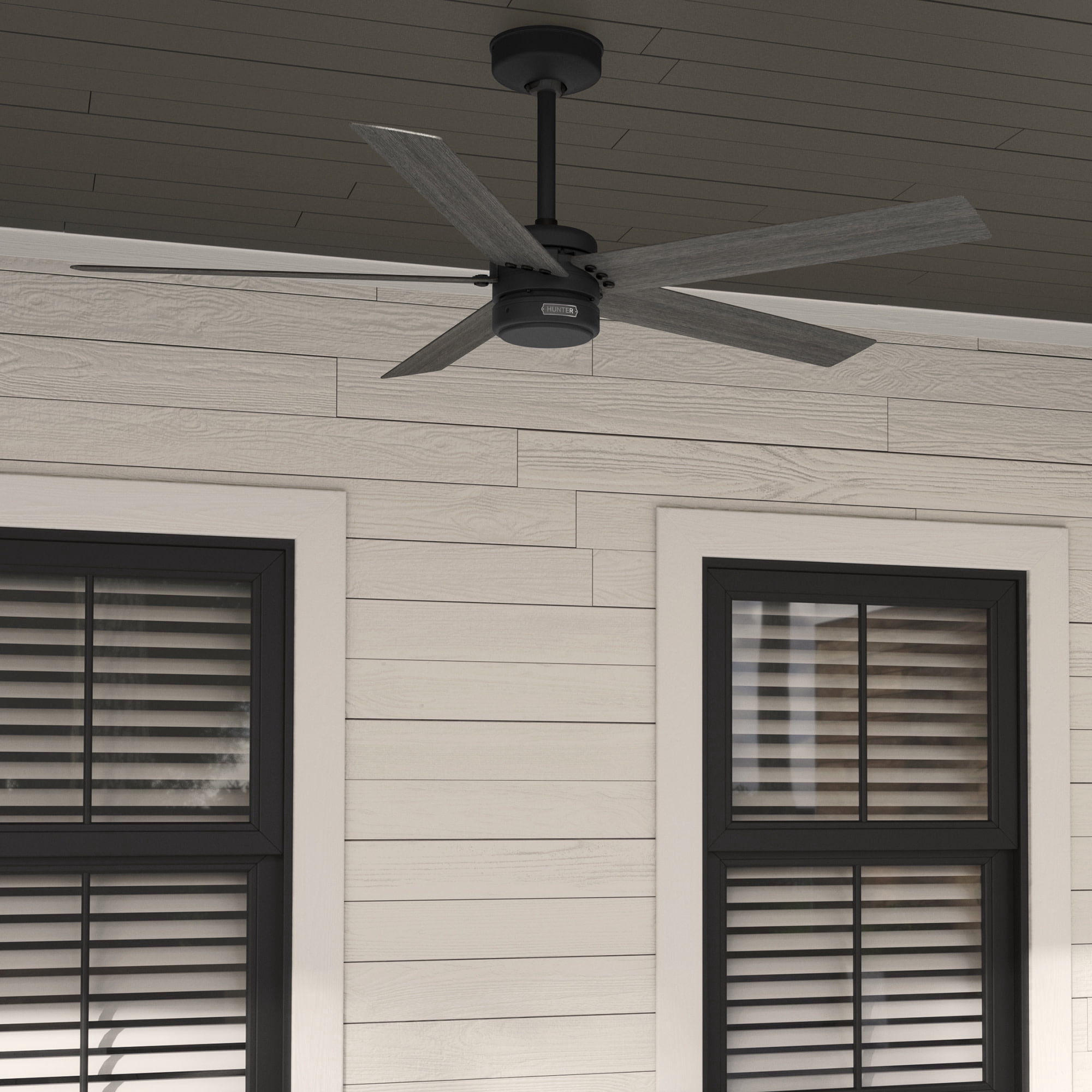 THE MAZZINI: A medium-sized, casual ceiling fan perfect for your covered patio / porch CLEARLY BRIGHTER: TrueLight™ products are designed for modern bulbs that provide illumination and efficiency so you get the perfect brightness, every time ENERGY SAVING MOTOR: 6-speed DC reversible motor provides silent, powerful movement with lower energy usage ENERGY EFFICIENT: Hunter’s ENERGY STAR® certified ceiling fans are 64% more efficient on average than conventional fans while helping you save you money on cooling costs PREMIUM CONTROL: Handheld remote included for easy fan adjustments from anywhere in the room AIRFLOW: Strong airflow up to 5035 cubic feet per minute (CFM) on high speed DAMP RATED: This fan is ETL rated for indoor or outdoor use in spaces exposed to moisture and humidity such as porches, patios, sunrooms, and bathrooms but not direct exposure to water LONGEVITY: Hunter performs twice the agency recommended testing to ensure their ceiling fans – from the finishes to the fan motor your Hunter will stand the test of time WARRANTY: Limited Lifetime Motor Warranty is backed by the only company with over 135 years in the fan business DOWNROD: Includes a single 3-inch downrod to ensure proper distance from the ceiling and optimize air movement WINTER AND SUMMER: Reversible motor allows you to change the direction of your fan from downdraft mode during the summer which helps cool the room to updraft mode during the winter to help circulate trapped warm air near the ceiling BLADE PITCH: Varies-degree blade pitch optimized to ensure ideal air movement and peak performance