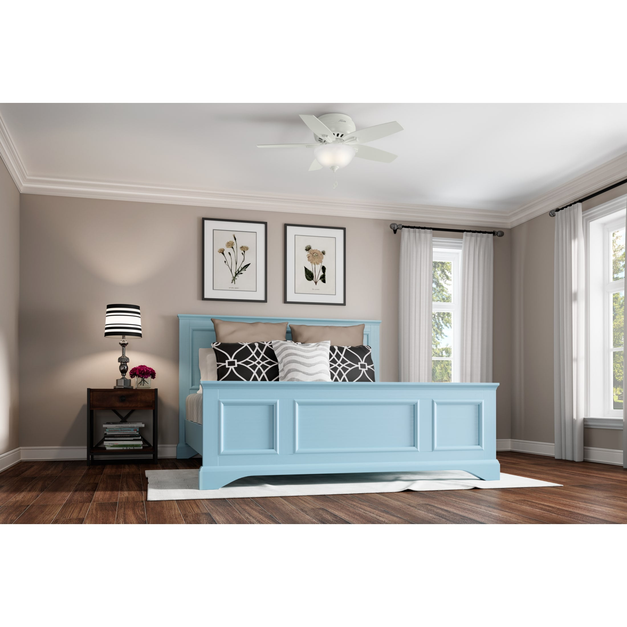 Hunter – Newsome Indoor Low Profile Ceiling Fan With Light, 42-inch, Fresh White, Traditional-style, 3-speed WhisperWind Motor, 51080, for Living Rooms, Bedrooms