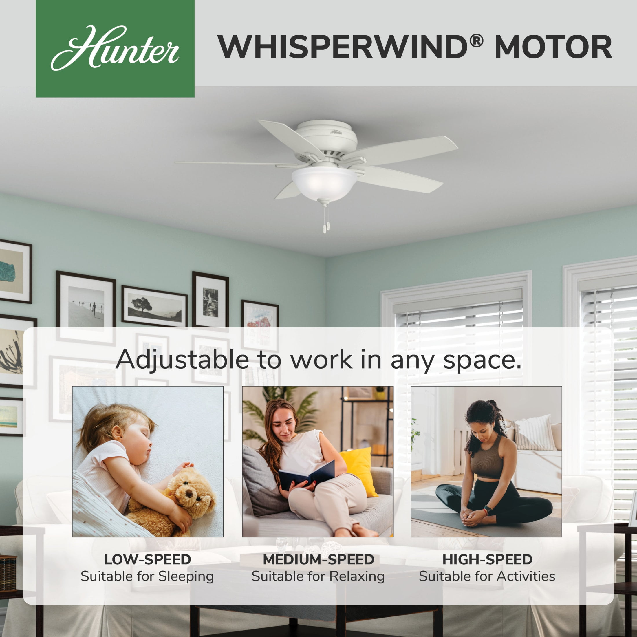 Hunter – Newsome Indoor Low Profile Ceiling Fan With Light, 52-inch, Fresh White, Traditional-style, 3-speed WhisperWind Motor, 53313, for Living Rooms, Bedrooms