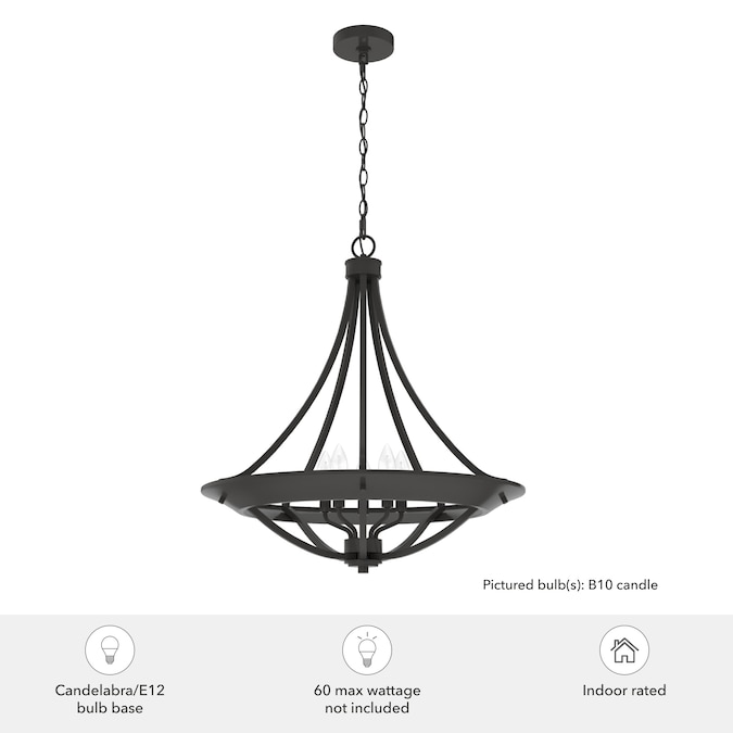 - REQUIRED BULBS: uses four E12-base light bulbs, B10 Candle recommended, each at 60-Watts maximum or the LED equivalent (bulbs not included)