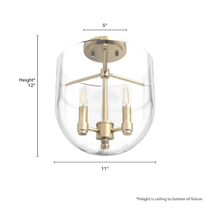 Designed with cathedral-like elegance. The bold Sacha 3-light semi-flush mount light adds modern flair to a traditional style. With its clear glass and clean lines, this bell-shaped pendant is the sophisticated addition your space needs. This fixture makes a dramatic statement in low clearance spaces. It’s part of a larger collection, so pair this flush mount light with other beautiful Sacha fixtures.