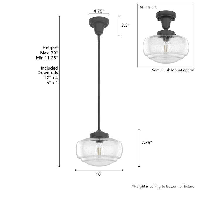 Traditional design. Elevated elements. The Saddle Creek mini pendant draws inspiration from the iconic American schoolhouse light but adds an updated touch with subtle detailing in the glass shade. For those who want all-in-one light fixtures, this schoolhouse-inspired mini pendant can also be installed as a semi-flush mount lighting.