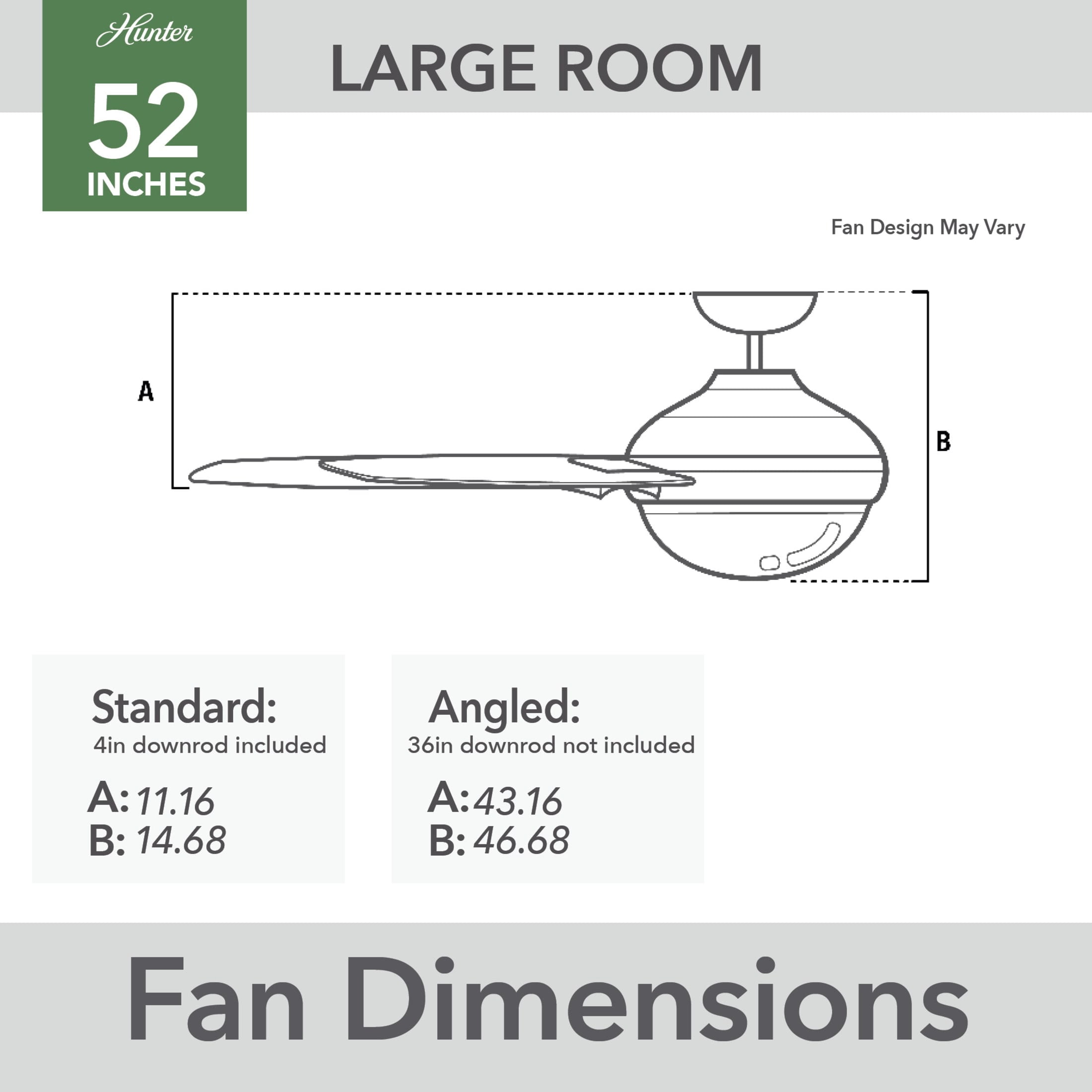 THE SKYFLOW: A medium-sized, modern ceiling fan perfect for your outdoor room / pergola CLEARLY BRIGHTER: TrueLight™ products are designed for modern bulbs that provide illumination and efficiency so you get the perfect brightness, every time TOUGHEST CONDITIONS: Water- and corrosion-resistant WeatherMax outdoor ceiling fans not only eliminate blade droop but are built strong to provide years of service through harsh rain and salt environments SURESPEED AND WHISPERWIND: The 3-speed WhisperWind reversible motor and exclusive SureSpeed Technology deliver ultra-powerful airflow for high-speed cooling with quiet performance PREMIUM CONTROL: Wall control included for easy adjustments right from the wall of your choice AIRFLOW: Strong airflow up to 5147 cubic feet per minute (CFM) on high speed INTEGRATED LIGHT KIT: Includes a18W energy-efficient, dimmable, integrated LED light kit to give you control of the ambiance in your space with a lifetime expectation of 60,000 hours LONGEVITY: Hunter performs twice the agency recommended testing to ensure their ceiling fans – from the finishes to the fan motor your Hunter will stand the test of time WARRANTY: Limited Lifetime Motor Warranty is backed by the only company with over 135 years in the fan business PREMIUM GLASS SHADING: The light kit includes premium painted cased white glass shading DOWNRODS: Includes 4-inch and N/A-inch downrods to ensure proper distance from the ceiling and optimize air movement WINTER AND SUMMER: Reversible motor allows you to change the direction of your fan from downdraft mode during the summer which helps cool the room to updraft mode during the winter to help circulate trapped warm air near the ceiling BLADE PITCH: 13-degree blade pitch optimized to ensure ideal air movement and peak performance