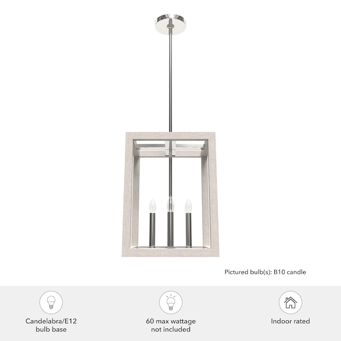 - REQUIRED BULBS: uses four E12-base light bulbs, B10 Candle recommended, each at 60-Watts maximum or the LED equivalent (bulbs not included)