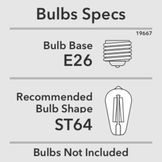- REQUIRED BULBS: uses five E26-base light bulb(s), each at 60-Watts maximum or the LED equivalent (bulbs not included)