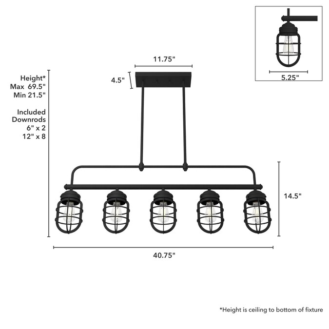 The linear design of the Starklake 5-light caged chandelier is a striking fixture in modern industrial and farmhouse dining rooms and kitchens. Use Edison LED light bulbs to highlight the unique caged design on this rustic chandelier. The Starklake linear chandelier complements the Starklake ceiling fan collection, helping give your home a cohesive look.