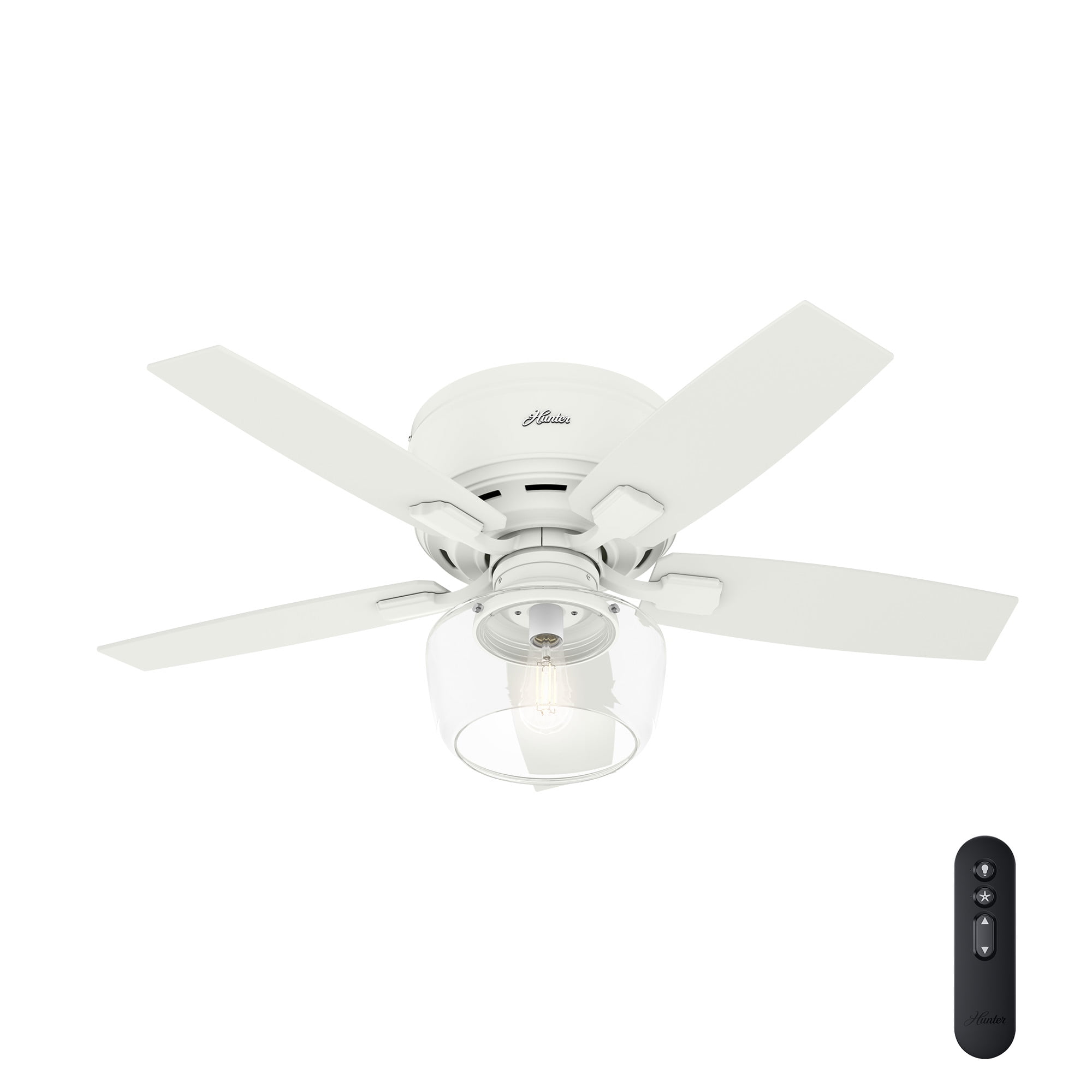 THE SWANSON: A smaller-sized, traditional ceiling fan perfect for your bedroom CLEARLY BRIGHTER: TrueLight™ products are designed for modern bulbs that provide illumination and efficiency so you get the perfect brightness, every time ENERGY EFFICIENT: Hunter’s ENERGY STAR® certified ceiling fans are 64% more efficient on average than conventional fans while helping you save you money on cooling costs PULL CHAINS: Includes pull chains for quick and easy on/off and speed adjustments PULL CHAINS: Includes pull chains for quick and easy on/off and speed adjustments AIRFLOW: Strong airflow up to 3963 cubic feet per minute (CFM) on high speed INDOOR ONLY: This ceiling fan is ETL rated for indoor use only, making it ideal for spaces like living rooms, bedrooms, home offices, and kitchens BULBS INCLUDED: Includes two, 7-Watt energy-efficient, long-lasting, dimmable LED bulbs LONGEVITY: Hunter performs twice the agency recommended testing to ensure their ceiling fans – from the finishes to the fan motor your Hunter will stand the test of time WARRANTY: Limited Lifetime Motor Warranty is backed by the only company with over 135 years in the fan business PREMIUM GLASS SHADING: The light kit includes premium swirled marble glass shading FLIP THE BLADE: This fan features 5 reversible Autumn Walnut and Natural Wood blades to help match your room’s design DOWNROD: Includes a single 2-inch downrod to ensure proper distance from the ceiling and optimize air movement WINTER AND SUMMER: Reversible motor allows you to change the direction of your fan from downdraft mode during the summer which helps cool the room to updraft mode during the winter to help circulate trapped warm air near the ceiling BLADE PITCH: 13-degree blade pitch optimized to ensure ideal air movement and peak performance