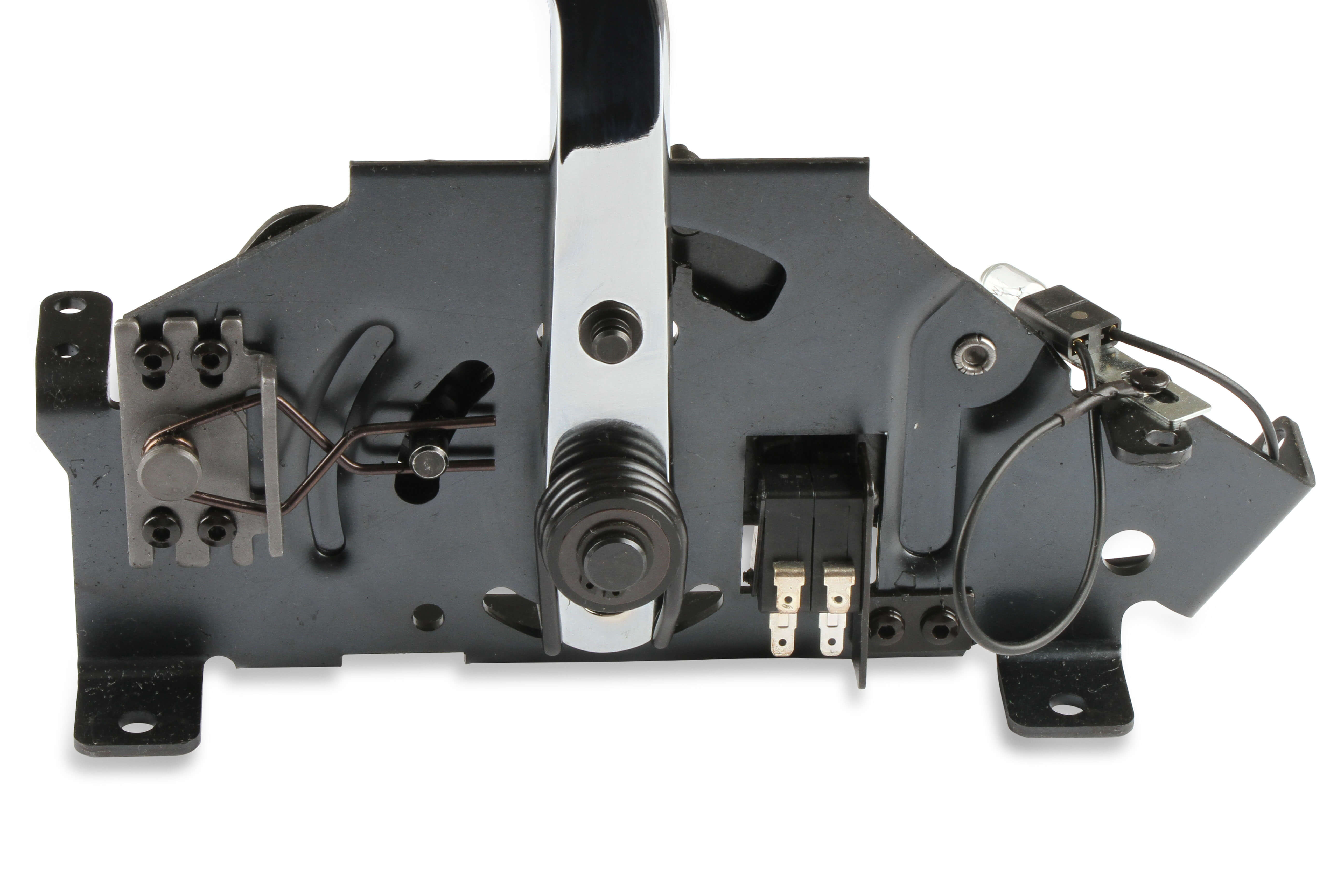 Compatible with Forward or Reverse Pattern Valve Bodies Fits Most Popular 3-spd Automatic Transmissions Complete with Brackets, Lever and 5′ Shift Cable Neutral Safety and Backup Light Switches Illuminated Gear Position Indicator Positive Reverse Loc-Out Feature Retro Manual Shifter Look Lifetime Limited Warranty