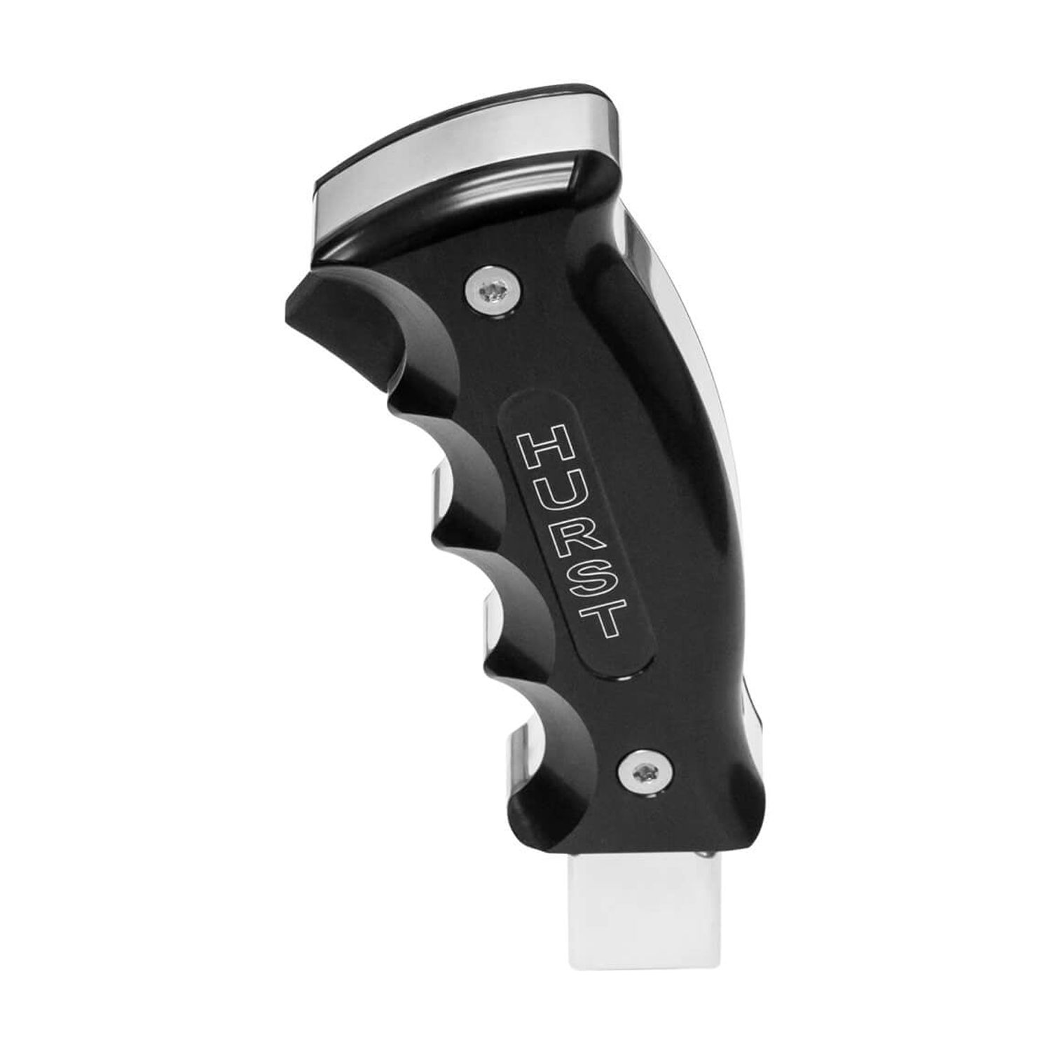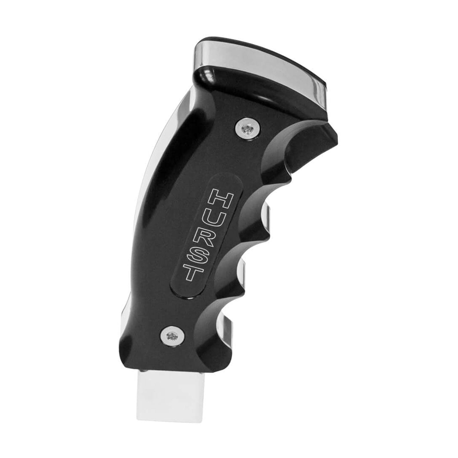 Polished Shift Handle with Black Anodized Side Plates CNC Machined from 6061 Billet Aluminum Machined Hurst Logo on Side Grip Plates Includes all Necessary Hardware Easy to Follow Instructions Lifetime Limited Warranty Easy Bolt-On Installation Ergonomic Fit and Feel