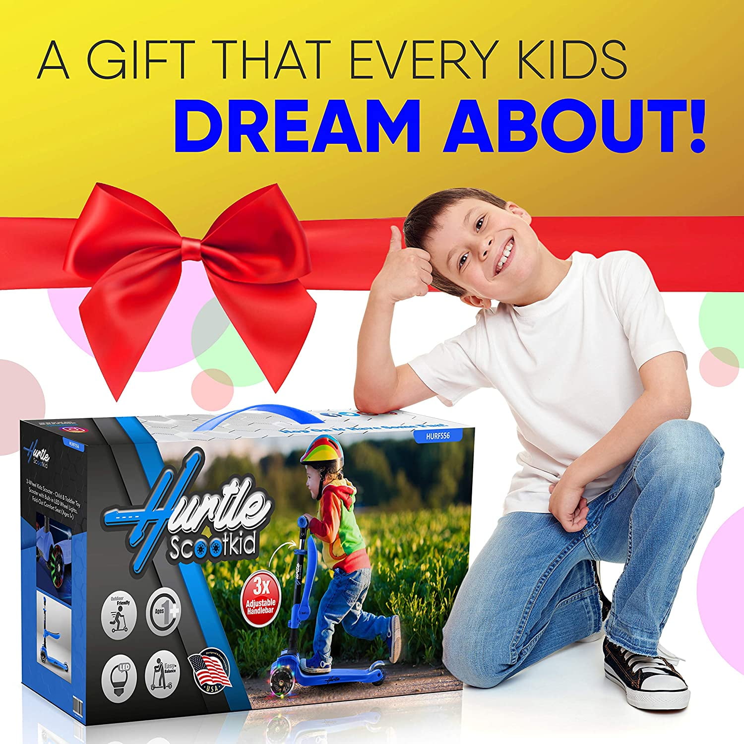 Hurtle Fitness HURFS56.5 – Scoot Kid 3-Wheel Kids Scooter – Child & Toddler Toy Scooter with Built-in LED Wheel Lights, Fold-Out Comfort Seat (Ages 1+)