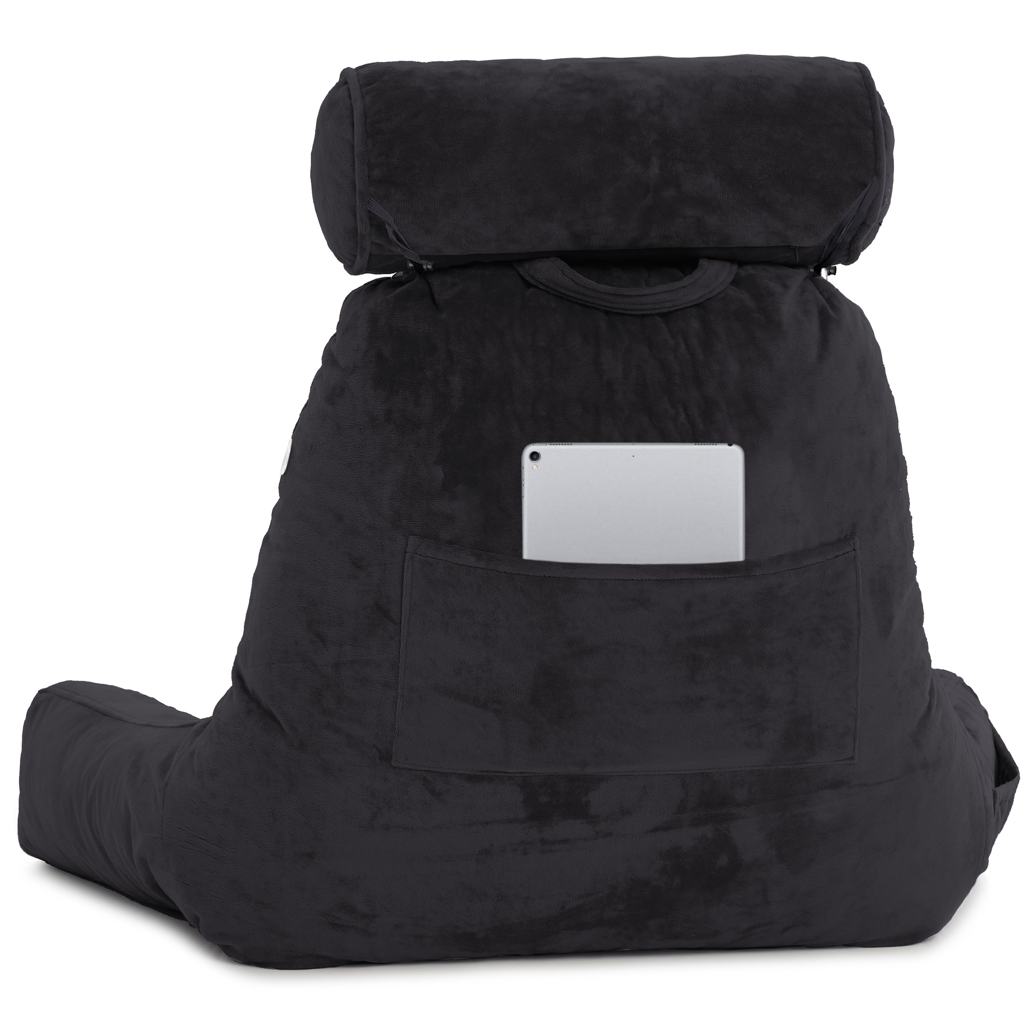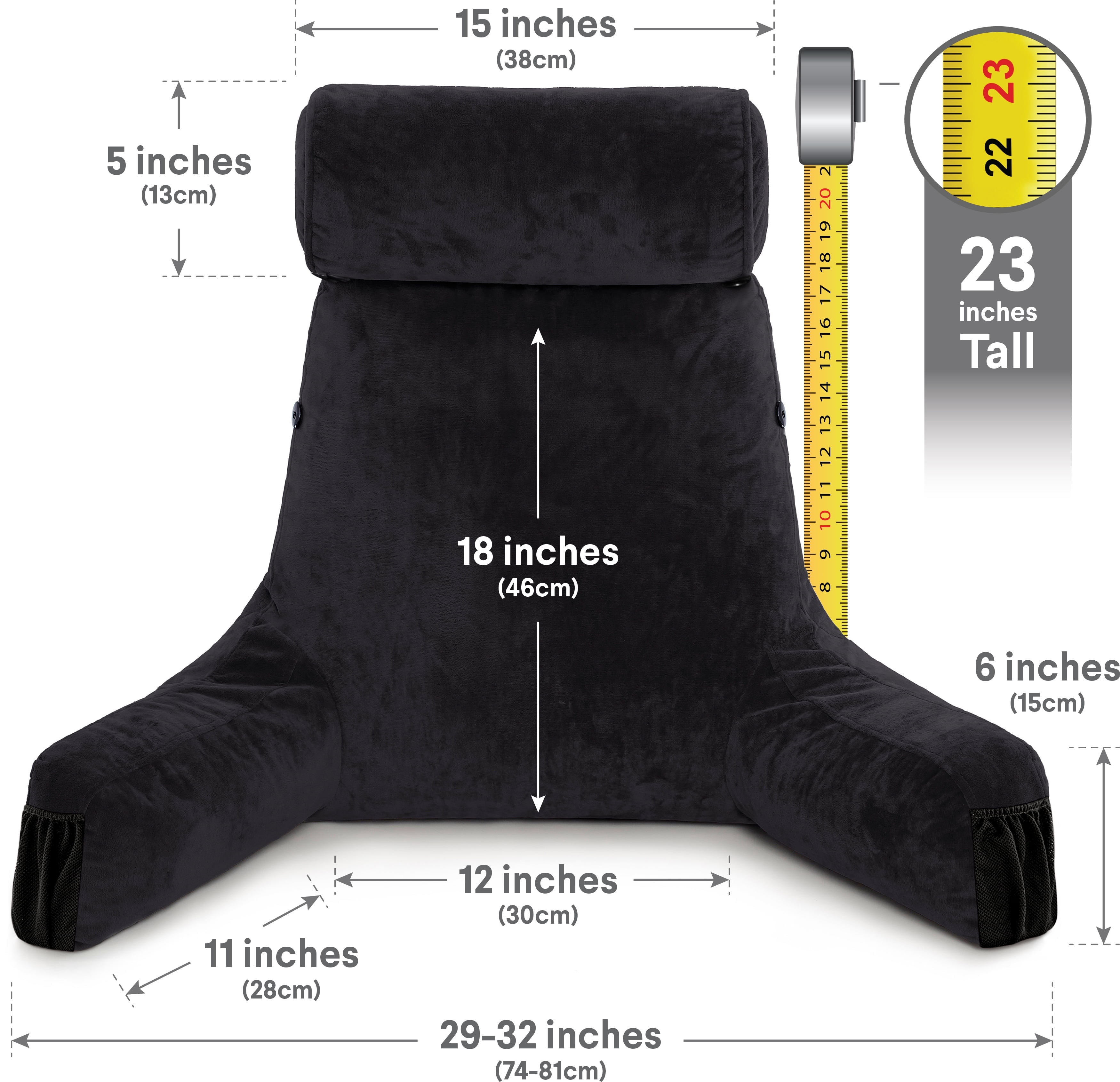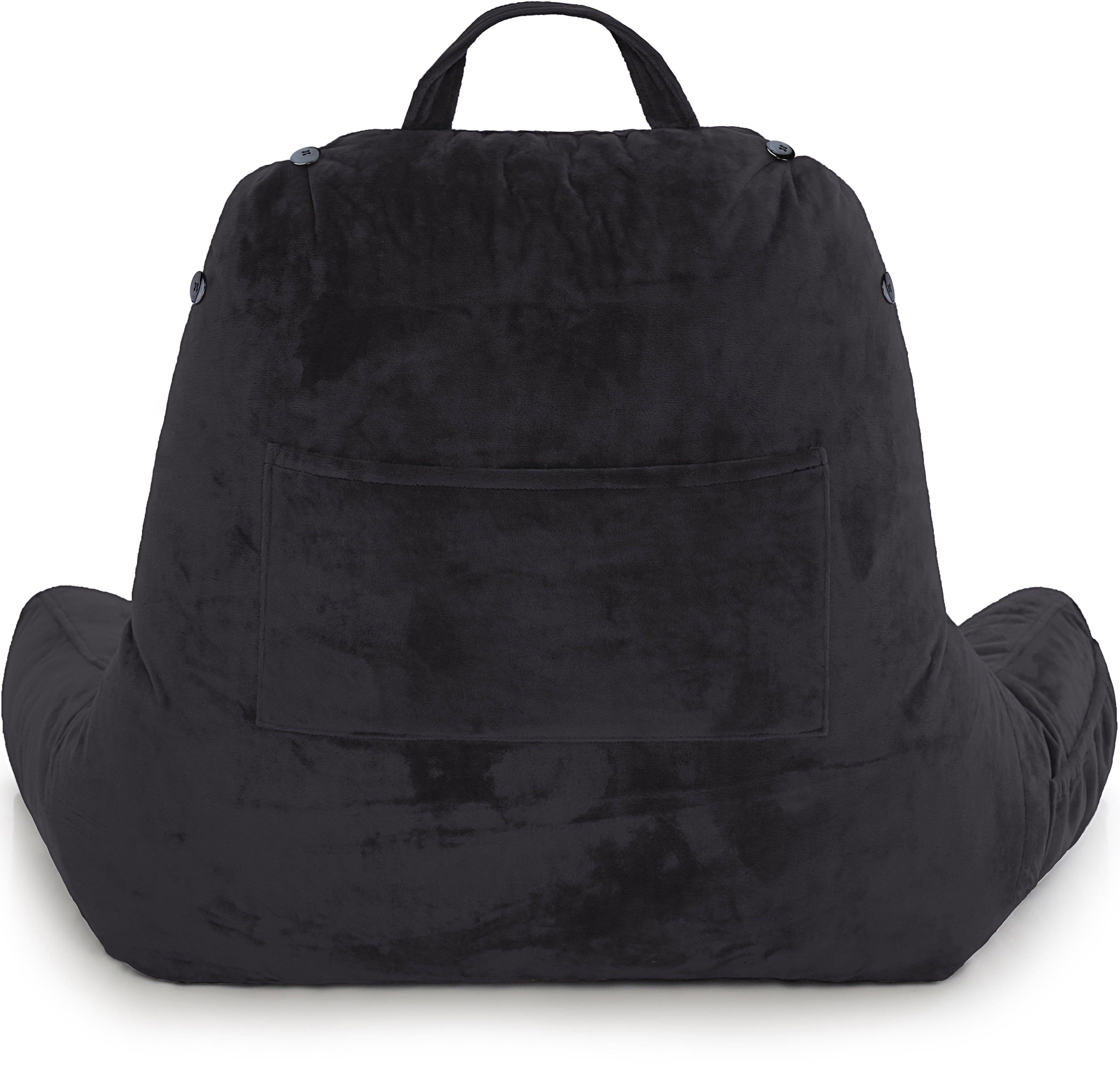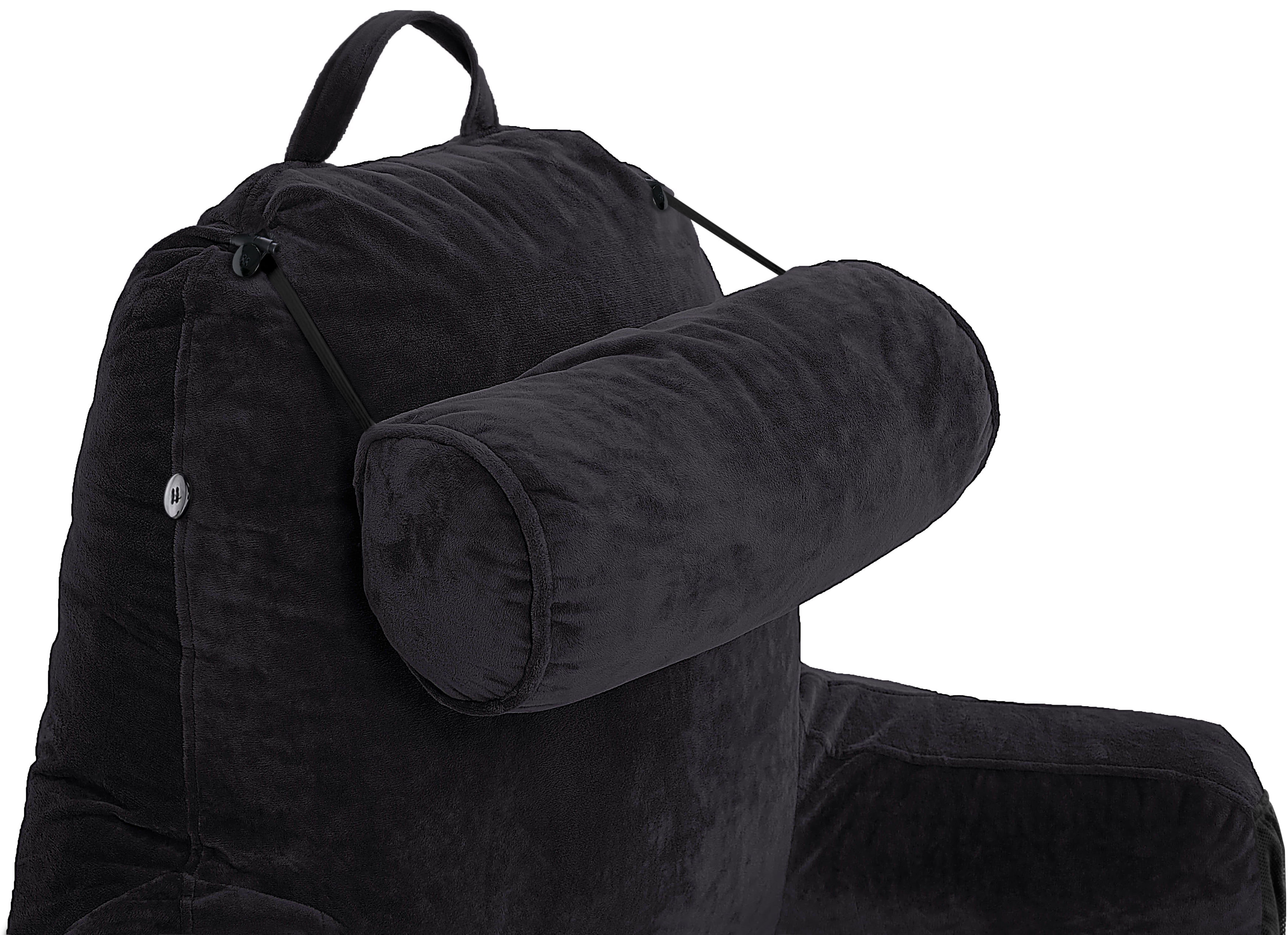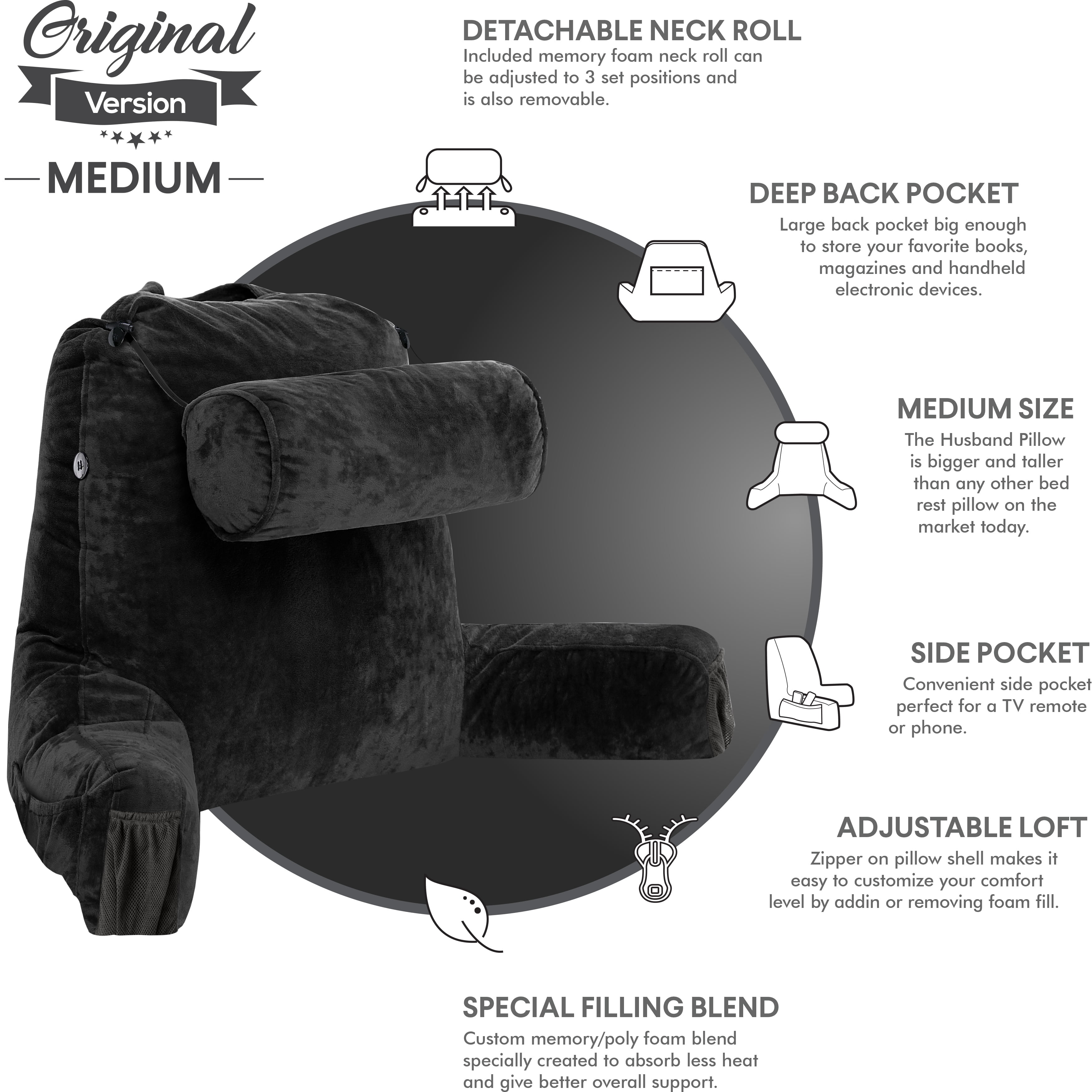 Husband Pillow Medium Black, Backrest for Kids, Teens, Petite Adults – Reading Pillows With Arms, Adjustable Loft, Plush Memory Foam, Bed Rest Chair for Sitting Up, Detach Neck Roll, Removable Cover