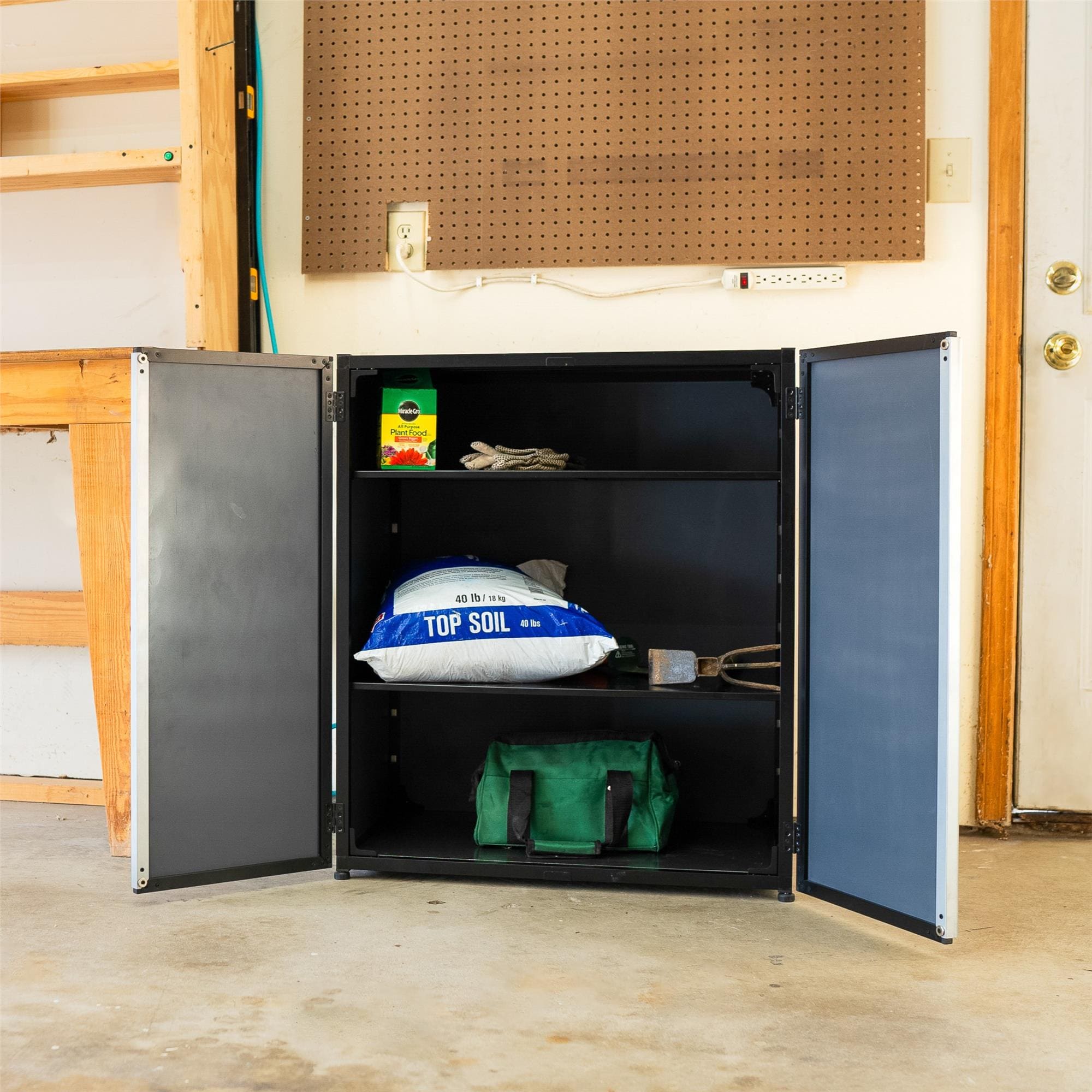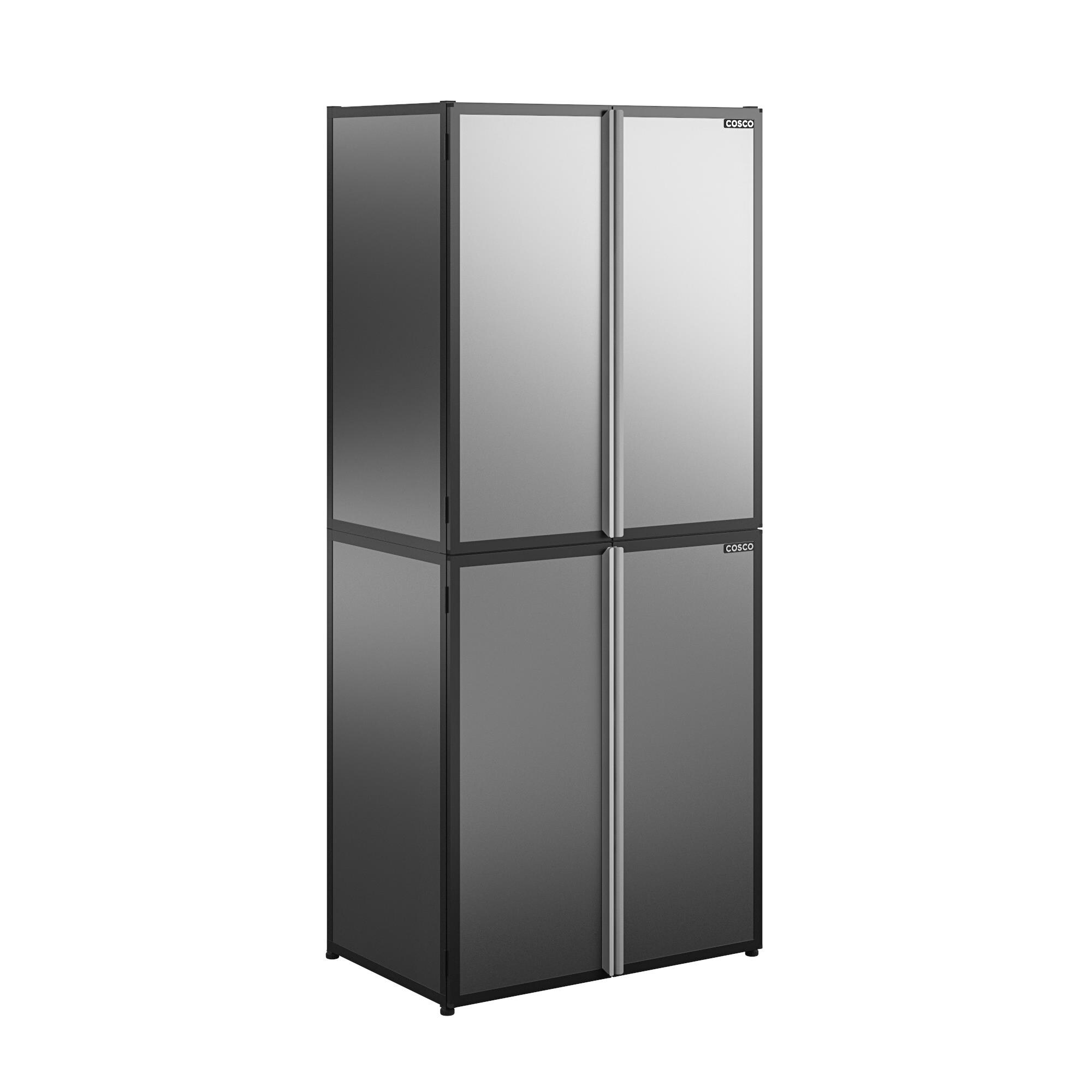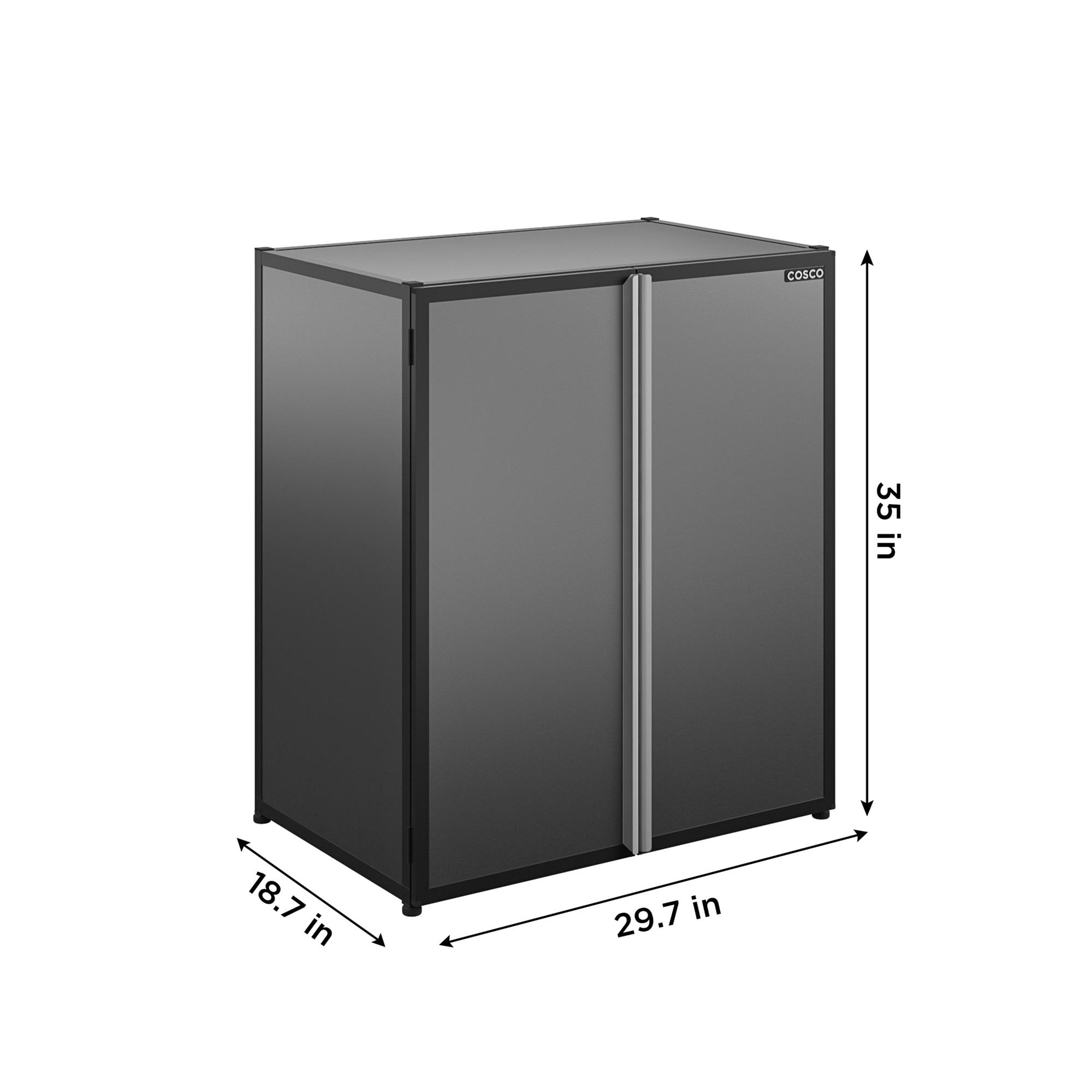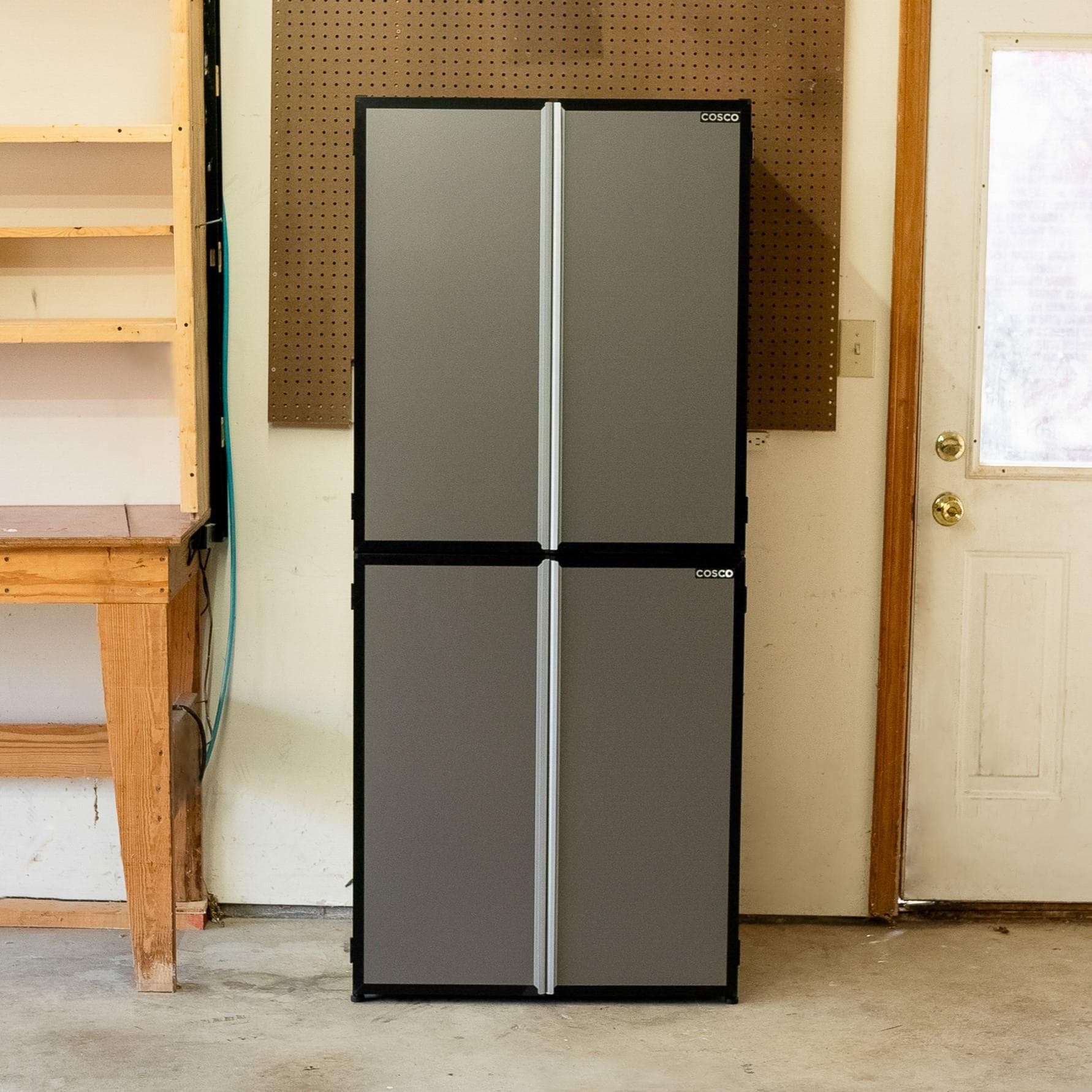 Introducing COSCO’s versatile garage cabinet, the ultimate storage solution for sports gear, DIY tools, painting supplies, and gardening essentials. With its sleek aluminum exterior and ample storage space, this cabinet streamlines your storage needs, eliminating clutter and chaos. Adjustable shelves with a 100 lb. weight capacity ensure easy organization, while durable resin construction and weatherproof protection guarantee long-lasting performance. The contemporary design blends seamlessly into any space, and assembly is a breeze with straightforward instructions and included hardware. Plus, maintenance is hassle-free with a simple wipe-down for a spotless shine. Say hello to efficient, stylish storage with COSCO’s garage cabinet.