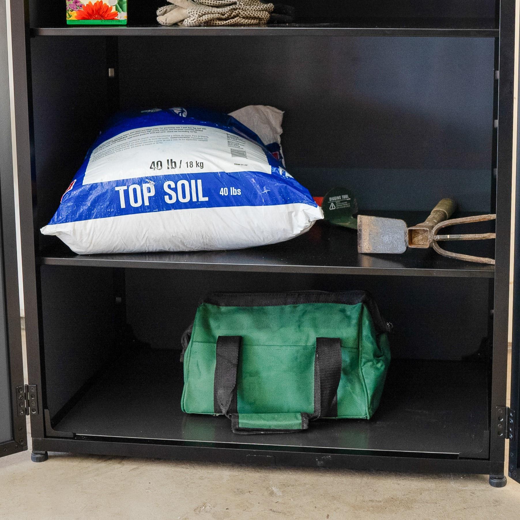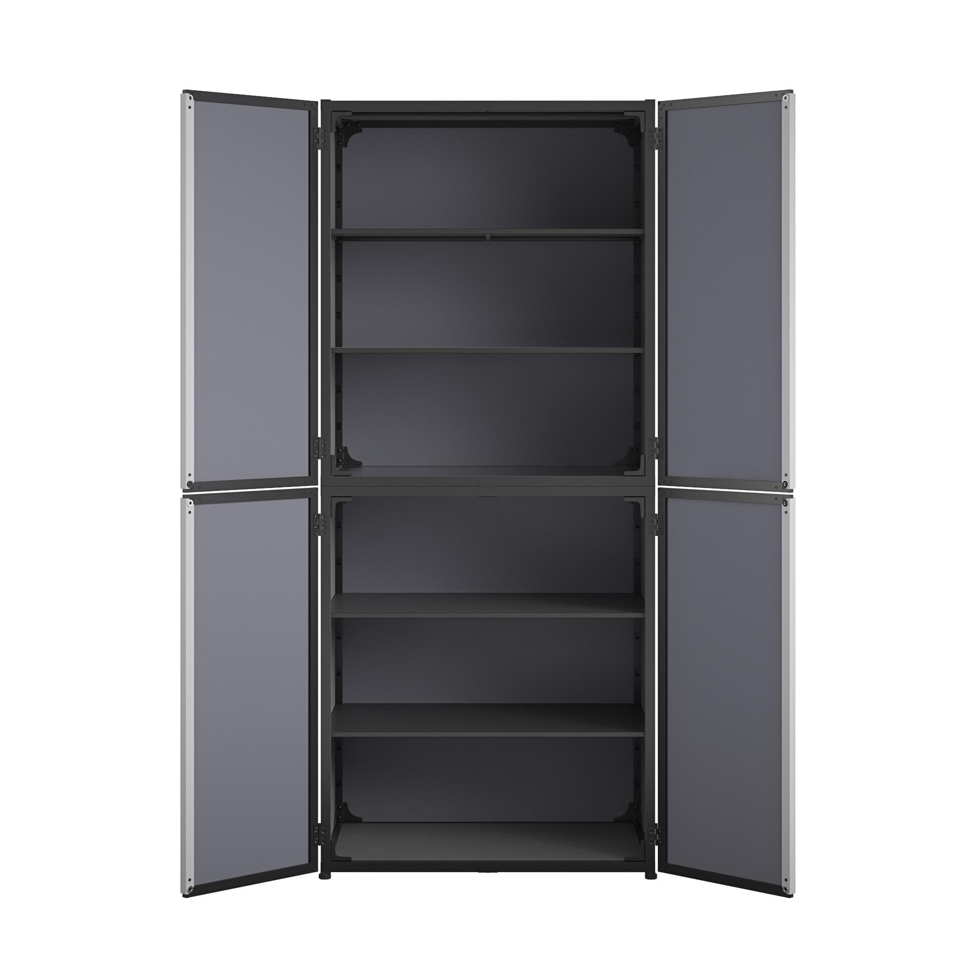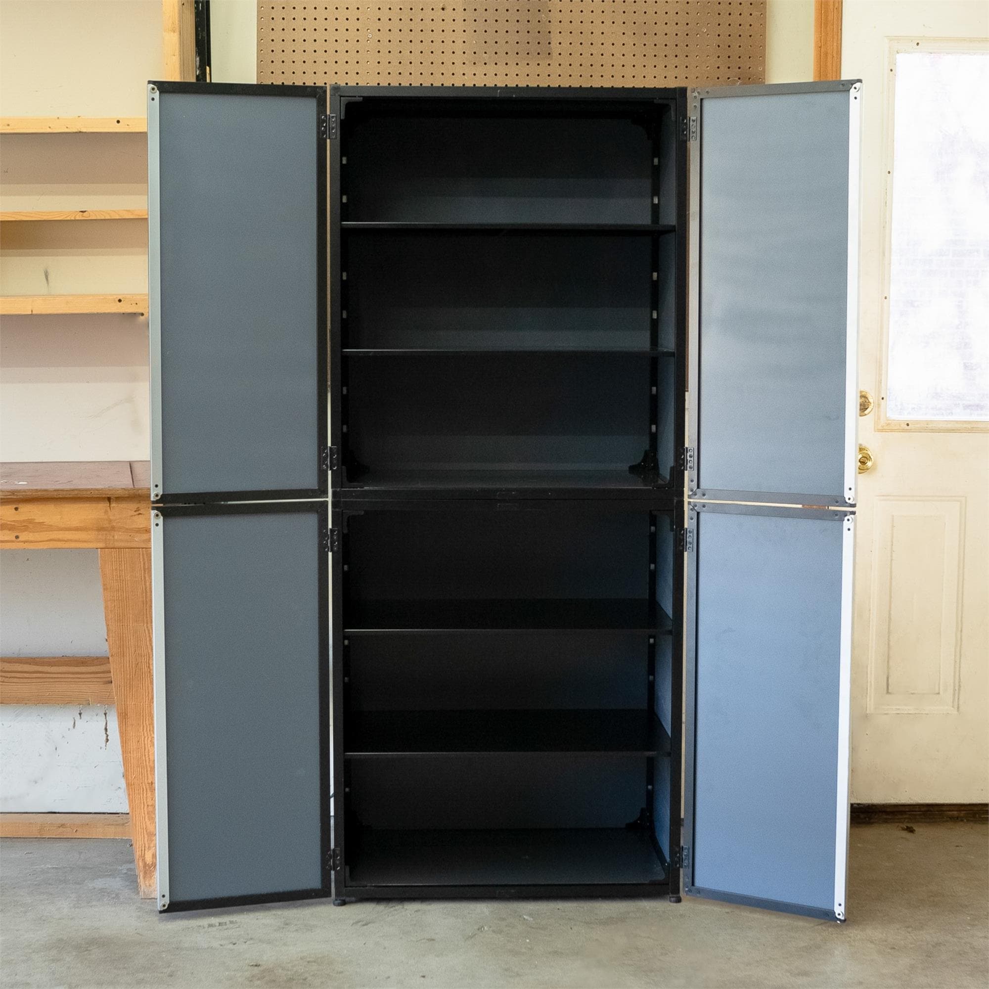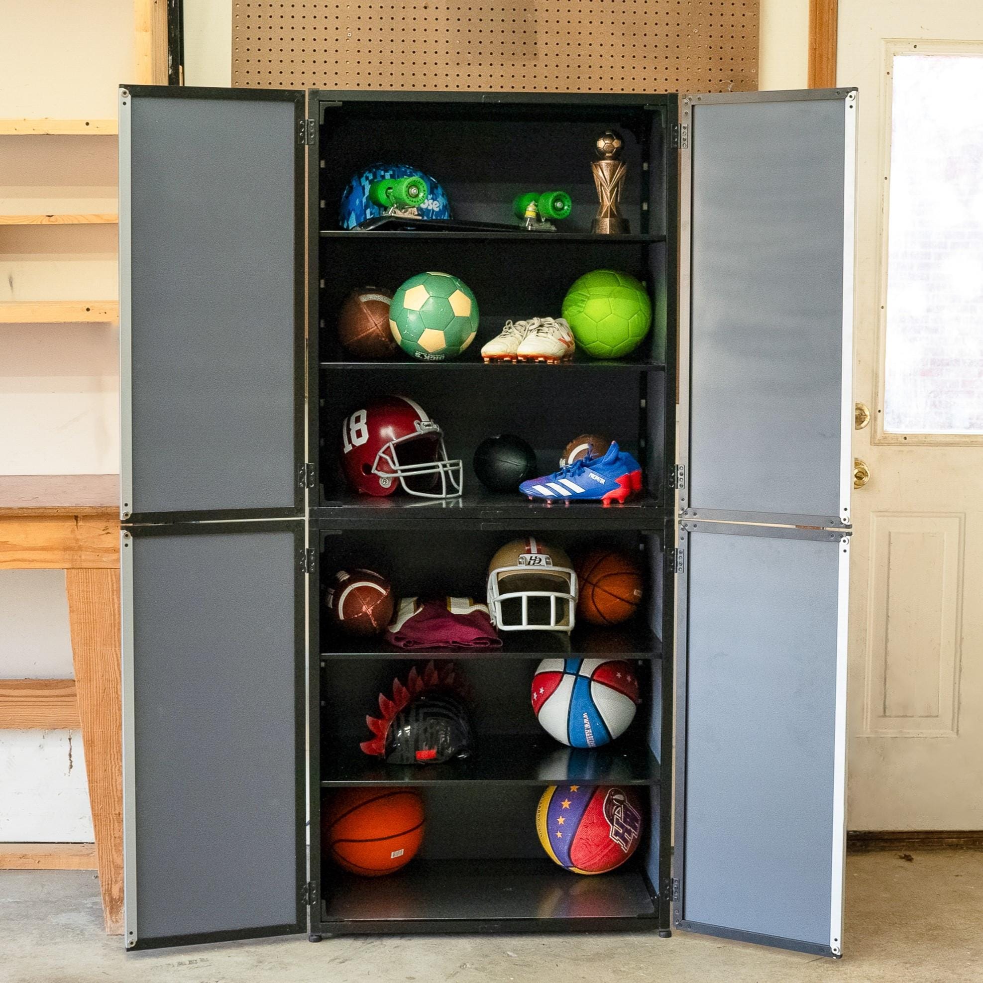 Introducing COSCO’s versatile garage cabinet, the ultimate storage solution for sports gear, DIY tools, painting supplies, and gardening essentials. With its sleek aluminum exterior and ample storage space, this cabinet streamlines your storage needs, eliminating clutter and chaos. Adjustable shelves with a 100 lb. weight capacity ensure easy organization, while durable resin construction and weatherproof protection guarantee long-lasting performance. The contemporary design blends seamlessly into any space, and assembly is a breeze with straightforward instructions and included hardware. Plus, maintenance is hassle-free with a simple wipe-down for a spotless shine. Say hello to efficient, stylish storage with COSCO’s garage cabinet.