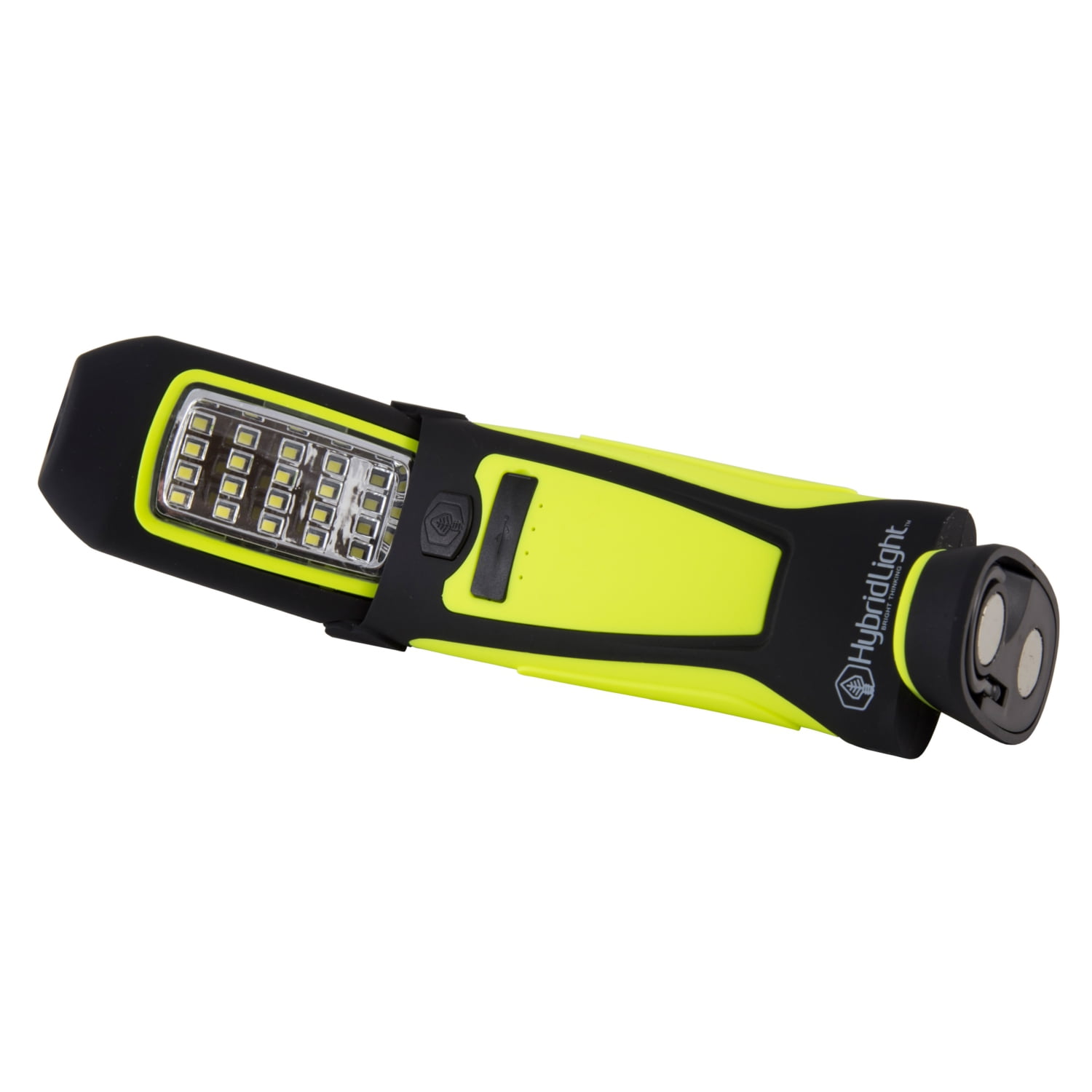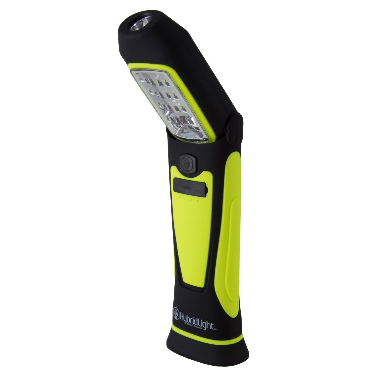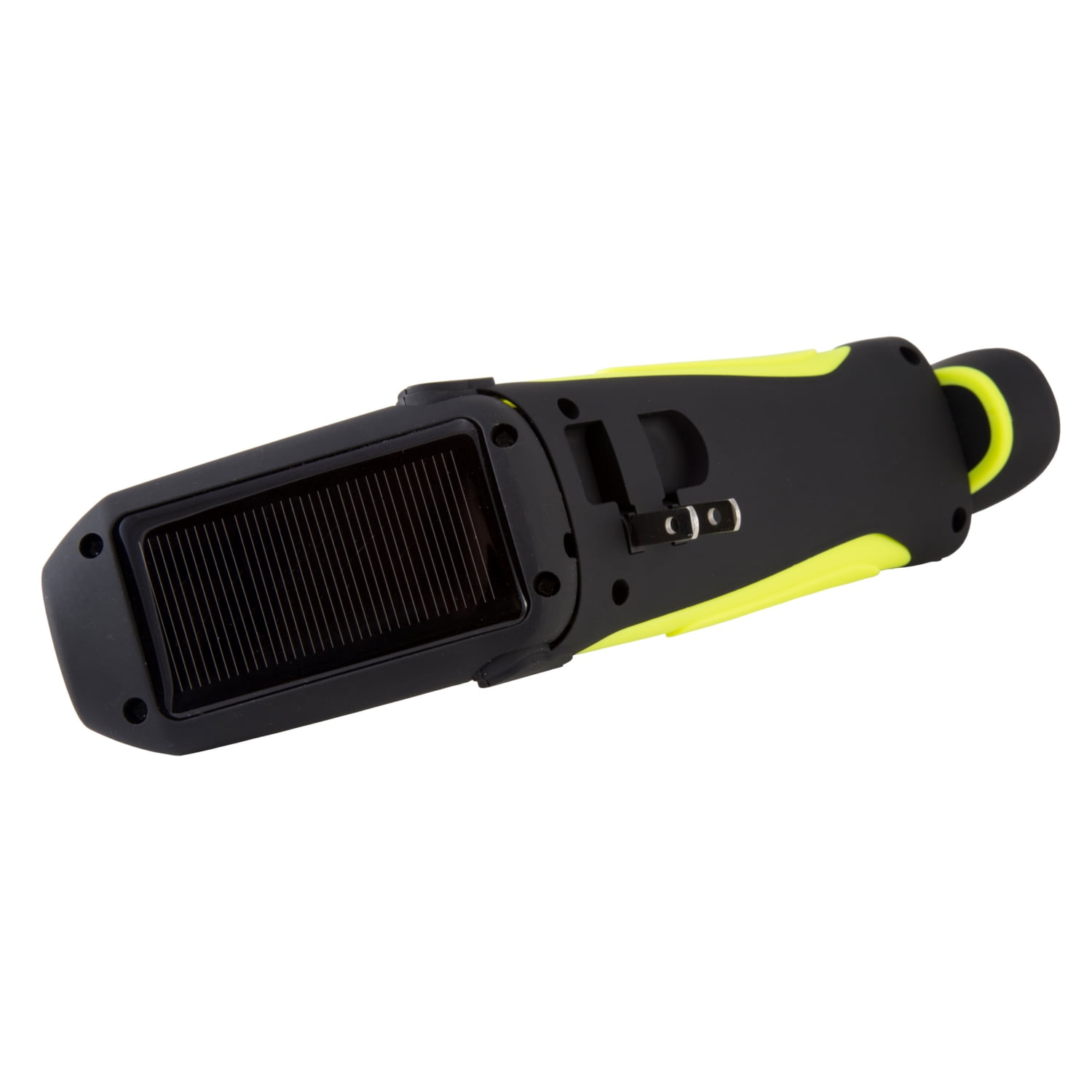 The Hybridlight Mammoth Hybrid Solar Flashlight/Shop Light/Charger is a versatile and durable lighting solution. Featuring a 400-lumen LED light, it offers a 10-meter beam distance and up to 20 hours of runtime on a full charge. This water-resistant and impact-resistant light can be recharged using any light source or a micro USB port, and it even has a USB port to charge your mobile devices. With its rotating magnetic base and 120-degree flexible head, this 9-inch flashlight provides convenient illumination for a variety of tasks.